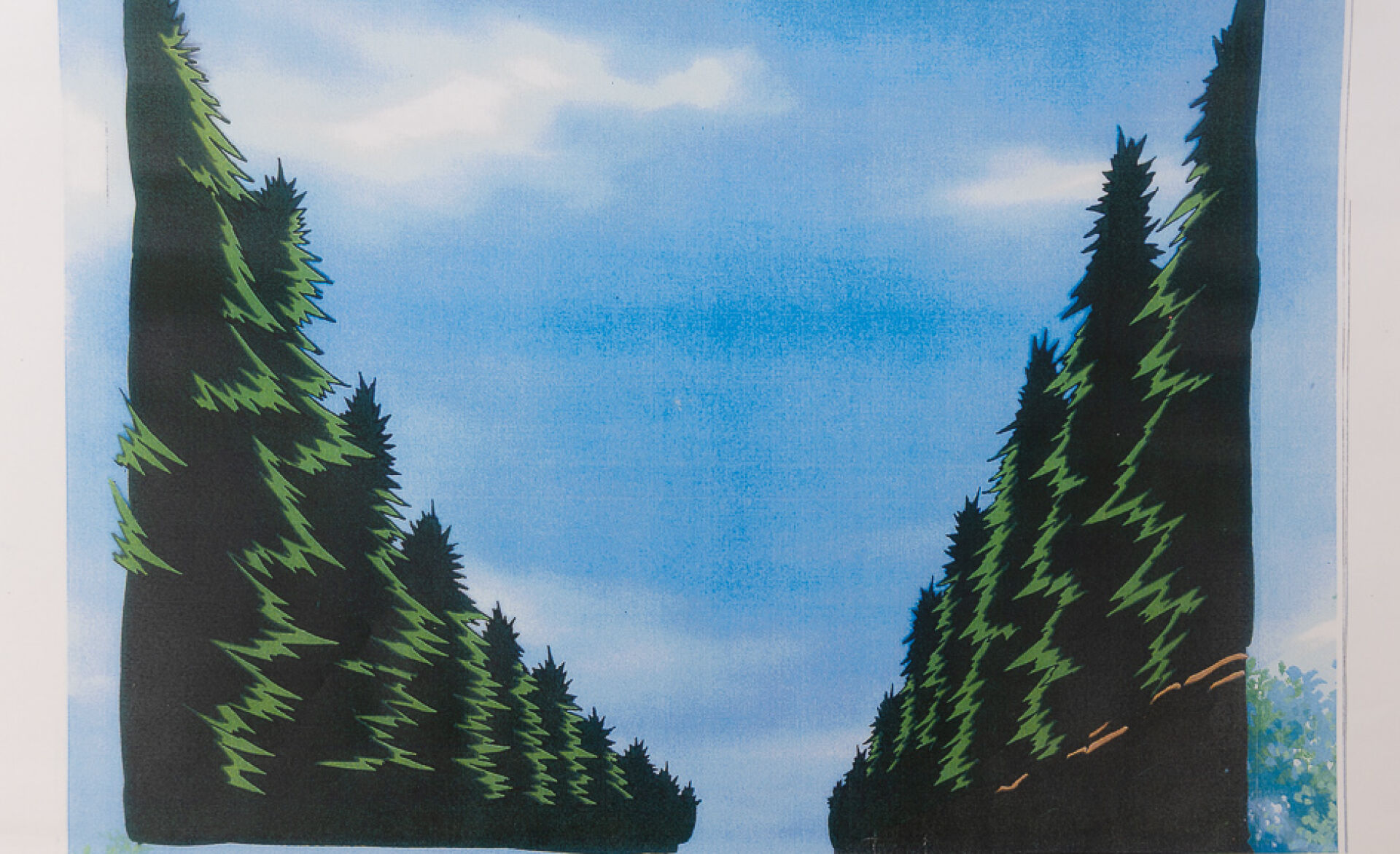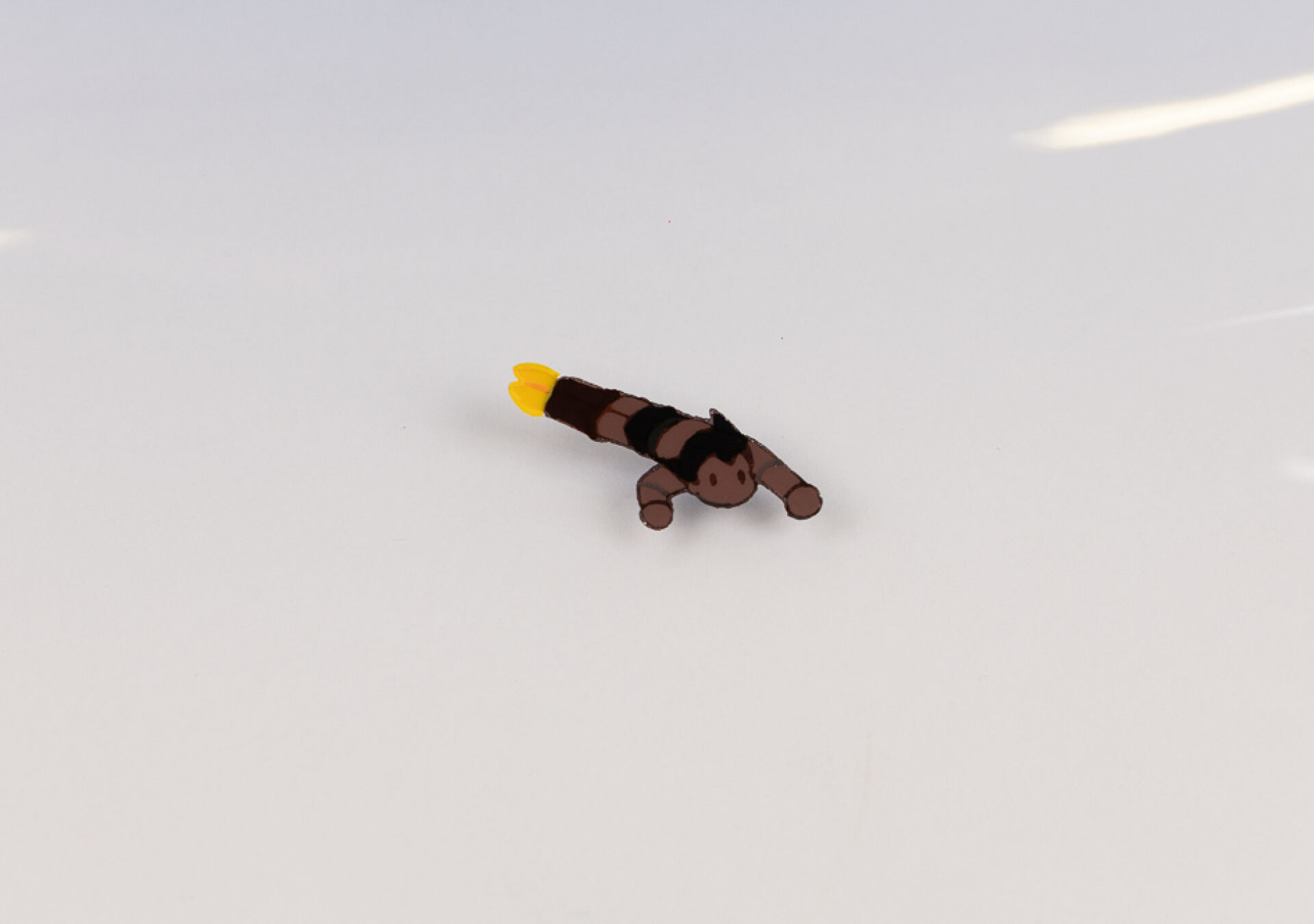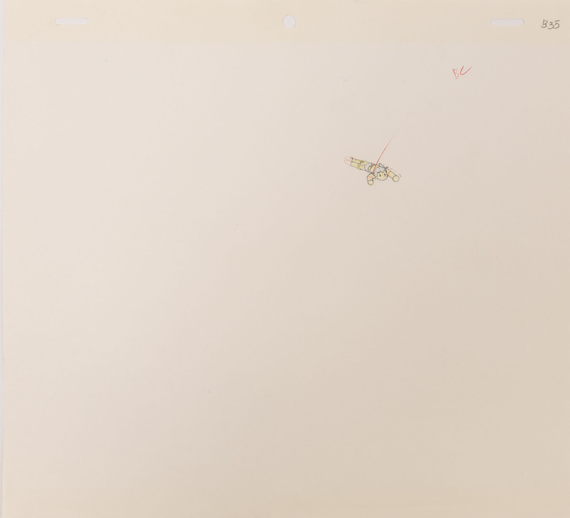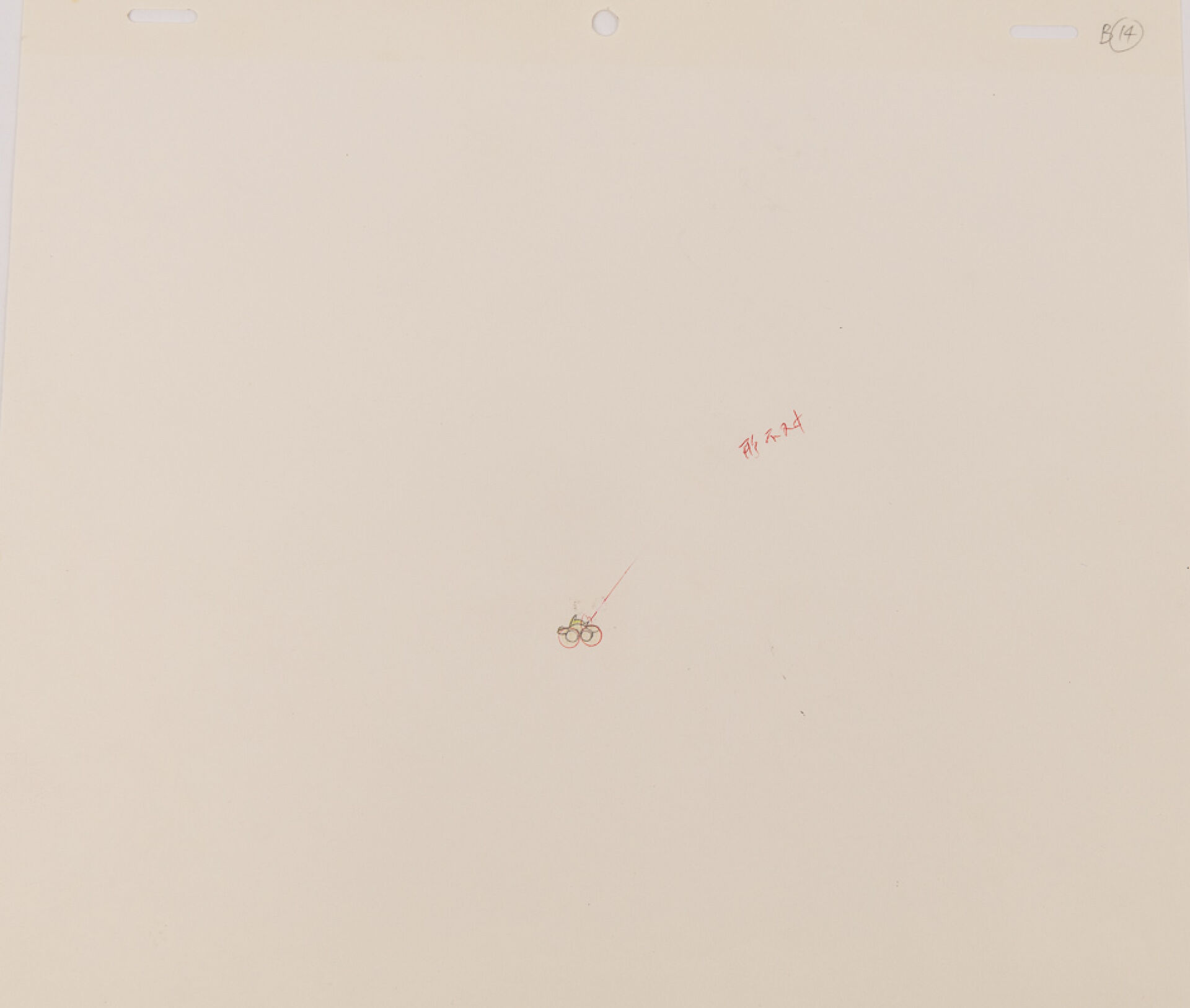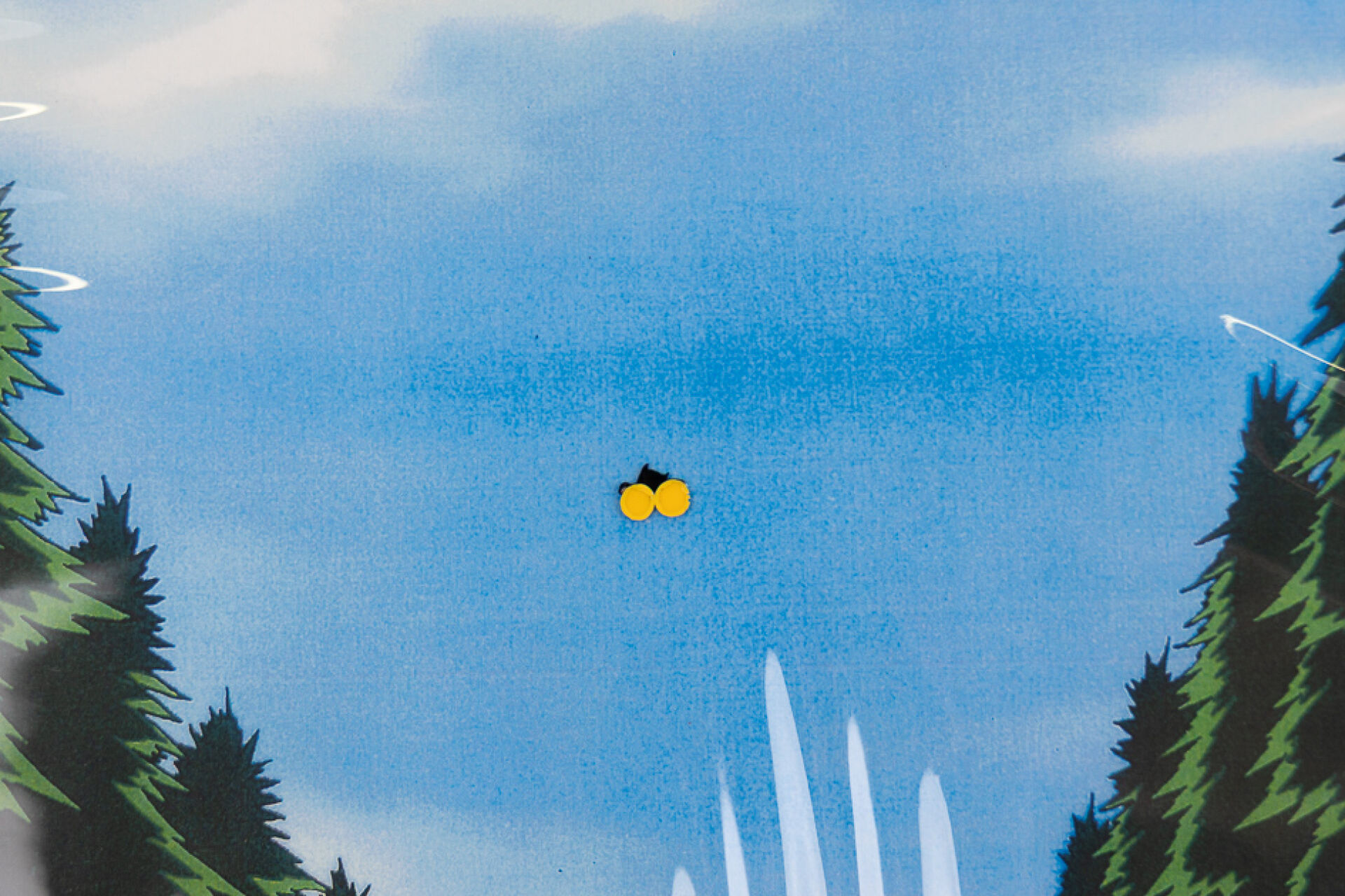 d'après l'œuvre de Osamu Tezuka (手塚 治虫) - Astro Boy (鉄腕アトム) - Astro, le petit robot (鉄腕アトム ou Tetsuwan Atomu) : Ensemble comprenant quatre cellulo (cel / celluloïd) originaux à l'encre et à la gouache sur fond print représentant Astro en vol entre des arbres, dont trois avec leur dôga (Douga) visible au dos, numérotés B14, B21, B31 et B34. Haut. : 23 cm - Larg. : 36,5 cm environ pour les cellulo, gondolés. Produit par Tezuka Productions.