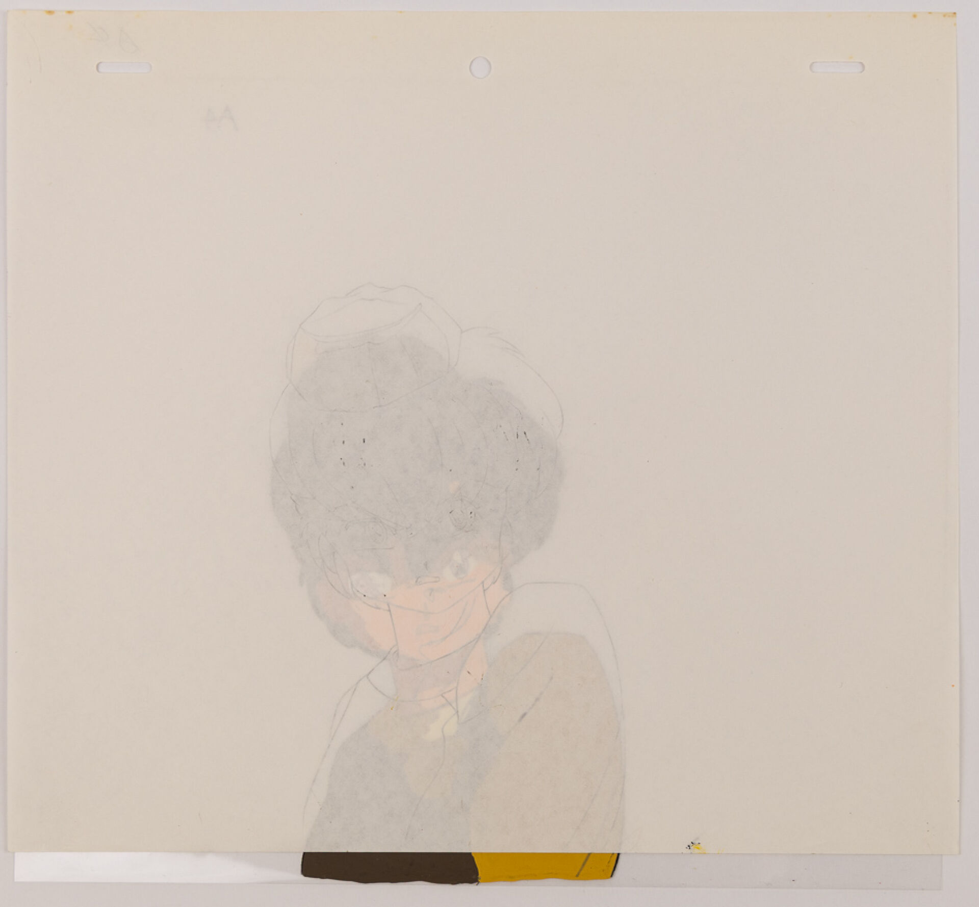 d'après l'œuvre de Rumiko Takahashi (高橋 留美子) - Ranma ½ (らんま½) Cellulo ( cel / celluloïd) à l'encre et à la gouache collé au dôga, représentant le personnage Roland Mathieu mécontent, numéroté A4. Haut. : 23 cm - Larg. : 26,4 cm pour le cellulo. Produit par Studio Deen en 1989-1992