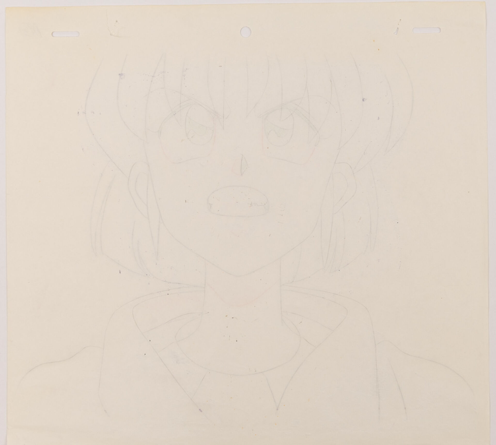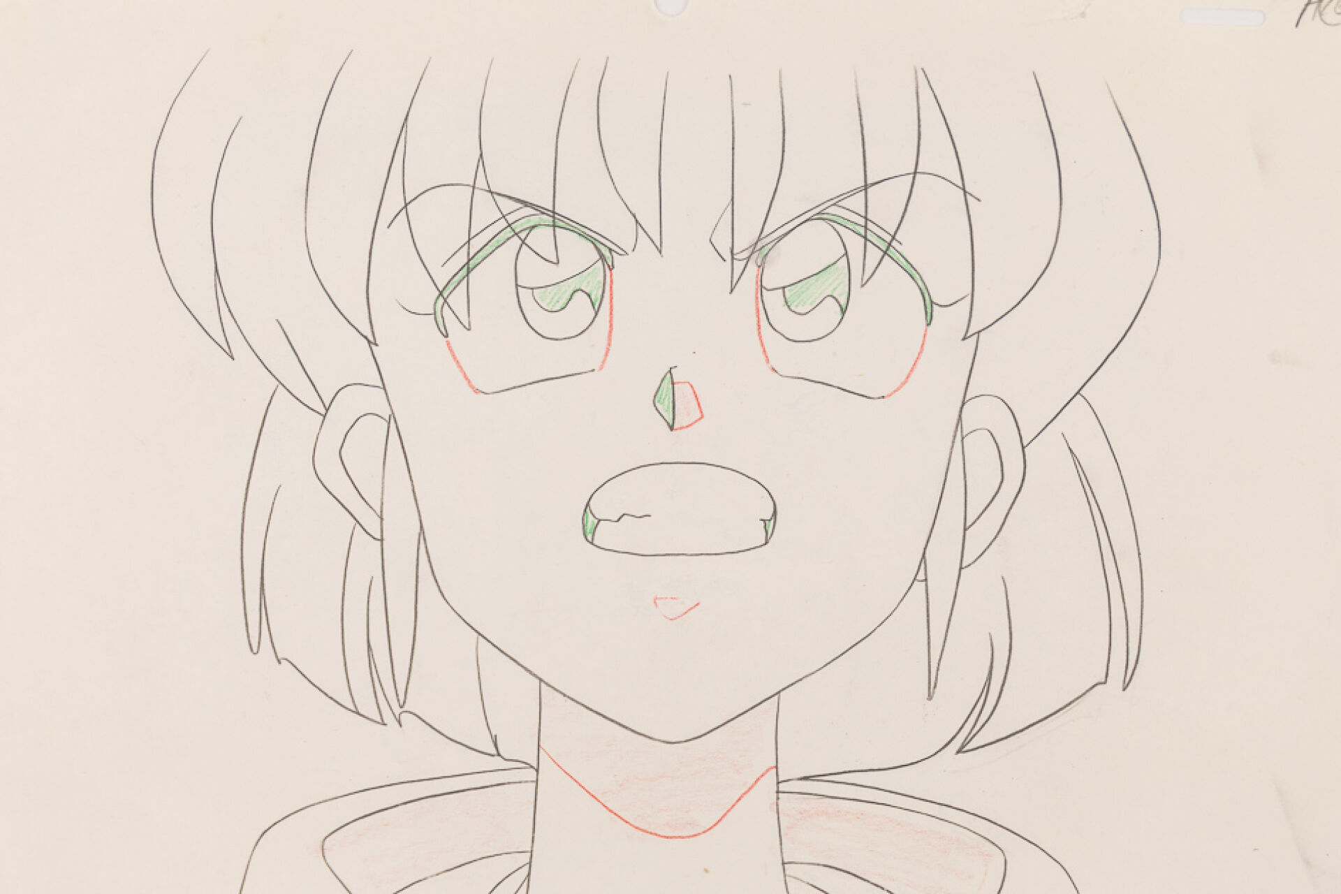 d'après l'œuvre de Rumiko Takahashi (高橋 留美子) - Ranma ½ (らんま½) Dôga (Douga) à la mine de plomb et aux crayons de couleur, représentant le personnage d'Adeline Galland - Akane Tendô en colère. Haut. : 24,9 cm - Larg. : 27 cm. Produit par Studio Deen en 1989-1992