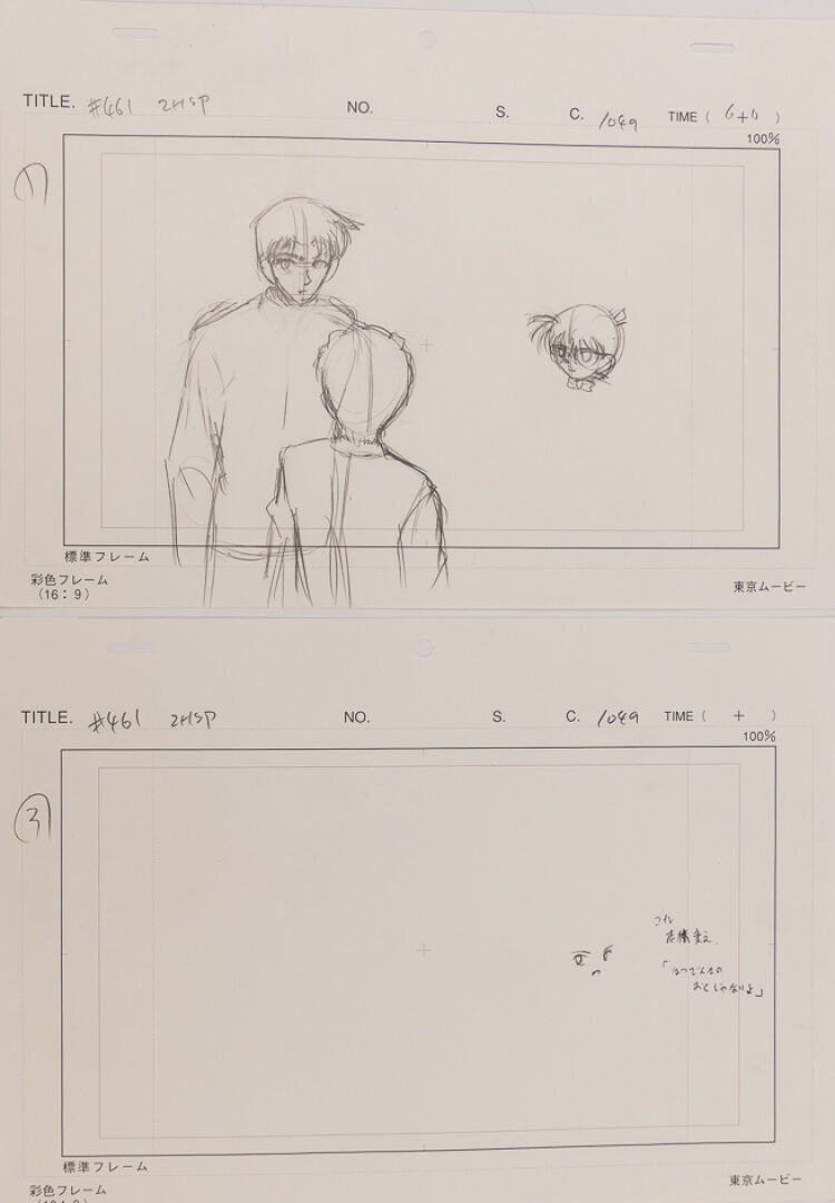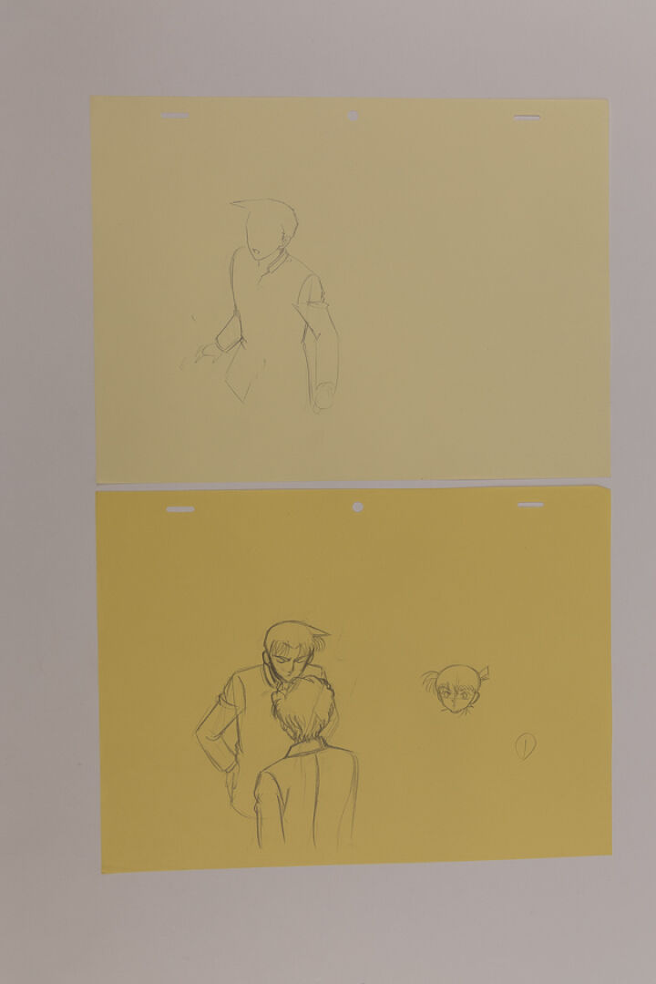 d'après l'œuvre de Gōshō Aoyama (青山 剛昌) Détective Conan (名探偵コナン) Episode 461 : Onze gengas représentant Conan et deux personnages. Haut. : 21 cm - Larg. : 29,7 cm pour le layout. Produit par TMS Entertainment.