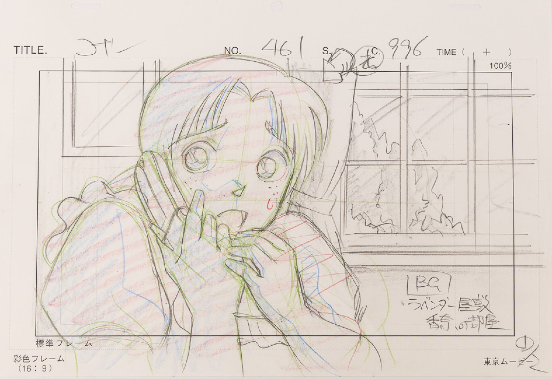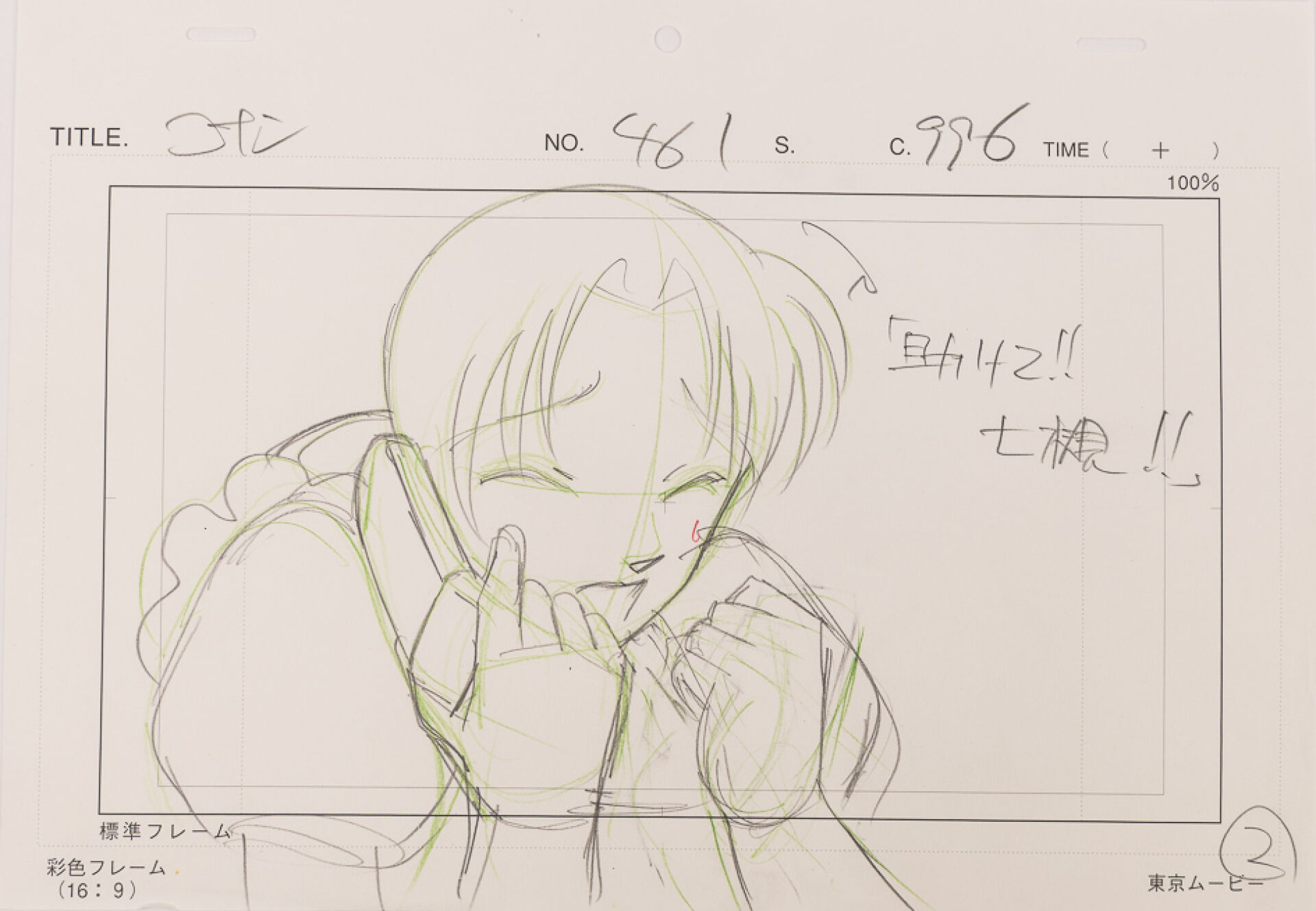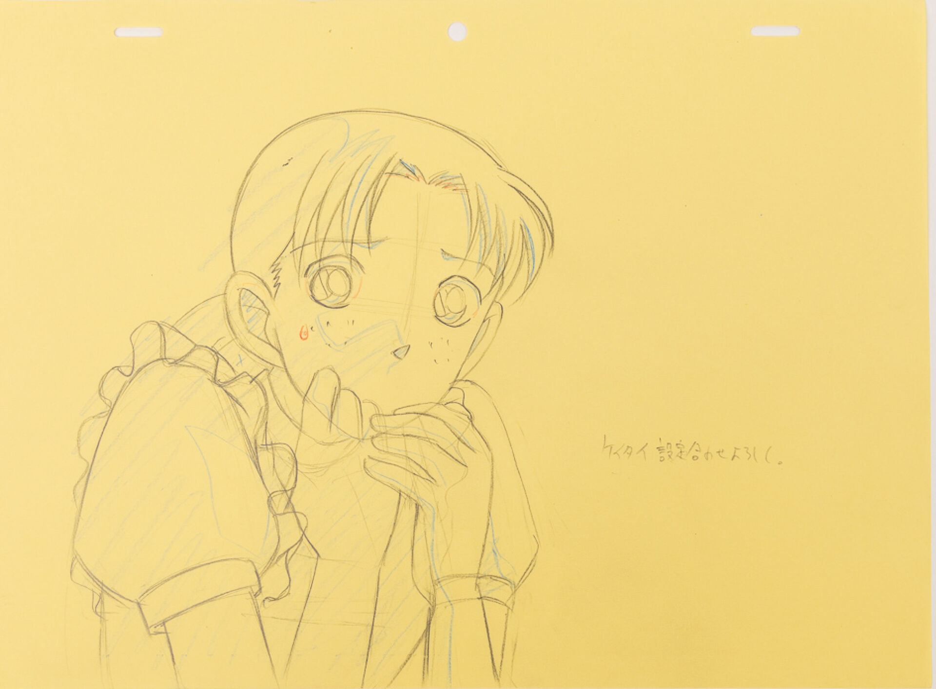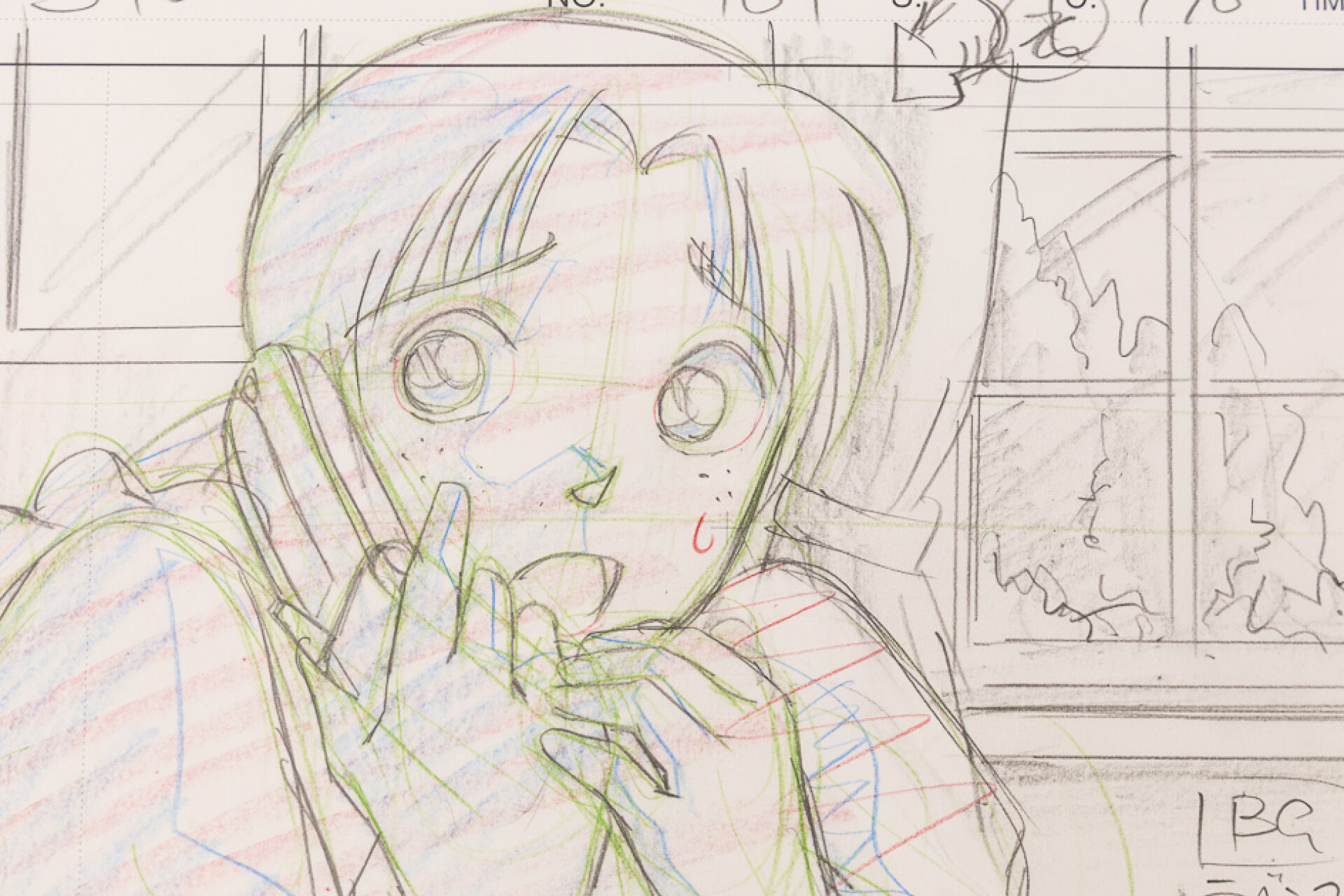 d'après l'œuvre de Gōshō Aoyama (青山 剛昌) Détective Conan (名探偵コナン) Episode 461, personnage féminin au téléphone : Layout, quatre gengas Haut. : 21 cm - Larg. : 29,7 cm pour le layout. Produit par TMS Entertainment.