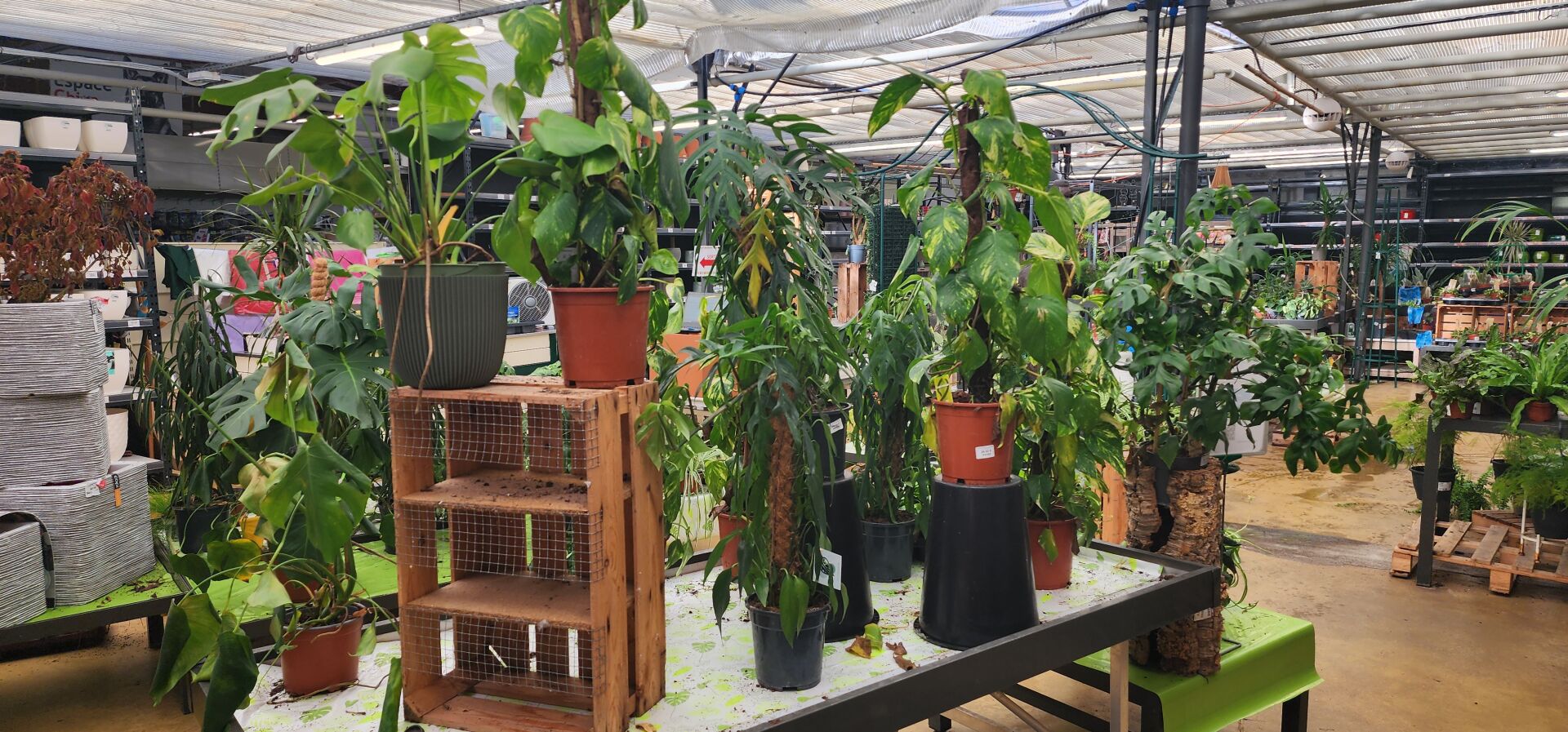 Sur 2 tables un lot d'environ 25 pots différentes variétés dont: 11 pots de Philo Scandens, 3 pots de Chlorophytum, 1 pot de Scindapsus Silver, 5 pots de Scindapsus Aureum, 3 pots de Scindapsus Baltic etc… sans les tables