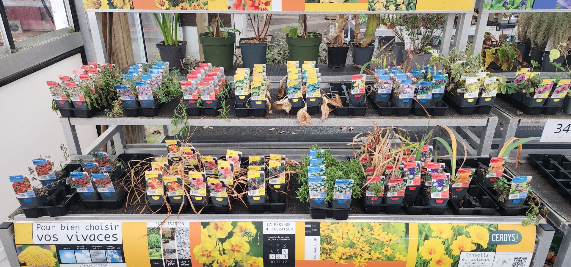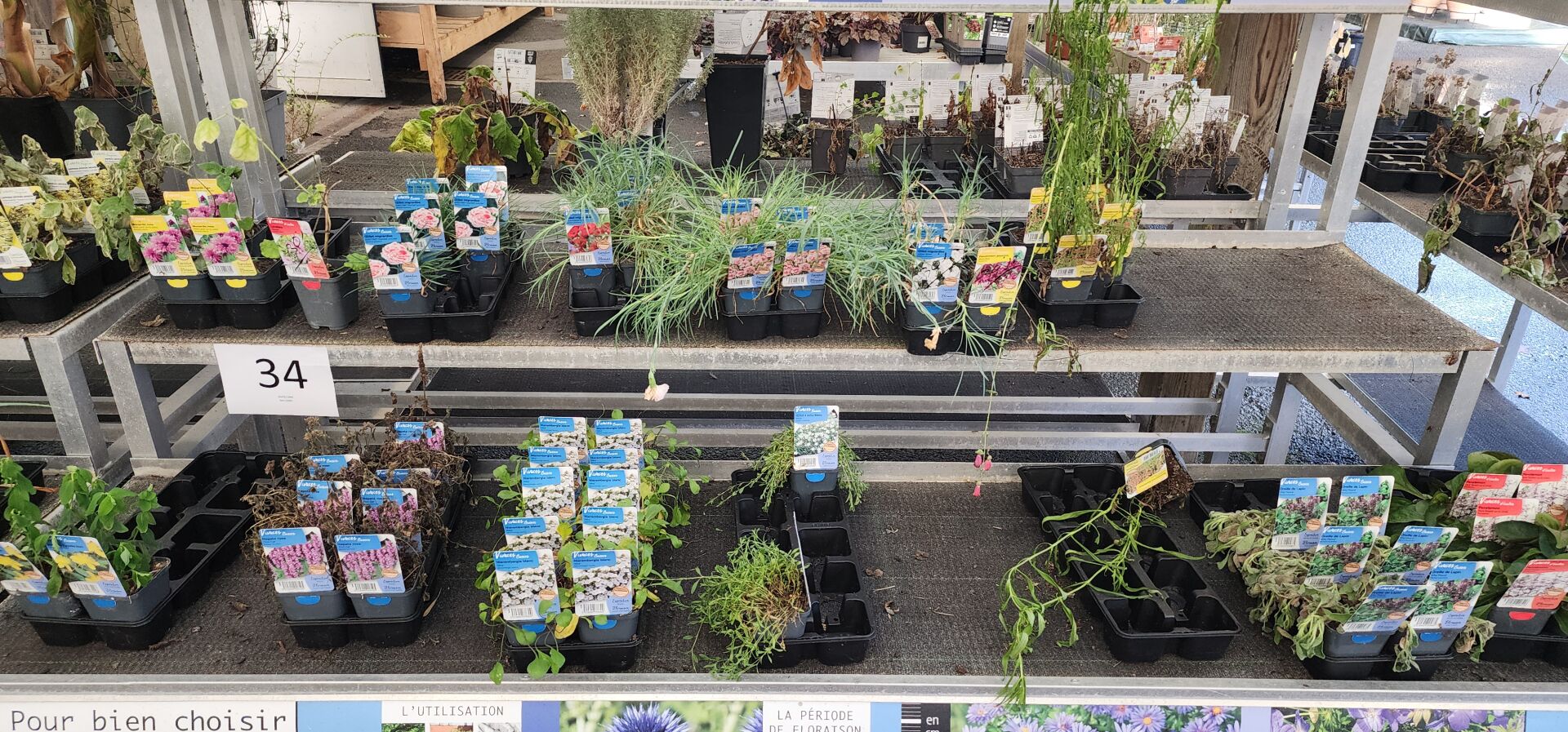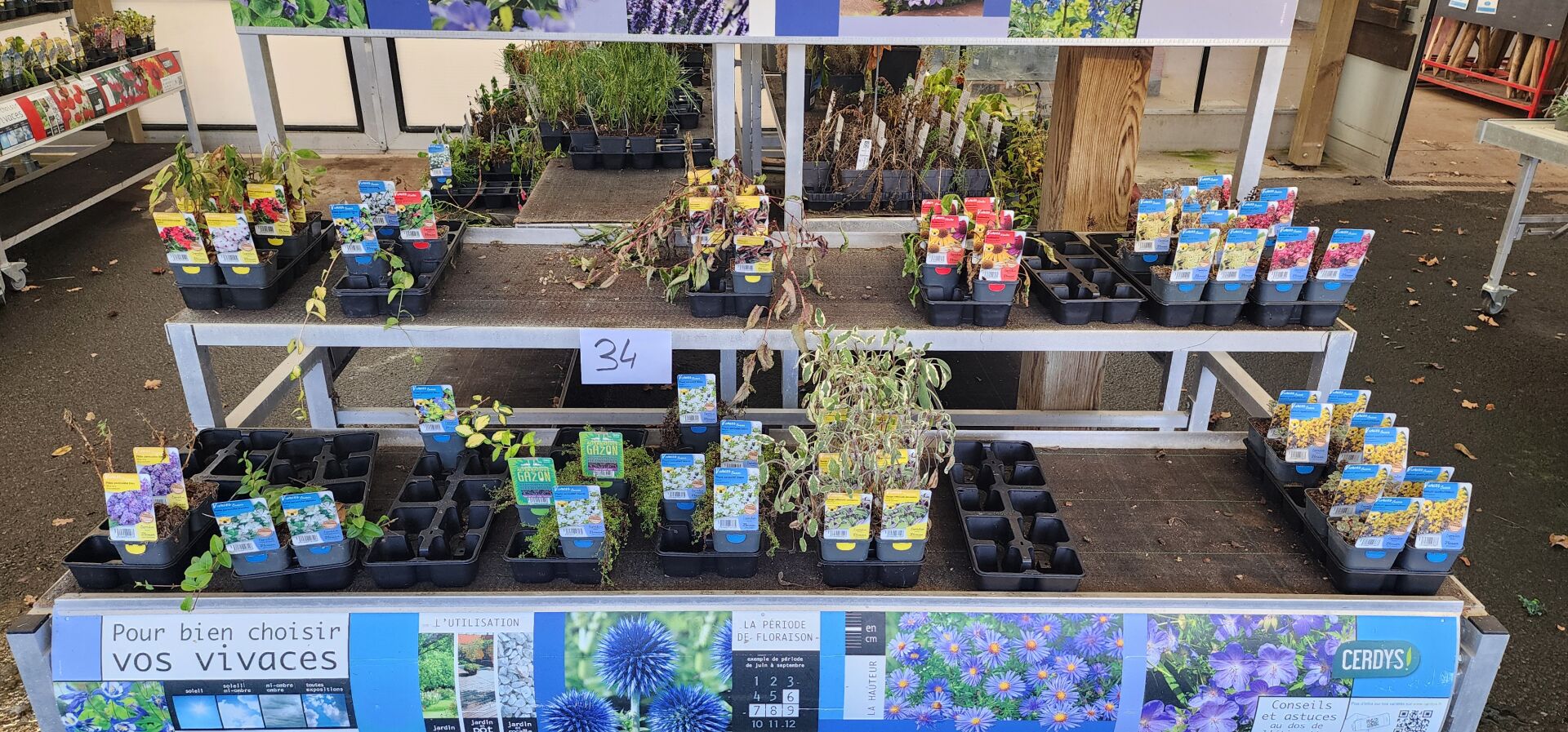Sur 2 tables mobiles un lot d'environ 200 pots de Vivaces de différentes variétés sans les tables