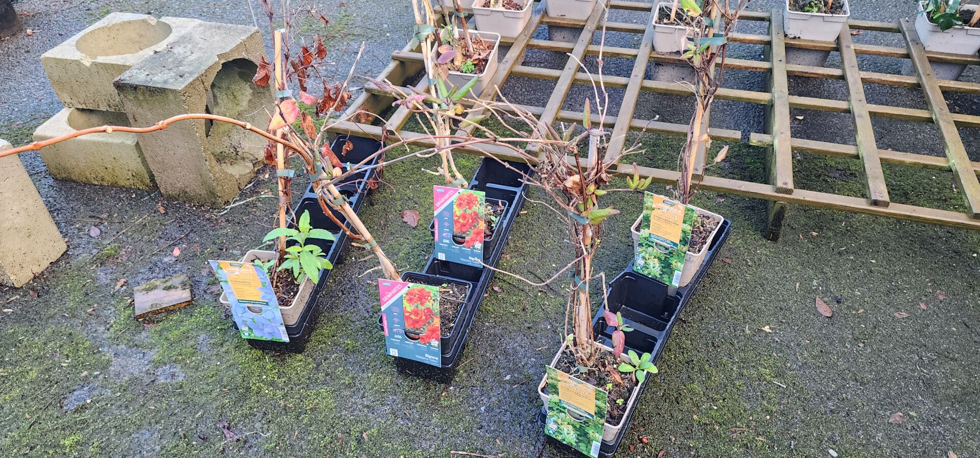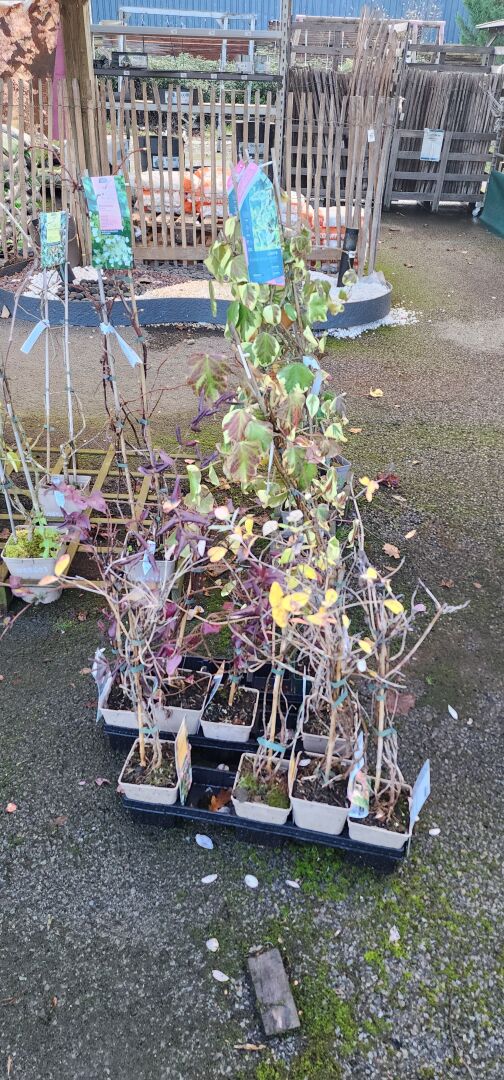 1 lot d'environ 35 pots dont certaines grimpantes de différentes variétés dont: Hortensia, Vigne Vierge, Rosier-Liane, Clématite, Passiflore, Glycine etc…