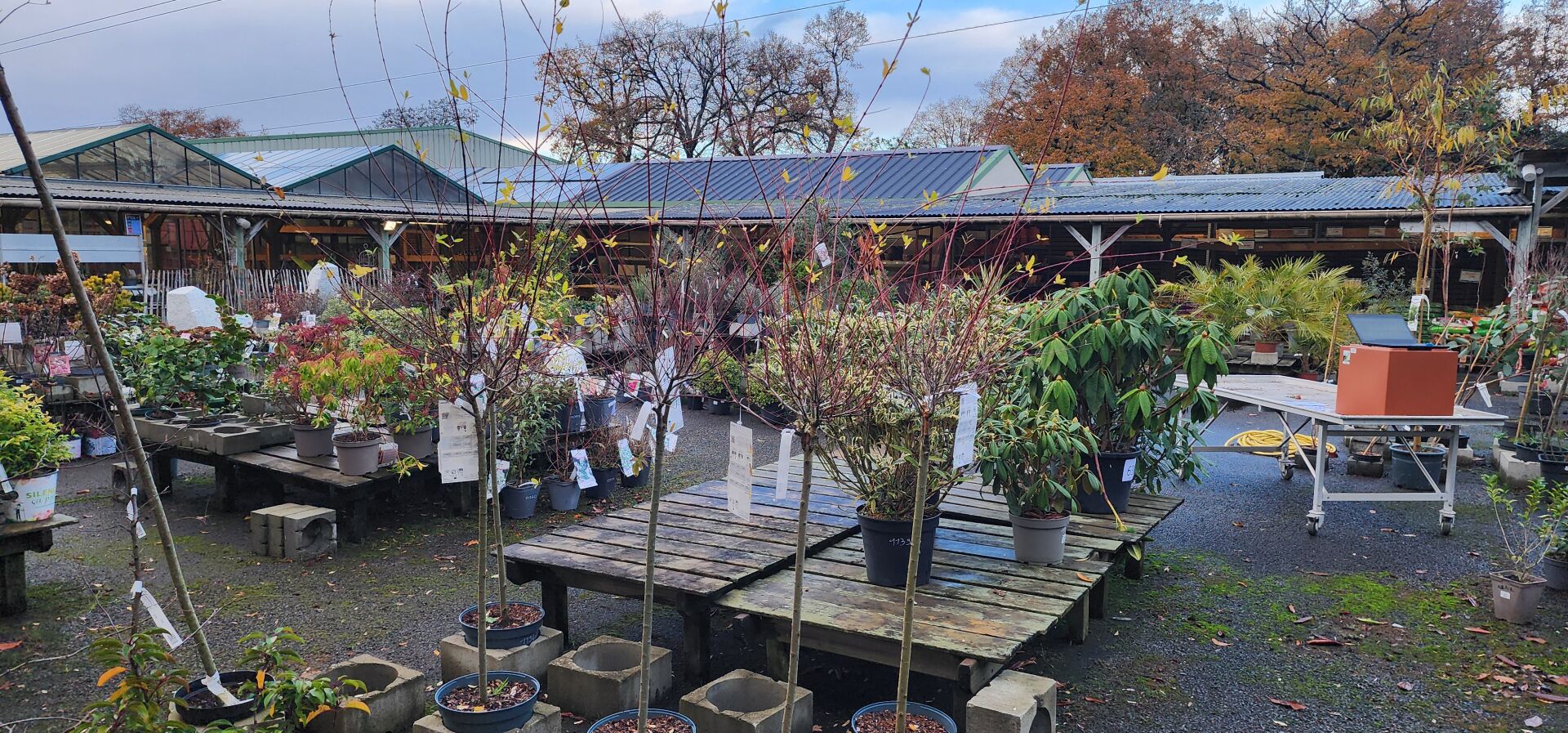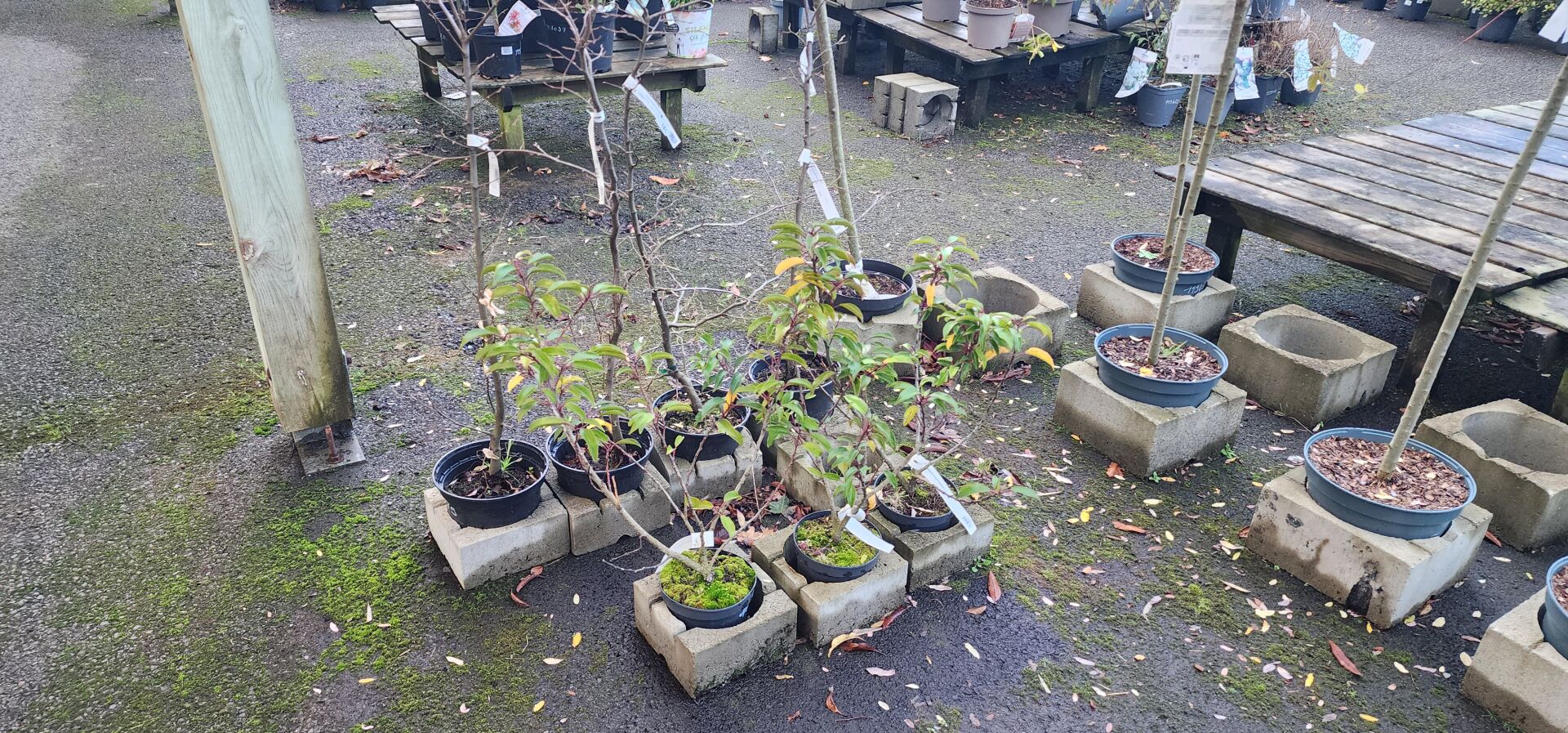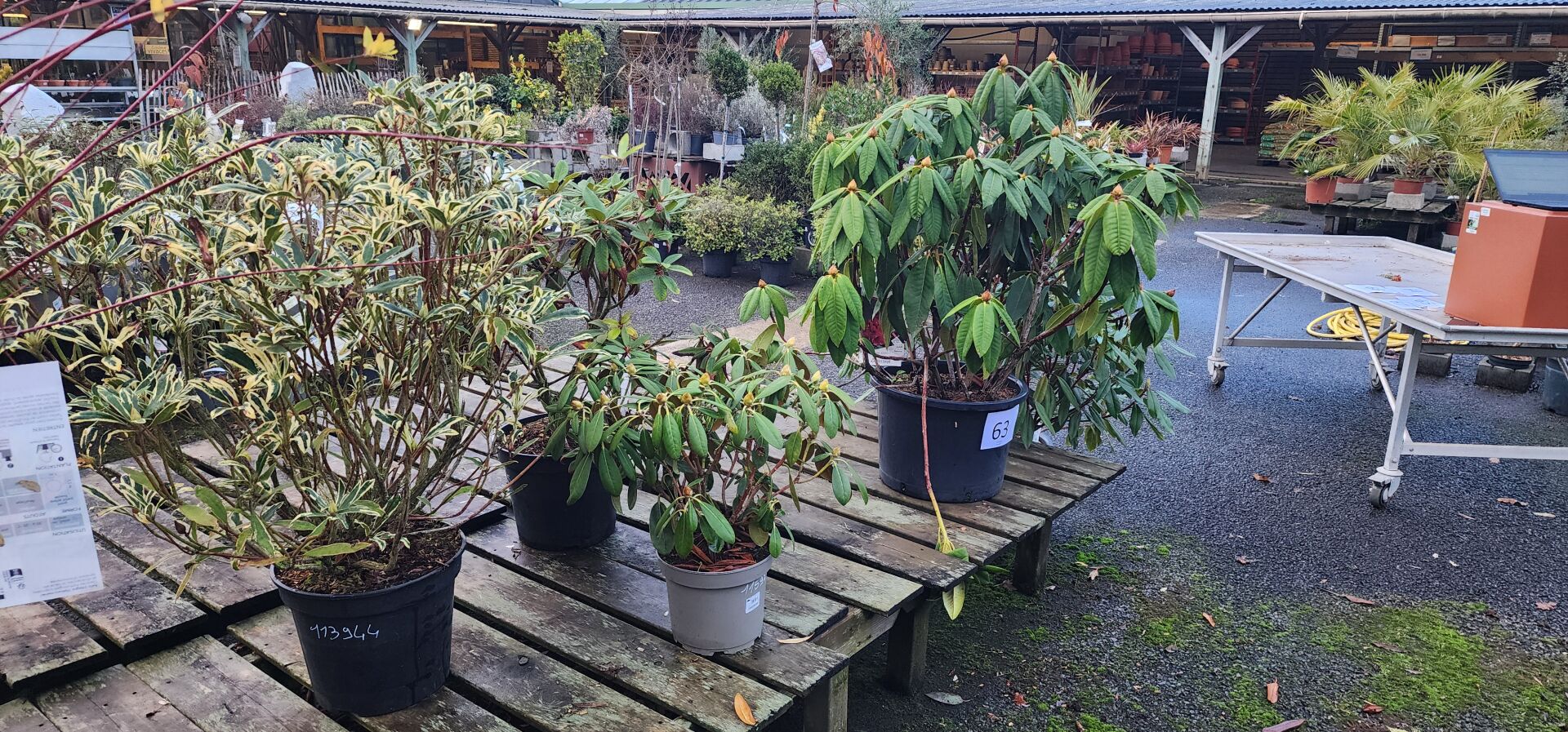 1 lot d'environ 15 pots de différentes variétés dont: 5 pots de Rhododendron, 5 pots de Saule Crevette, Carpinus etc…