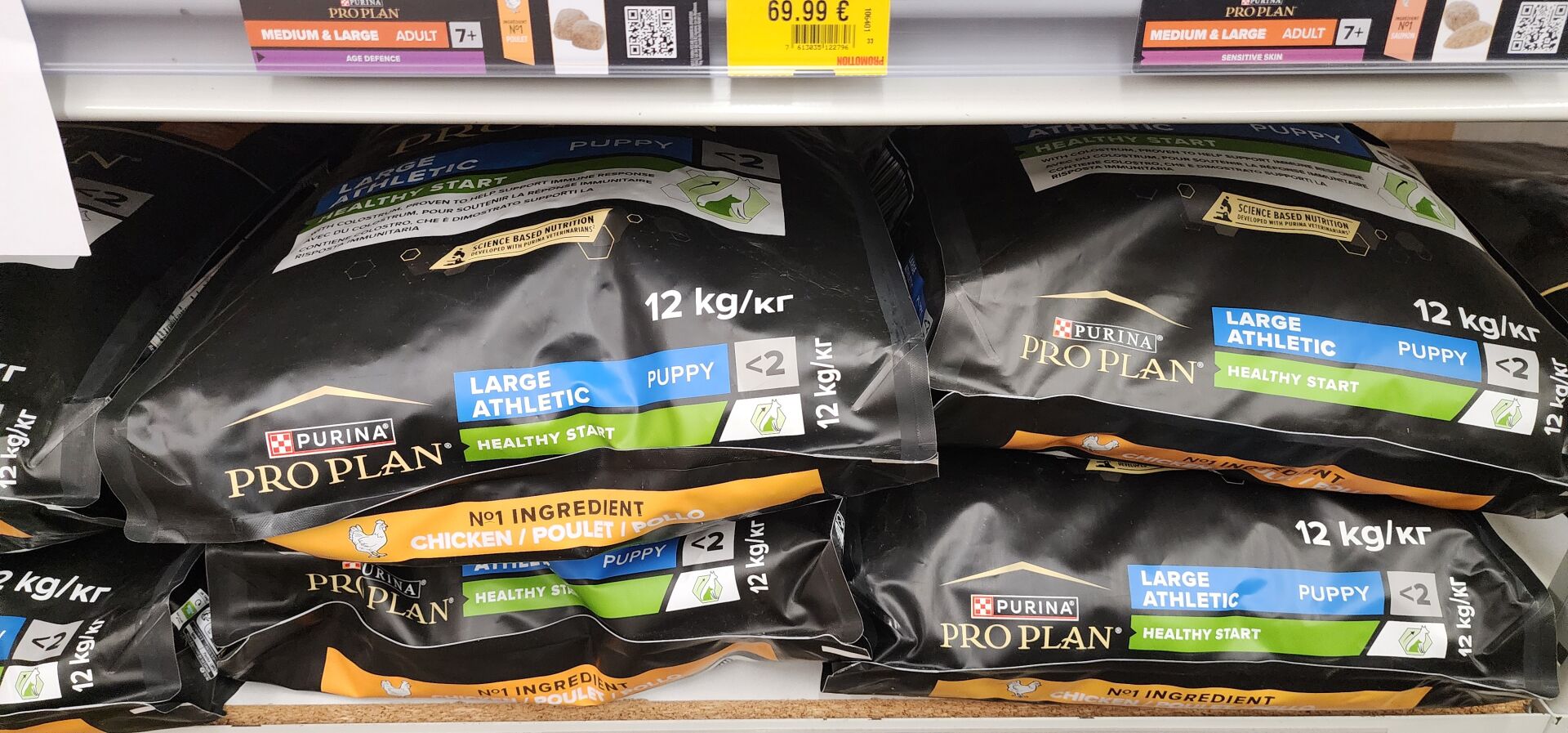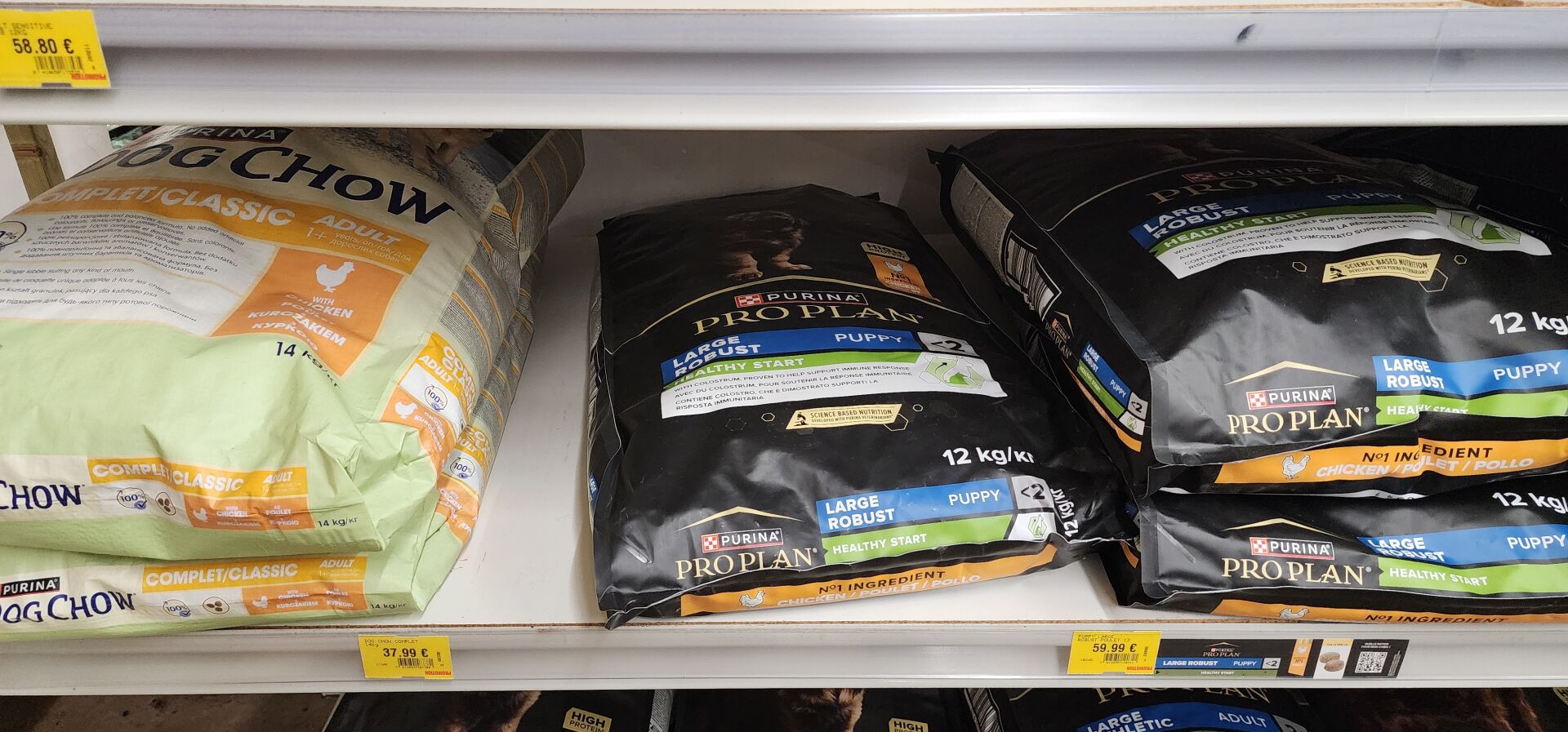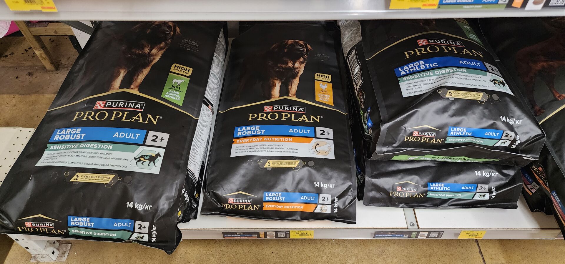 1 lot de nourriture pour chien comprenant: environ 18 sacs de croquettes de 12 ou 14kg PURINA L'acheteur fera son affaire personnelle des articles dont la DLC serait dépassée - recommercialisation interdite