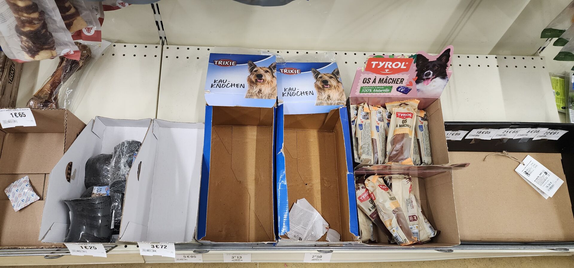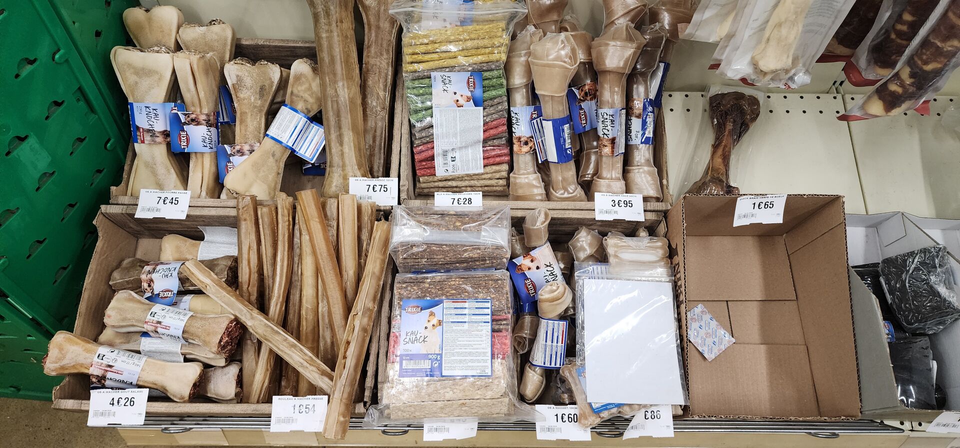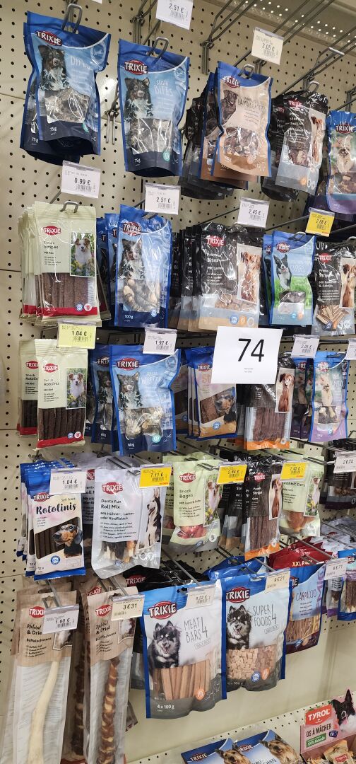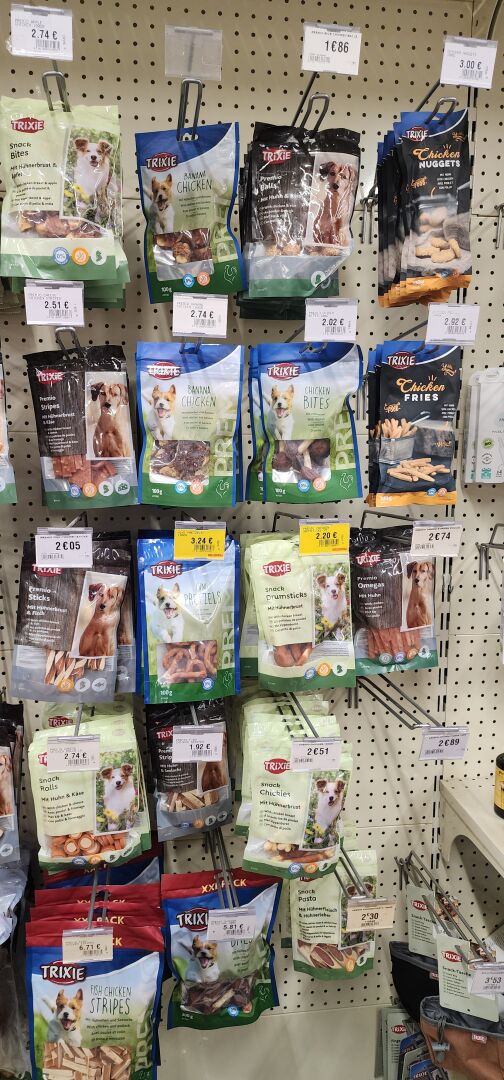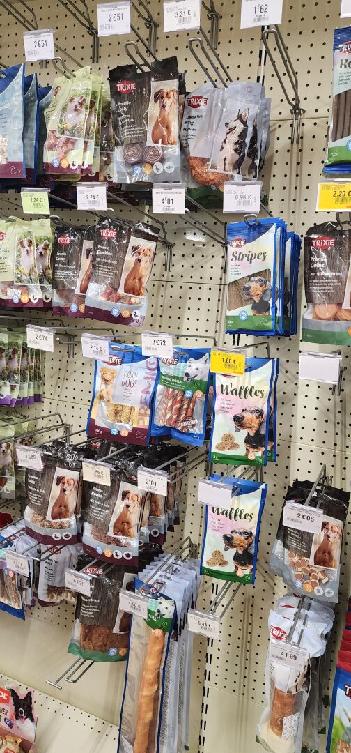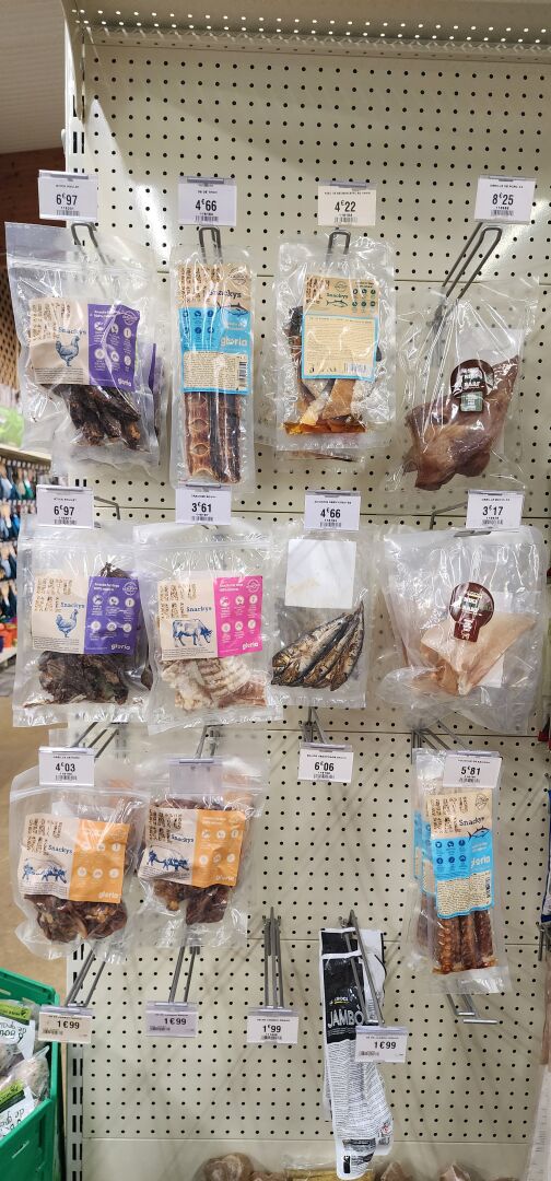 1 lot d'environ 250 sachets de friandises ou d'os pour chien L'acheteur fera son affaire personnelle des articles dont la DLC serait dépassée - recommercialisation interdite