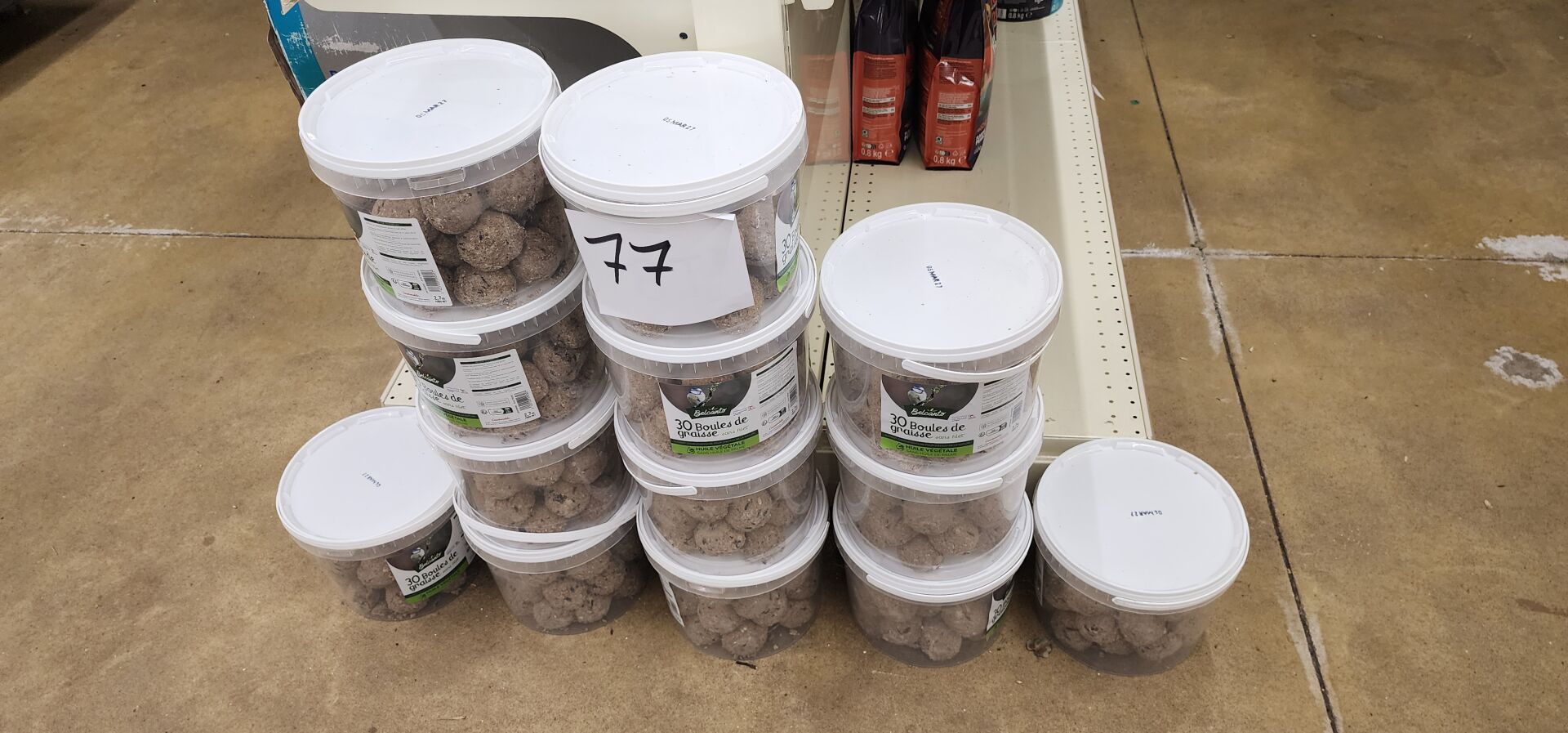 1 lot d'environ 50 pots de 30 boules de graisse sans filet BELCANTO L'acheteur fera son affaire personnelle des articles dont la DLC serait dépassée - recommercialisation interdite