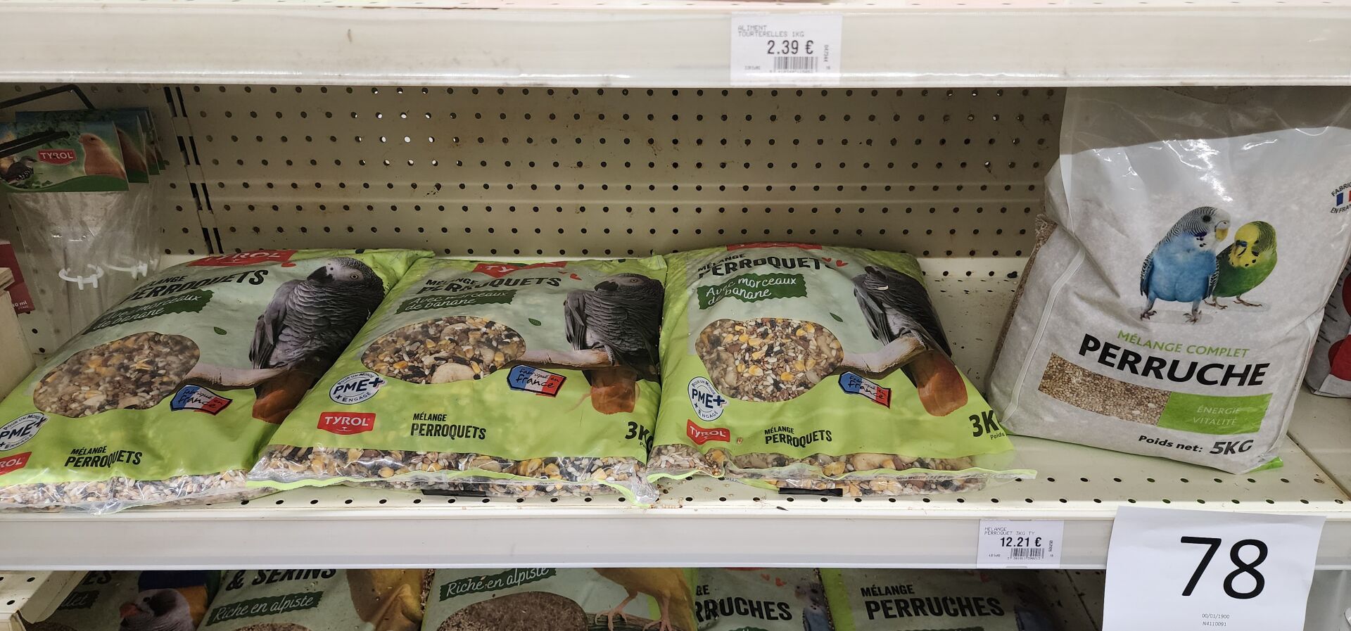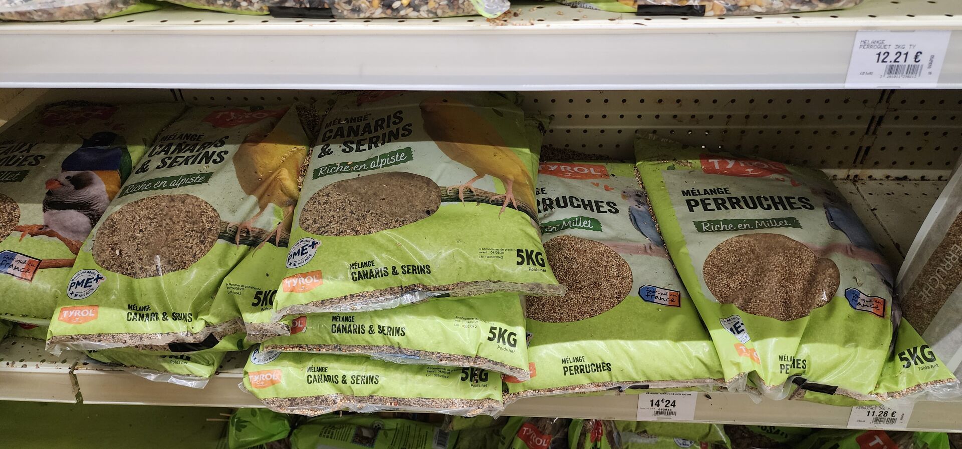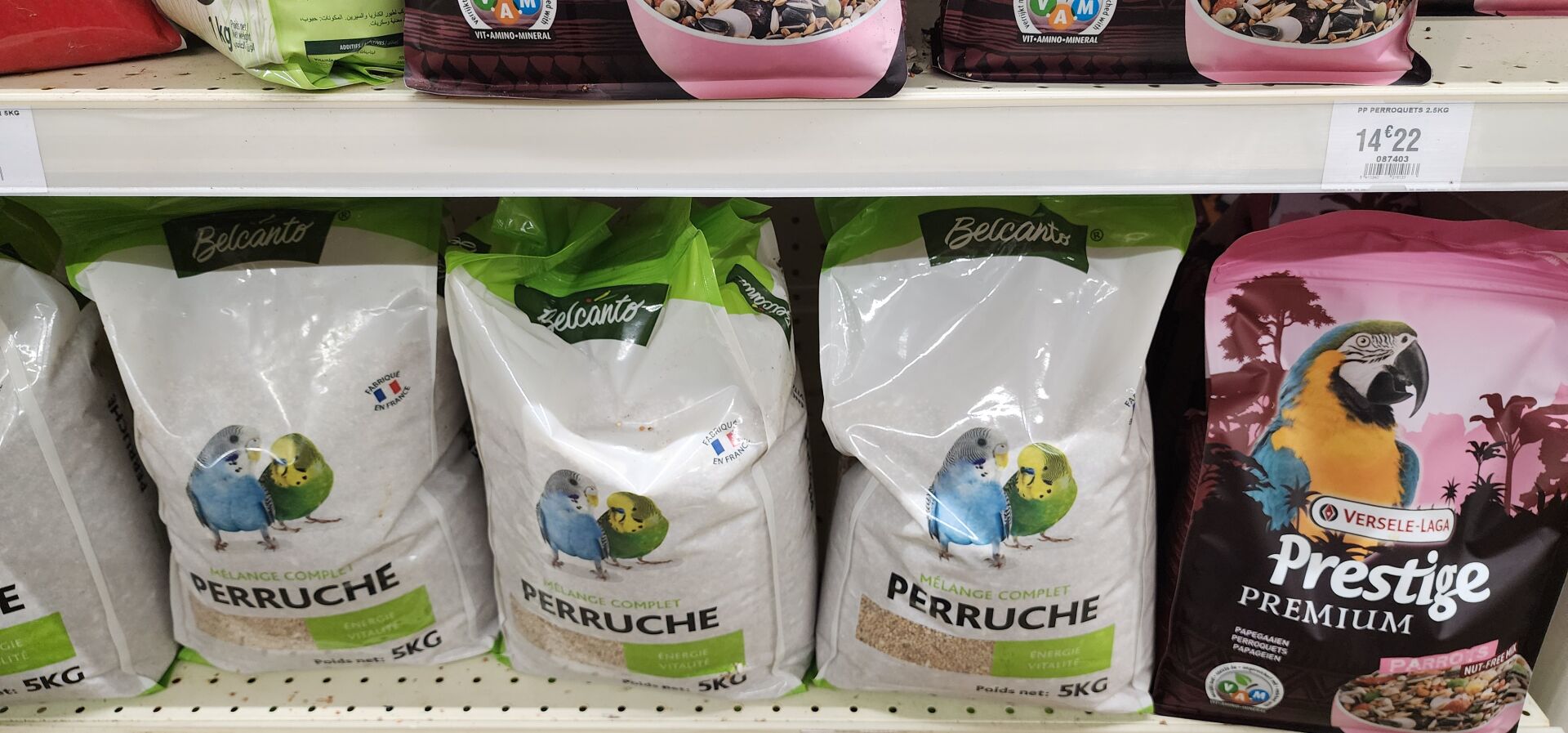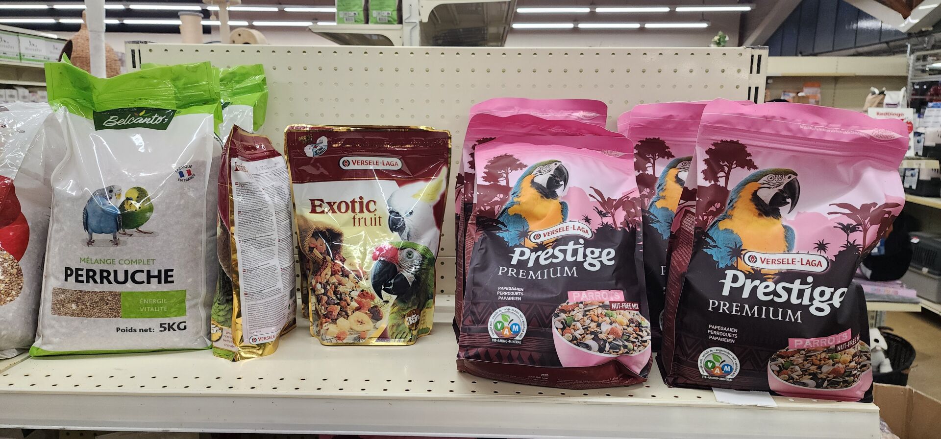 1 lot d'environ 50 sachets de graines et de mélange pour perroquet ou perruche dont: VERSELE-LAGA, BELCANTO, TYROL L'acheteur fera son affaire personnelle des articles dont la DLC serait dépassée - recommercialisation interdite