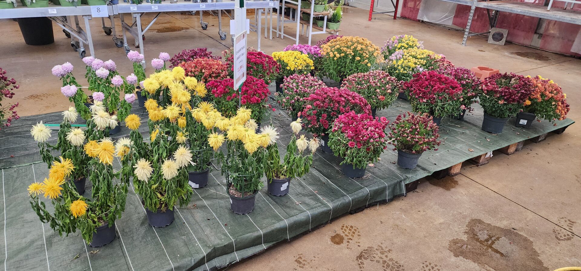 1 lot d'environ 33 pots de 19cm ou jardinières de 40cm de Chrysanthème