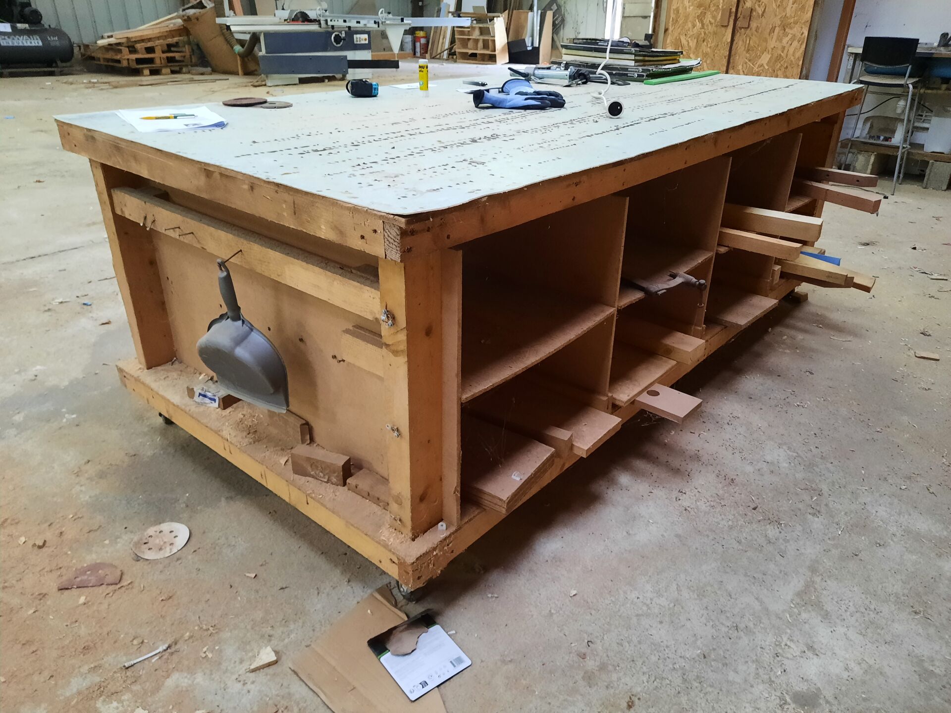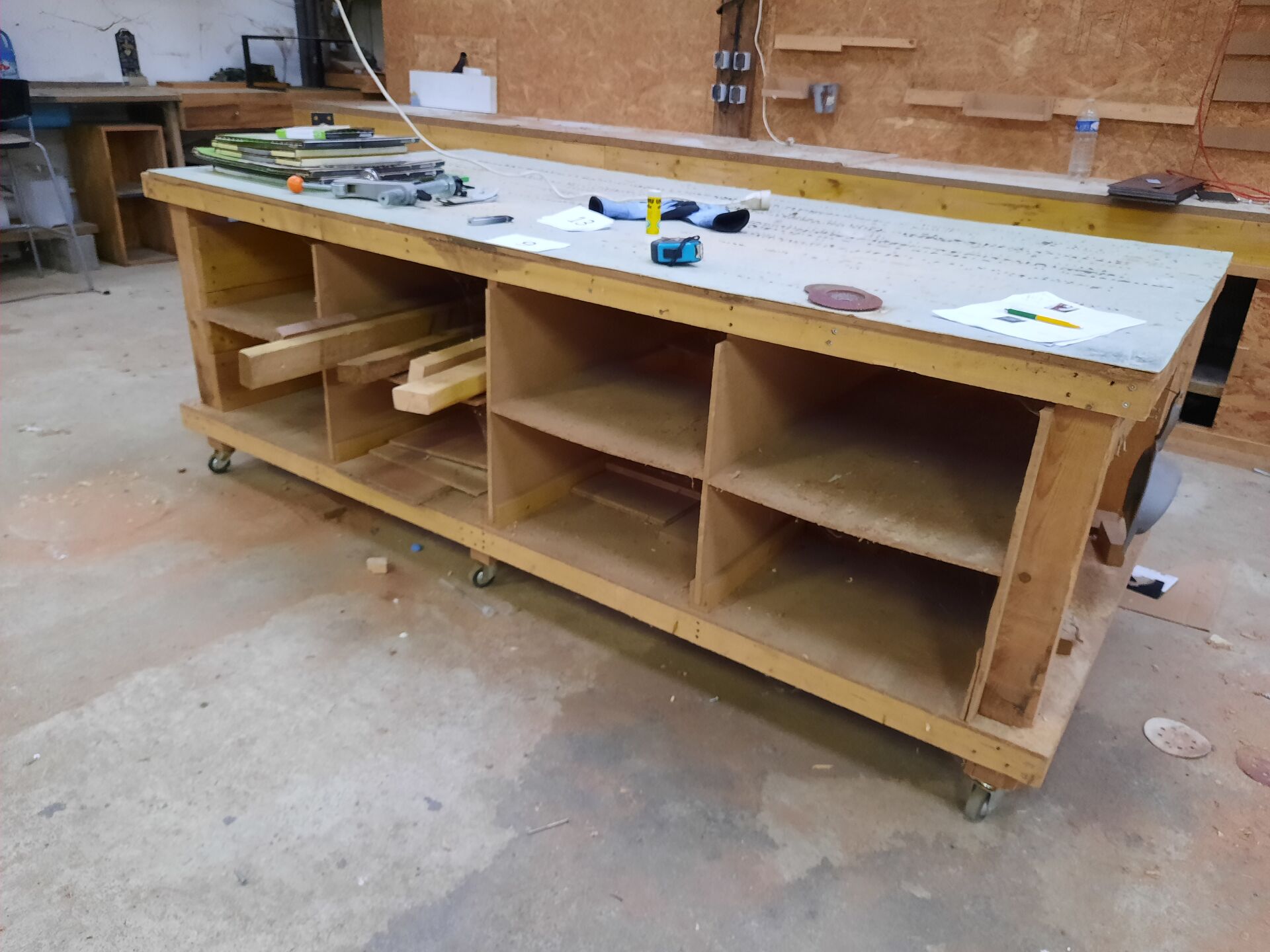 Établi roulant en bois (fabrication interne) 250X125