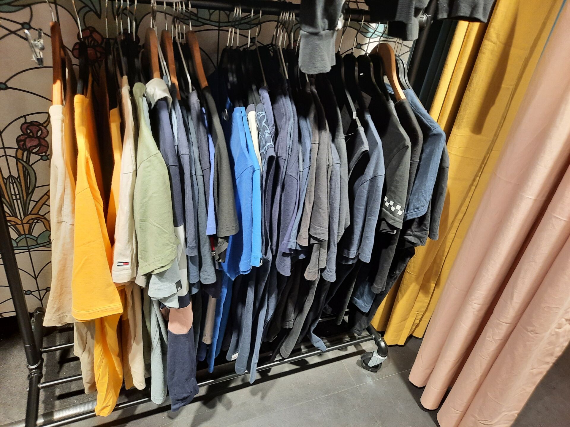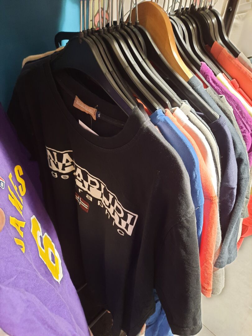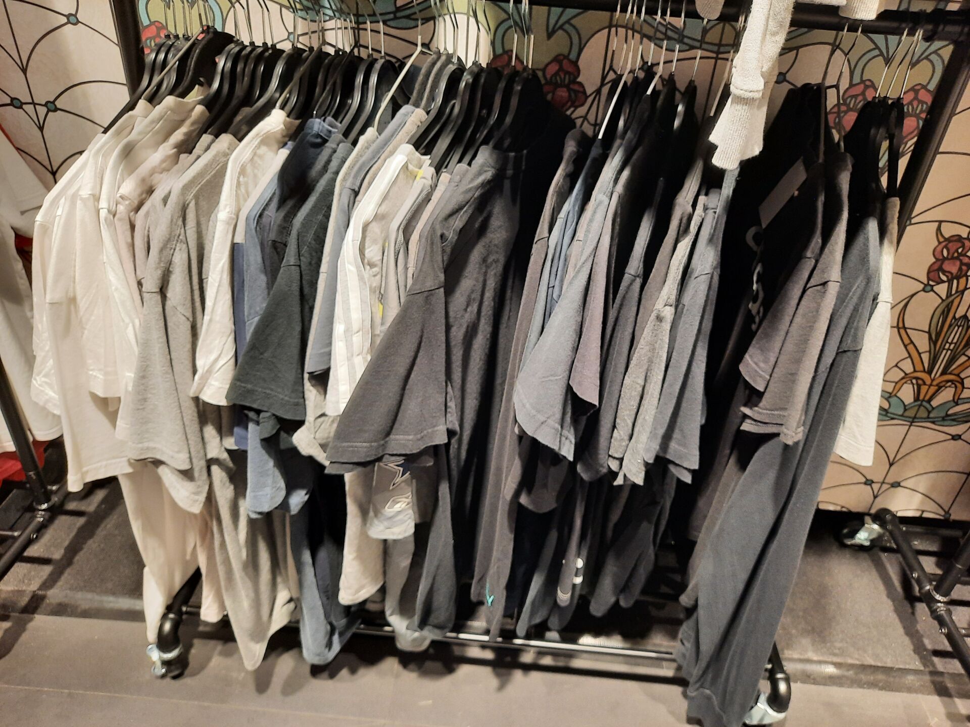 Ensemble d'articles de prêt à porter de seconde main composé d'environ , 163 tee-shirts, tailles et coloris divers