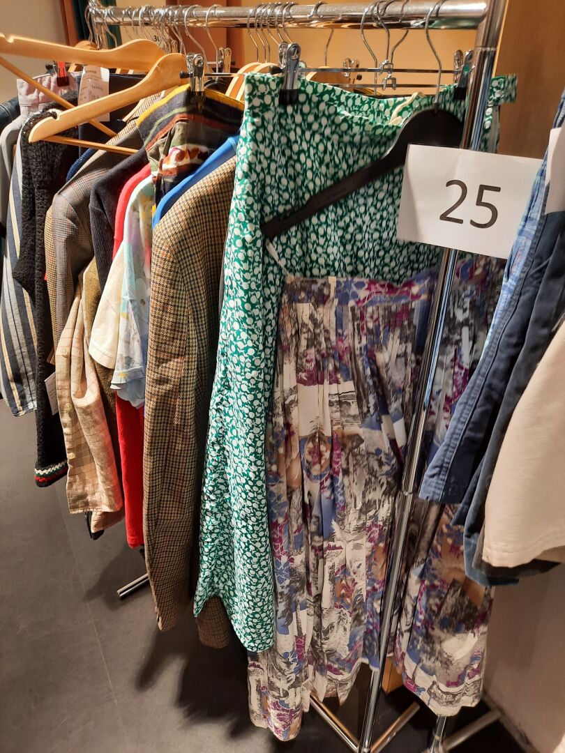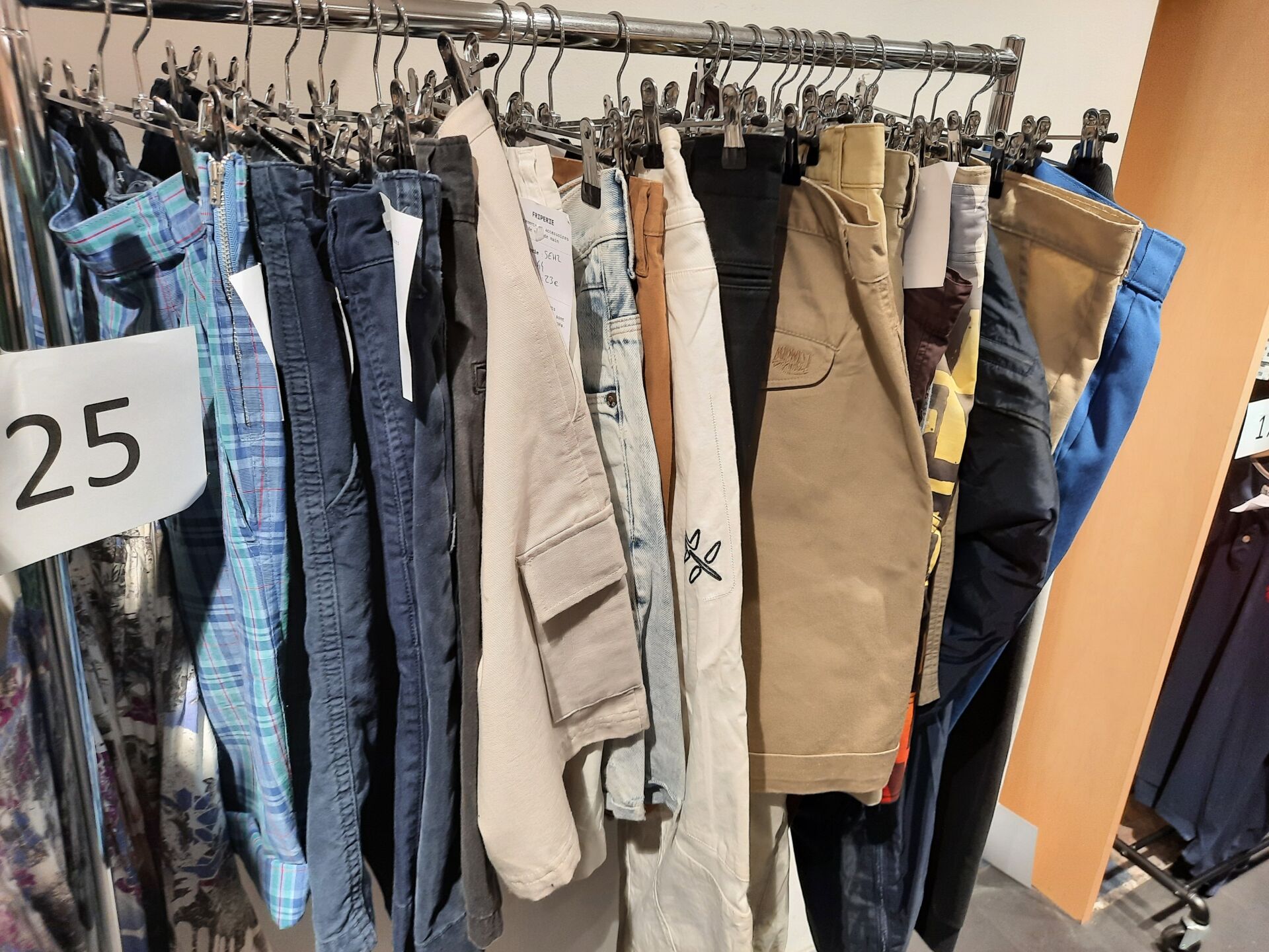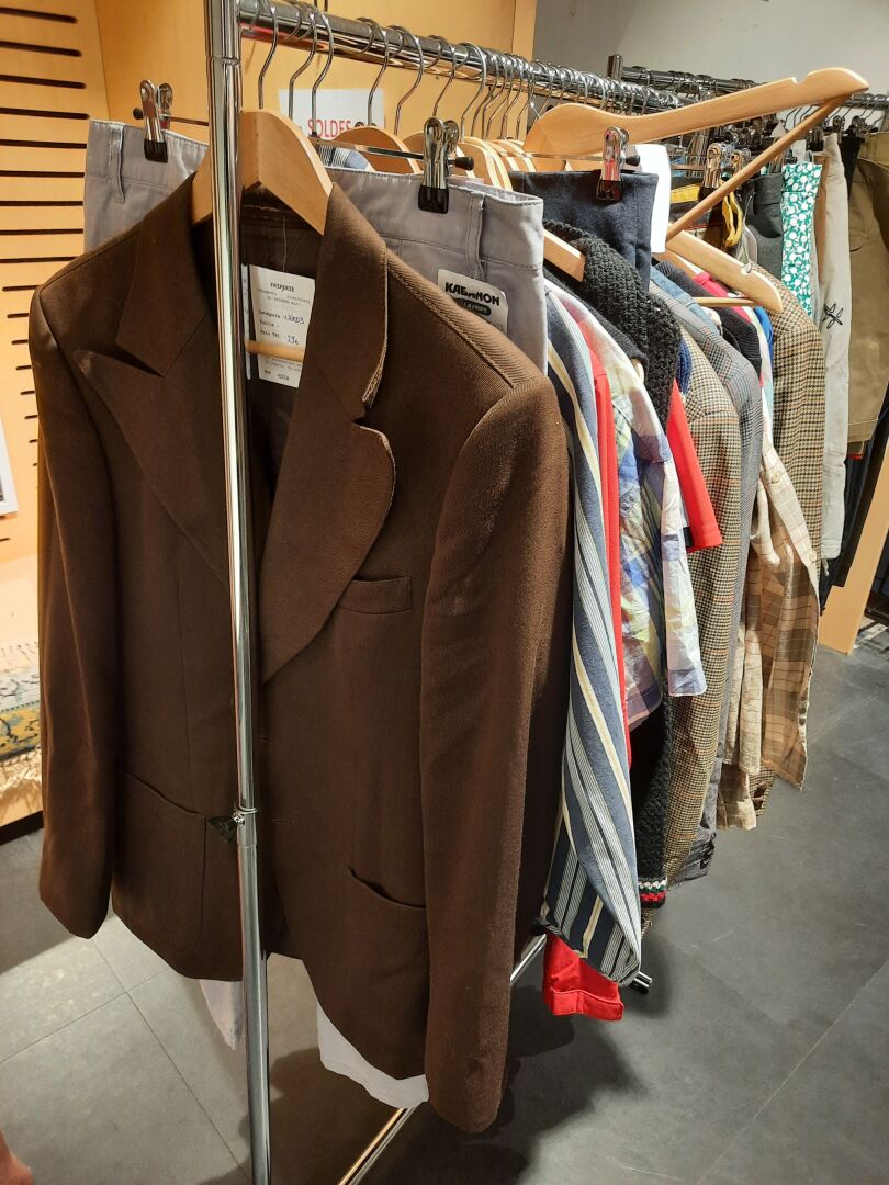 Ensemble d'articles de prêt à porter de seconde main composé d'environ , 53 vestes, bermudas, chemises, pulls,…, tailles et coloris divers