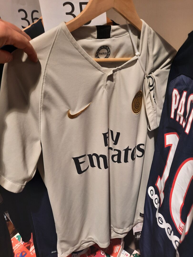 2 Maillots de Football, Paris Saint Germain, saison 16-17 taille S floqué PASTORE 10, saison 18-19 taille L non floqué