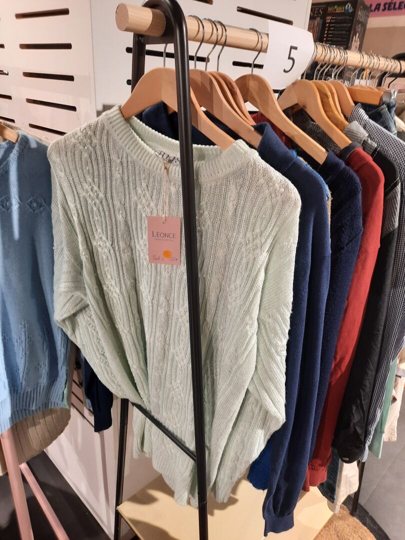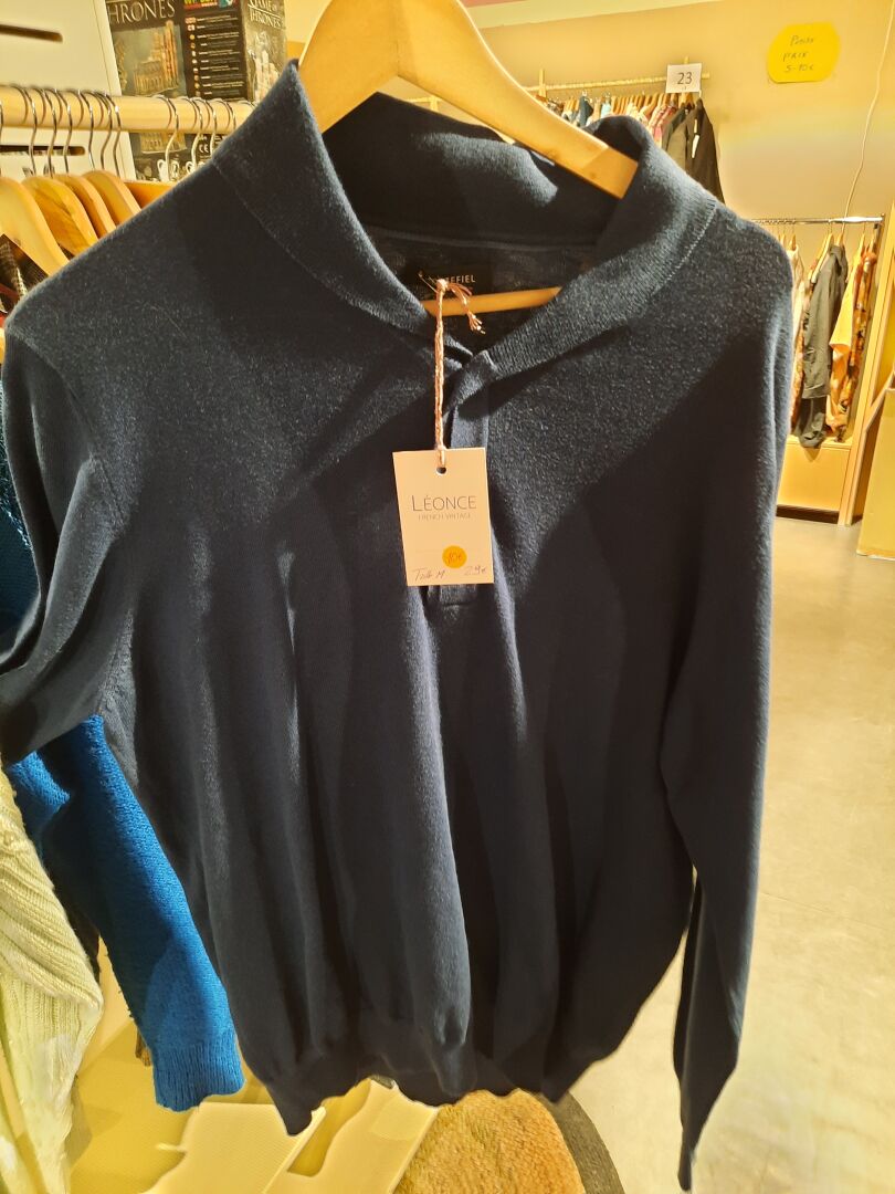 Ensemble d'articles de prêt à porter de seconde main composé d'environ , 20 pulls, chemisiers, pantalons pour femme, tailles et coloris divers