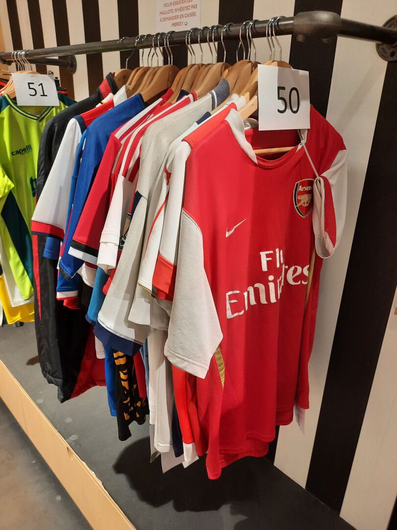 Ensemble de 20 maillots de Clubs anglais dont Liverpool, Manchester City & United, Arsenal, Hull, Swansea,… On joint Parka Manchester United 92-93 , Tailles diverses et floquages