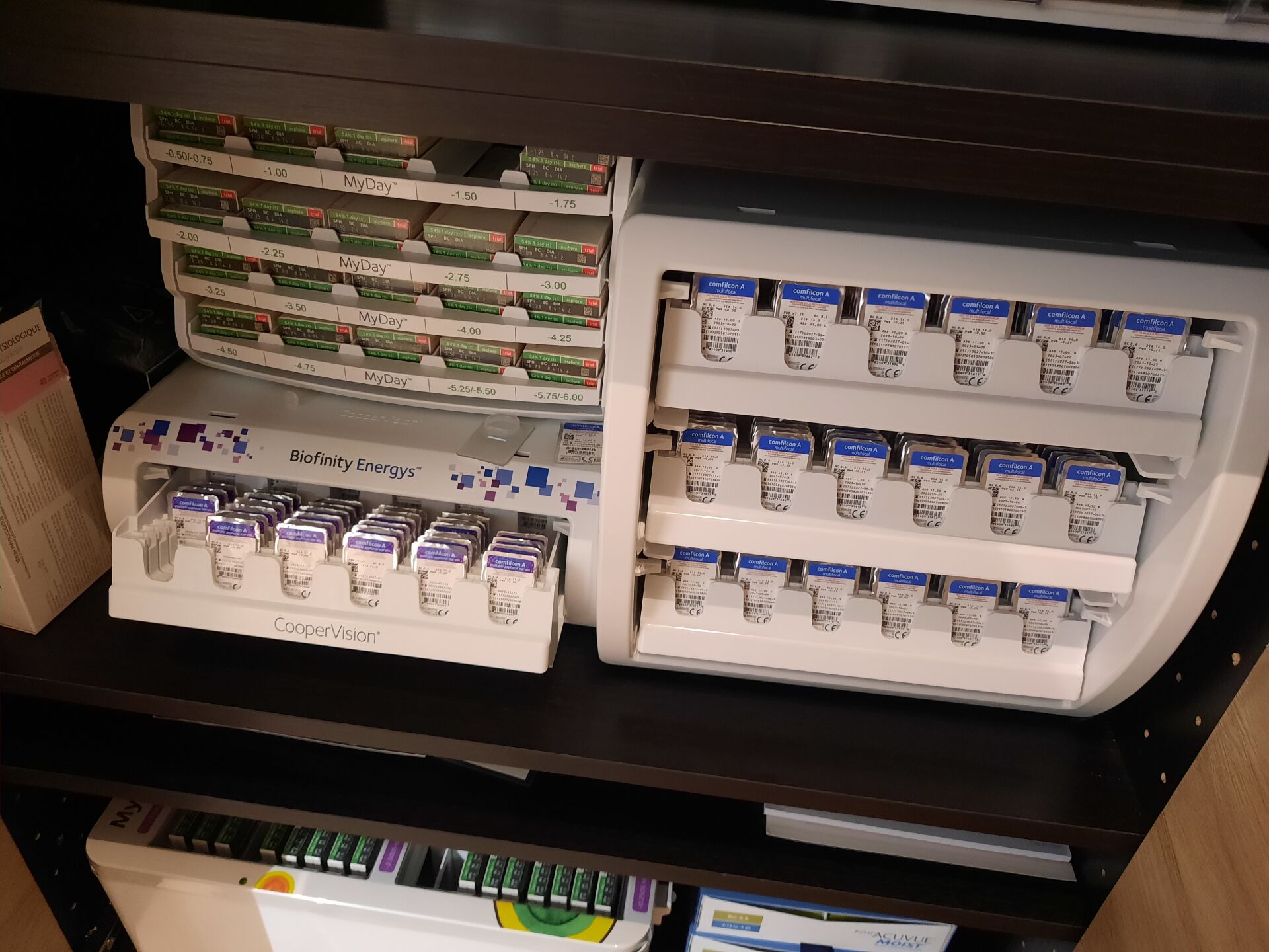 Stock de lentilles de contact et produits pour lentille de contact dont ALCON, 1-DAY ACUVUE, COOPER VISION L ACHETEUR FERA SON AFFAIRE PERSONNELLE DES EVENTUELLES DLC/DLU (non contrôlées) DEPASSEES - A CHARGE DE CONDITIONNEMENT PAR L ACHETEUR