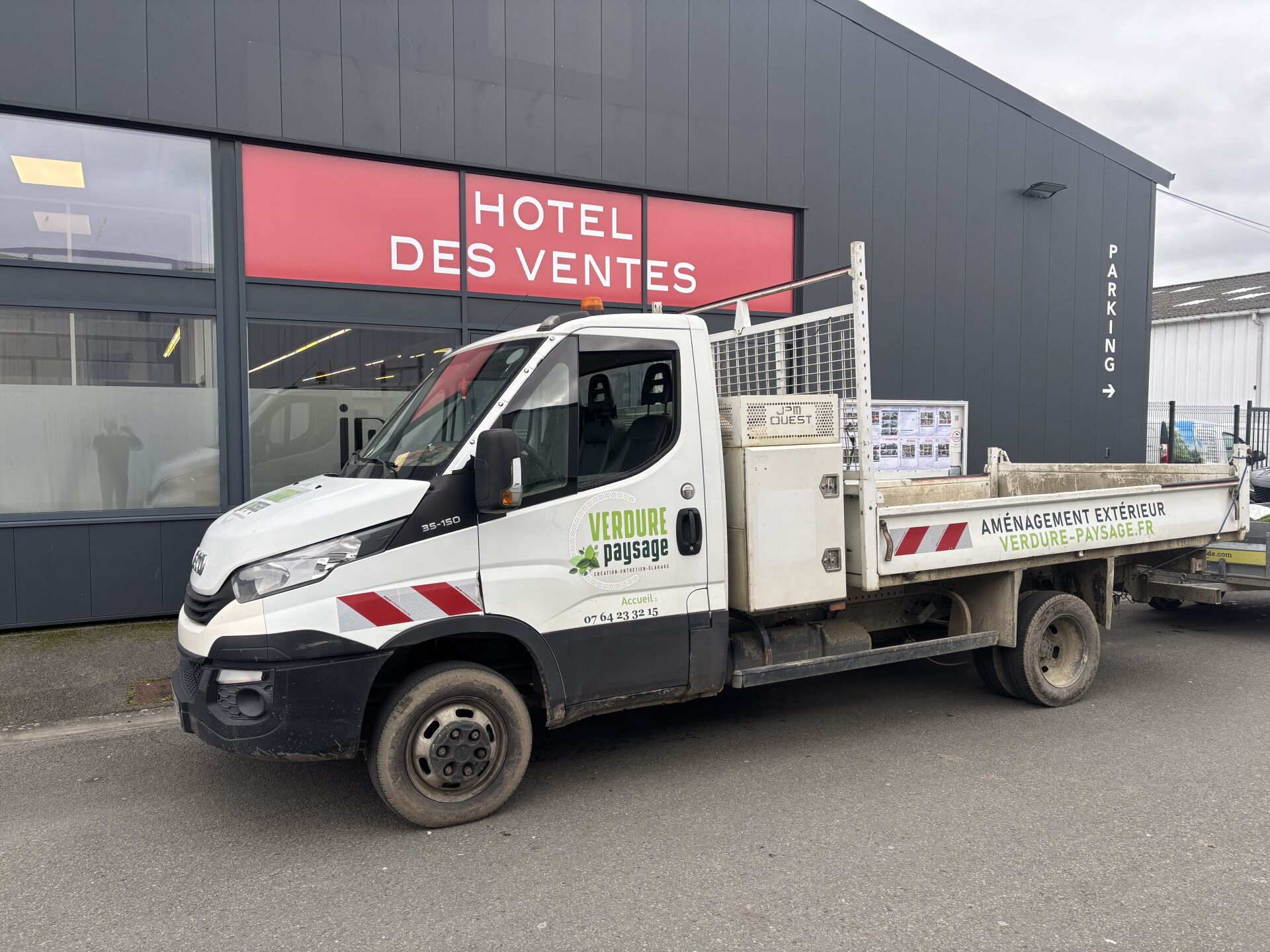 ENLEVEMENT SUR PLATEAU OBLIGATOIRE Boite manuelle 6 vitesses Vitres et rétroviseurs électriques, coffre à outils, roues arrière jumelées, attelage, sérigraphié, enfoncement OBLIGATION POUR L ACQUEREUR DE RETIRER L ADHESIF PUBLICITAIRE DEFAILLANCES CRITIQUES : Jante : fêlure ou défaut de soudure (AVD) DEFAILLANCES MAJEURES : l'orientation d'un feu de croisement n'est pas dans les limites prescrites par les exigences Glace fortement défectueuse (lumière émise affectée) Pneumatiques : indicateur d'usure de la profondeur des sculptures est atteint (AVG, AVD) Un élément de ressort ou de stabilisateur est endommagé ou fendu (AVD, ARG, ARD) Un ouvrant est susceptible de s'ouvrir inopinément ou ne reste pas fermé (ARG) DEFAILLANCES MINEURES : Feu de marche arrière : source lumineuse défectueuse (AR) Etat de la cabine et de la carrosserie (panneau ou élément endommagé (G) Autres ouvrants : déterioration (G)