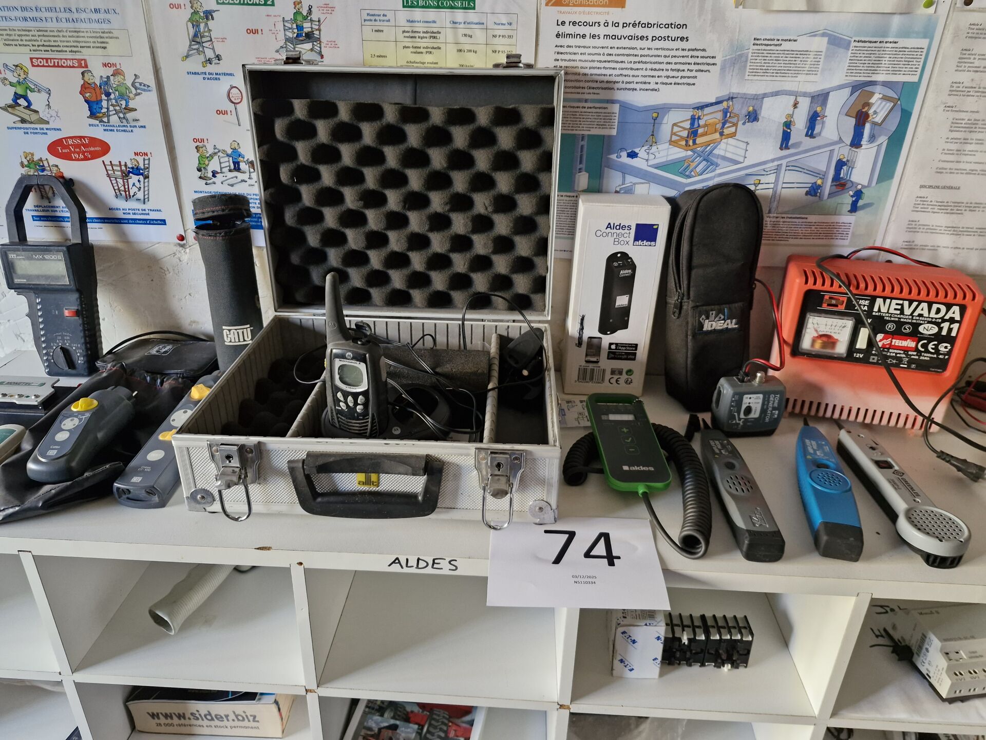 1 multimètre ITT MX 1200 S 1 ensemble d'appareils de mesure comprenant : 1 contrôleur d'installation électrique et contrôleur de disjoncteur CATU 3 testeurs de circuit dont GREENLEE 200 ep-G 1 générateur de tonalité IDEAL 1 chargeur de batterie NEVADA 6-12 V + contenu d'une étagère