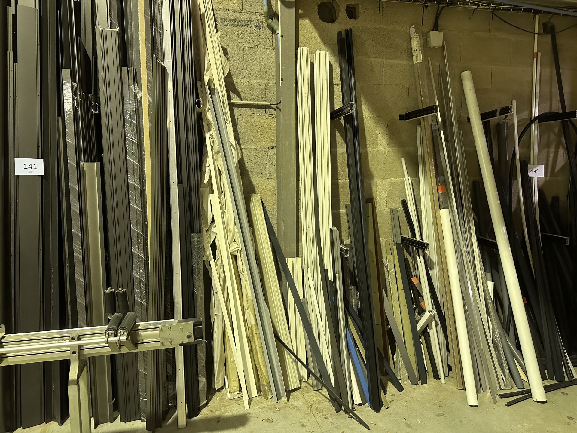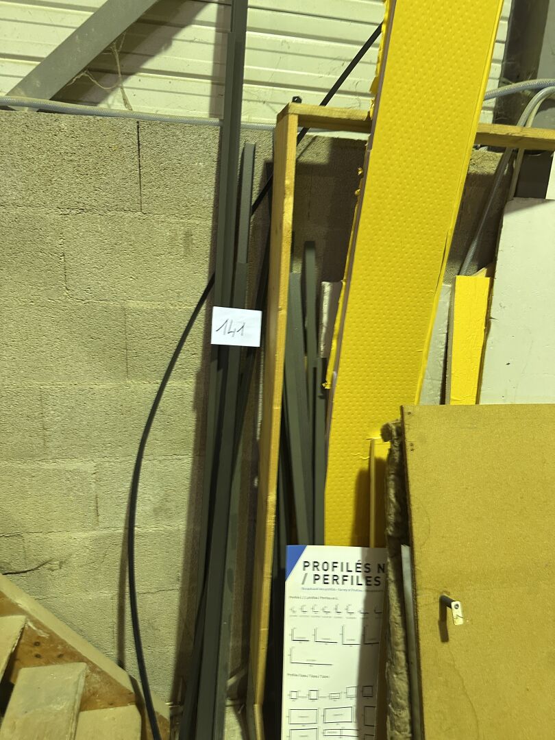 Le long d'un mur : 1 stock de profils alu différentes longueurs et couleurs