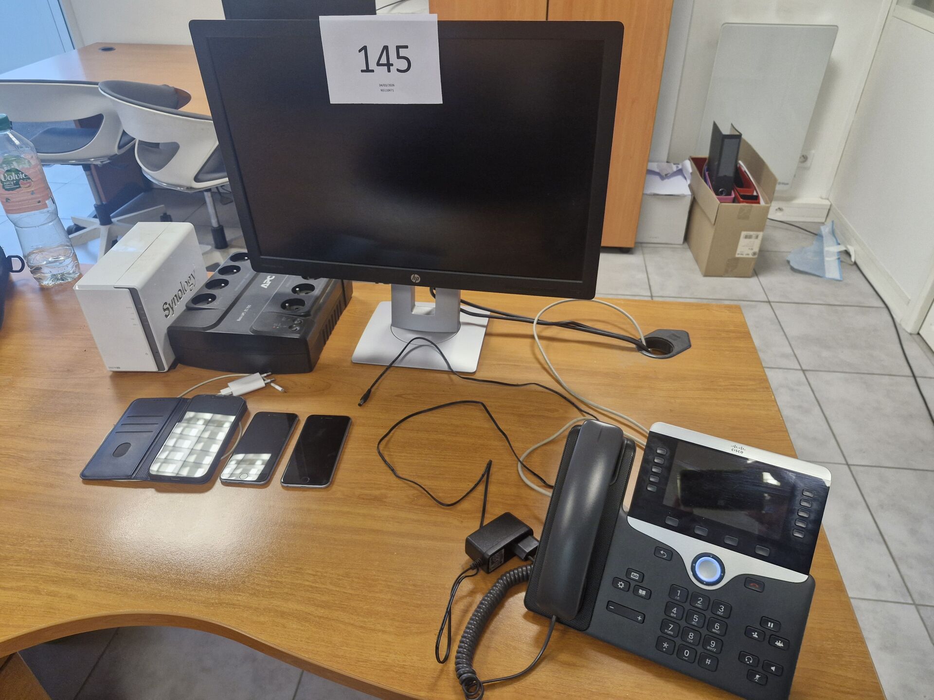 1 smartphone APPLE Iphone S ; état de fonctionnement inconnu 1 smartphone APPLE Iphone 13 Pro Max 1 smartphone APPLE Iphone 15 1 écran H P 24", 1 onduleur APC , 1 téléphone CISCO 1 serveur NAS SYNOLOGY DS 216 SE