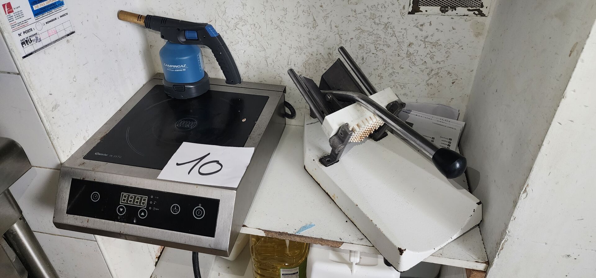1 micro-ondes SAMSUNG , 1 plaque à induction BARTSCHEIR IK 35 TC, 1 coupe-frites (état moyen)