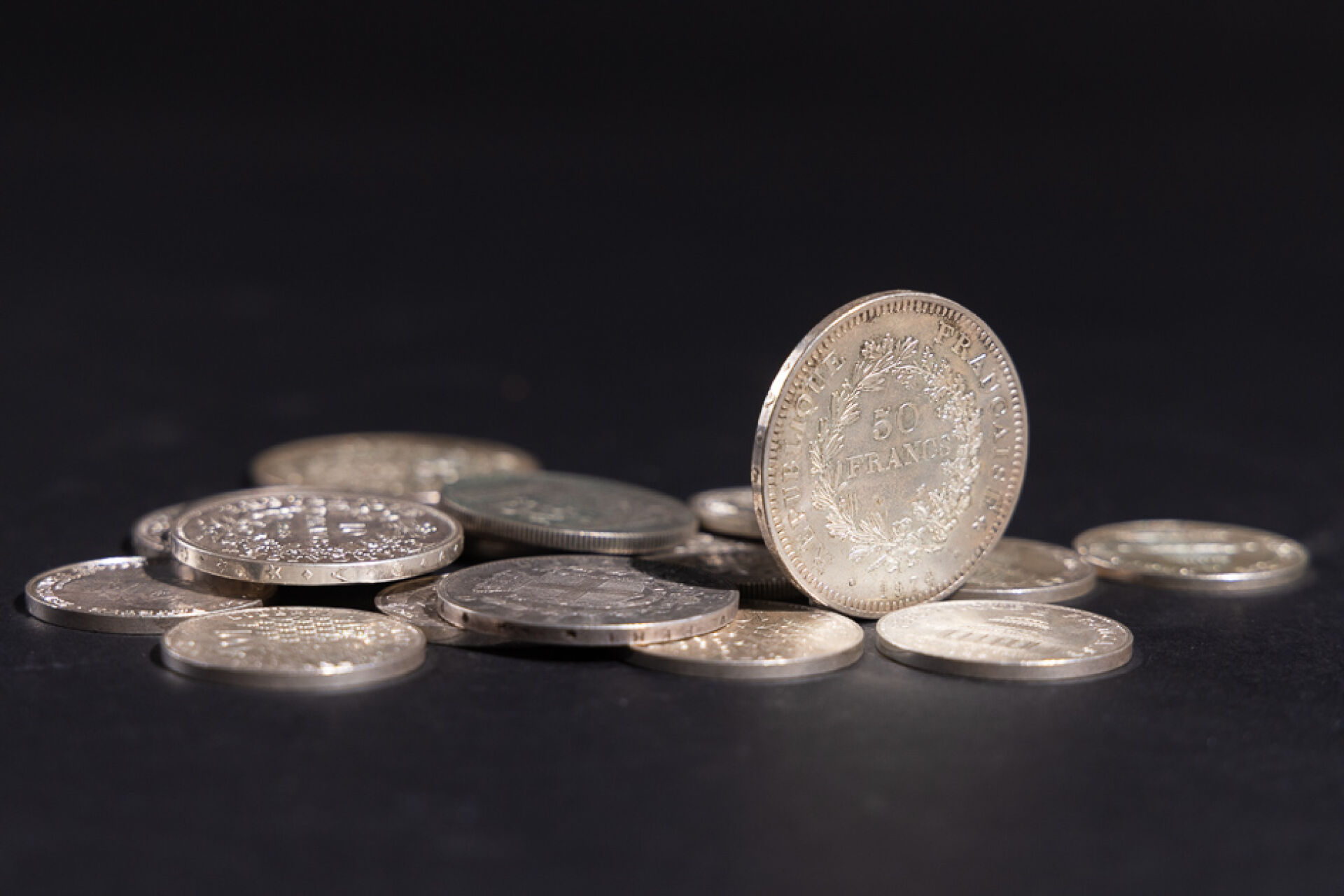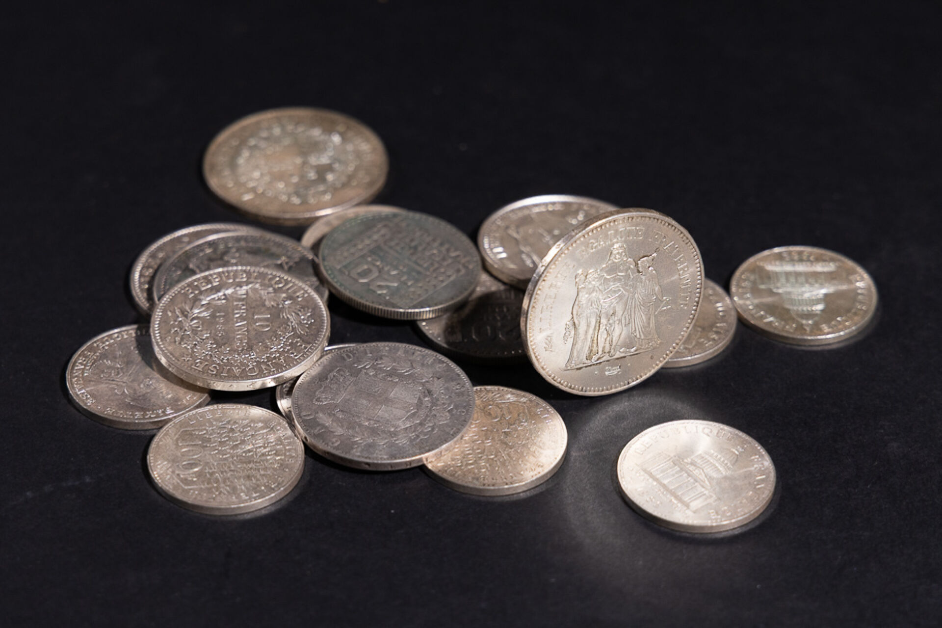 Ensemble de pièces en argent comprenant : - Deux pièces de 50 francs Hercule - Quatre pièces de 10 francs Hercule - Huit pièces de 100 francs - Pièce de 5 lires 1873 -Deux pièces de 20 francs Marianne Poids total : 344.79 g