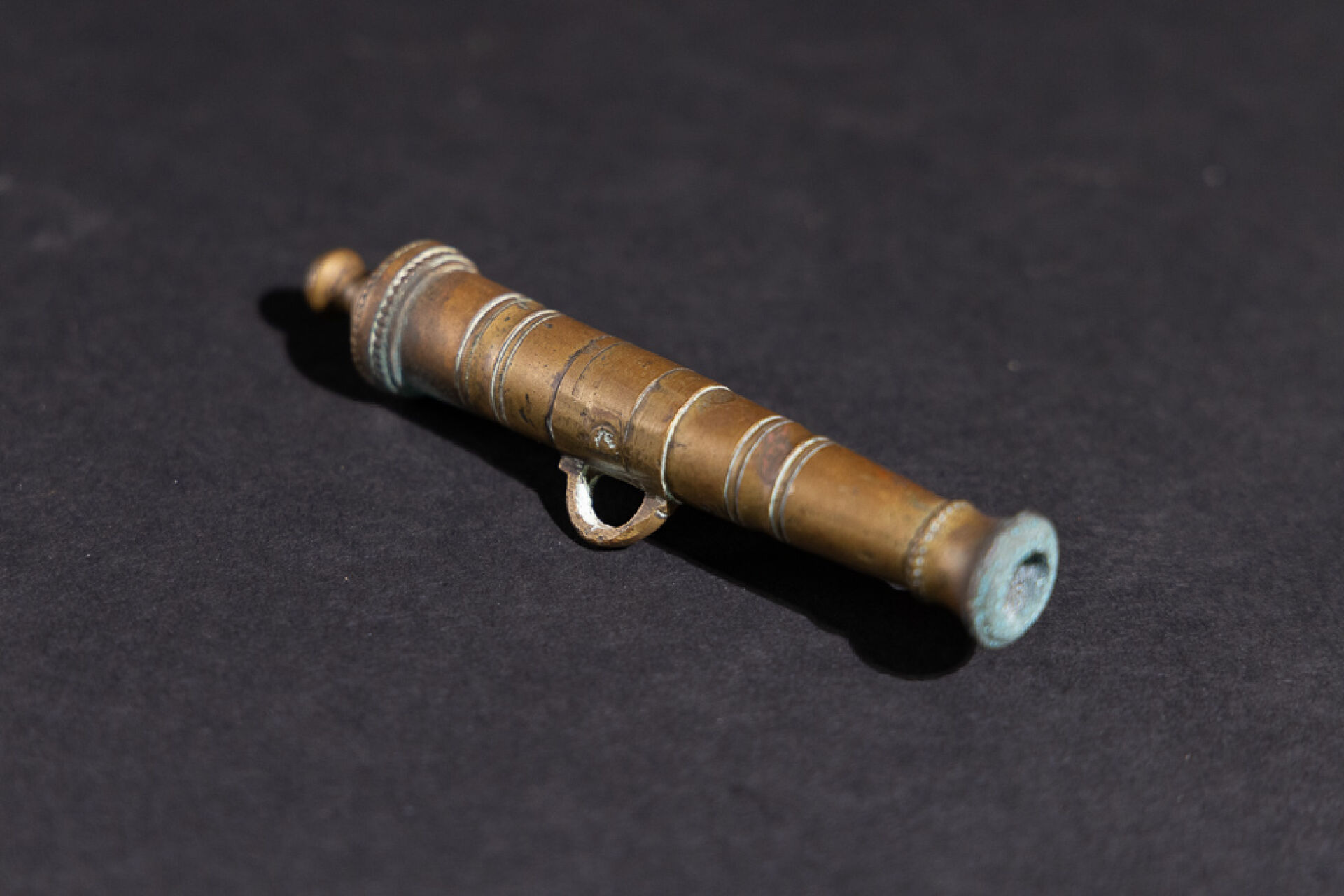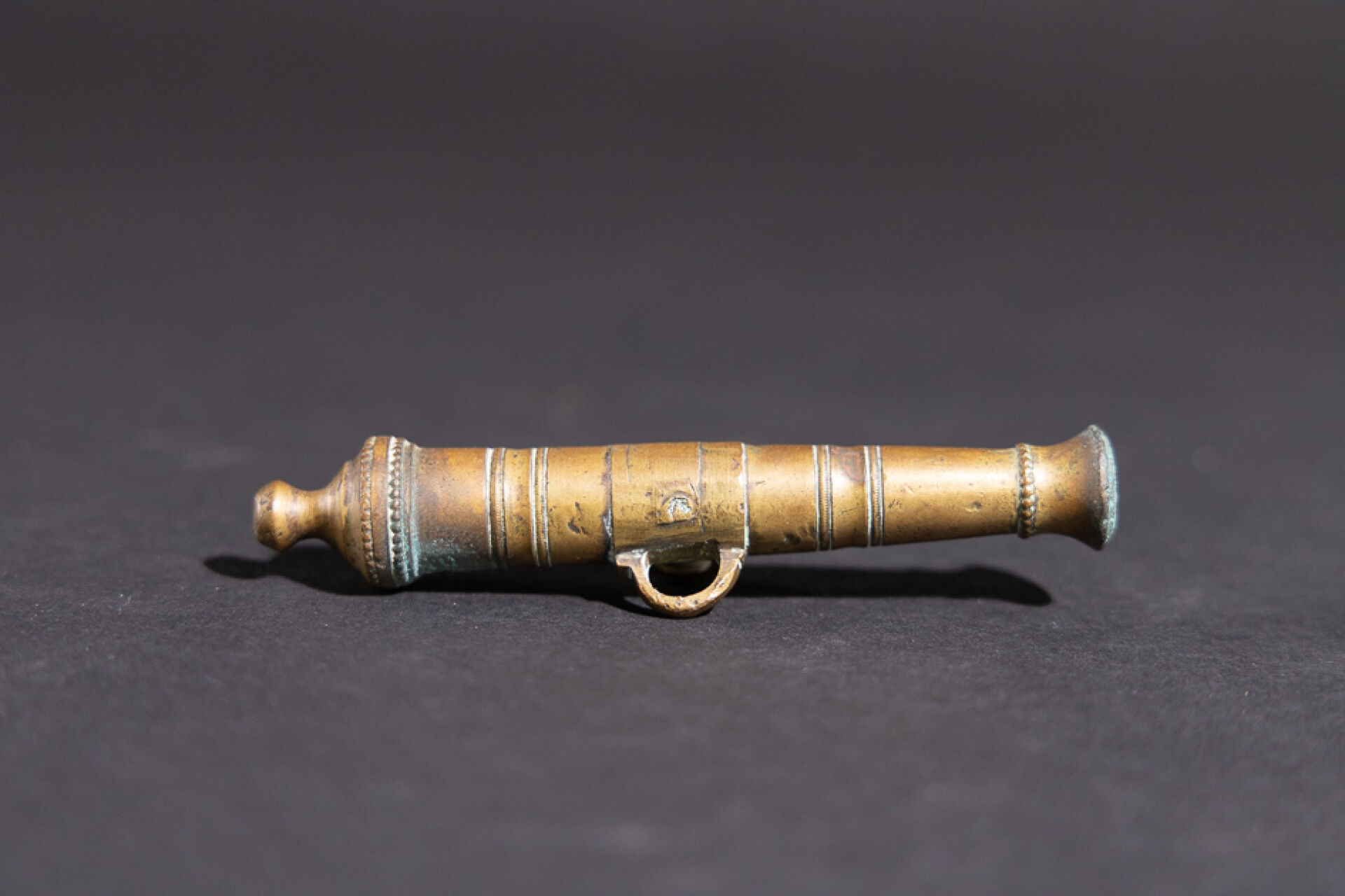 Fût de canon miniature en laiton (accidents et oxydation). XIXe siècle. Long. : 11 cm