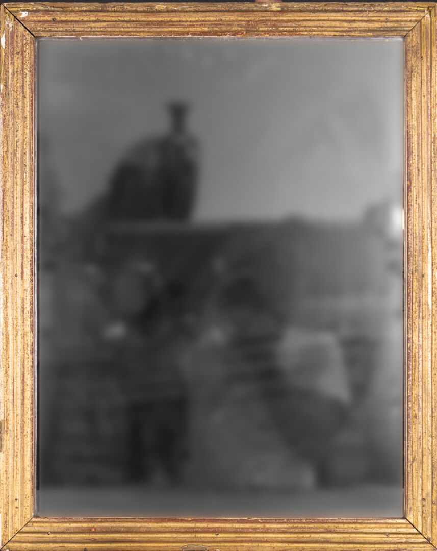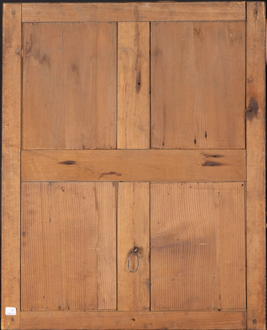 Miroir rectangulaire en bois stuqué doré, les montants à encadrements cannelés (accidents et manques). Dans le goût du XVIIIe siècle Haut. : 68 cm - Larg. : 56 cm