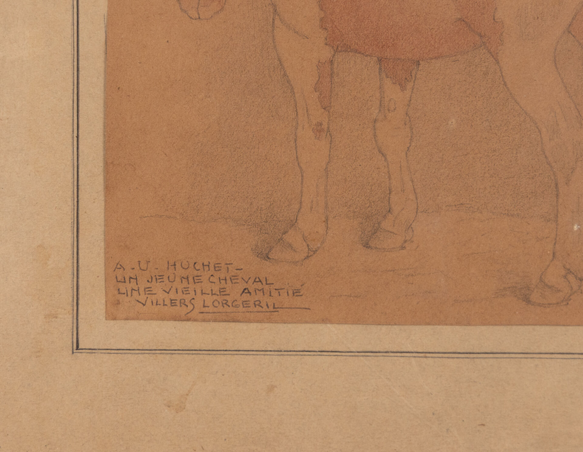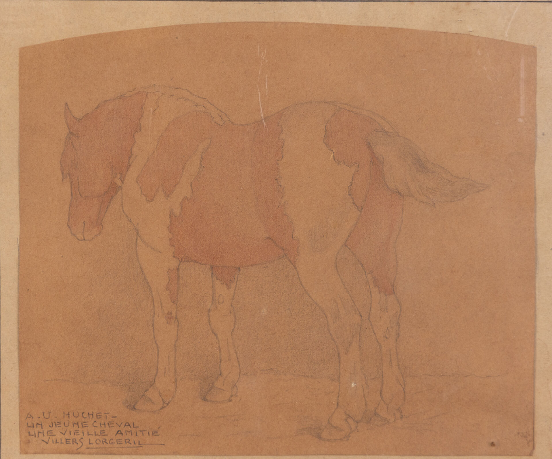 VILLERS-LORGERIL (XXe siècle). "Un jeune cheval". Dessin dédicacé à A.U. HUCHET et signé (insolations). Haut. : 16 cm - Larg. : 18.5 cm