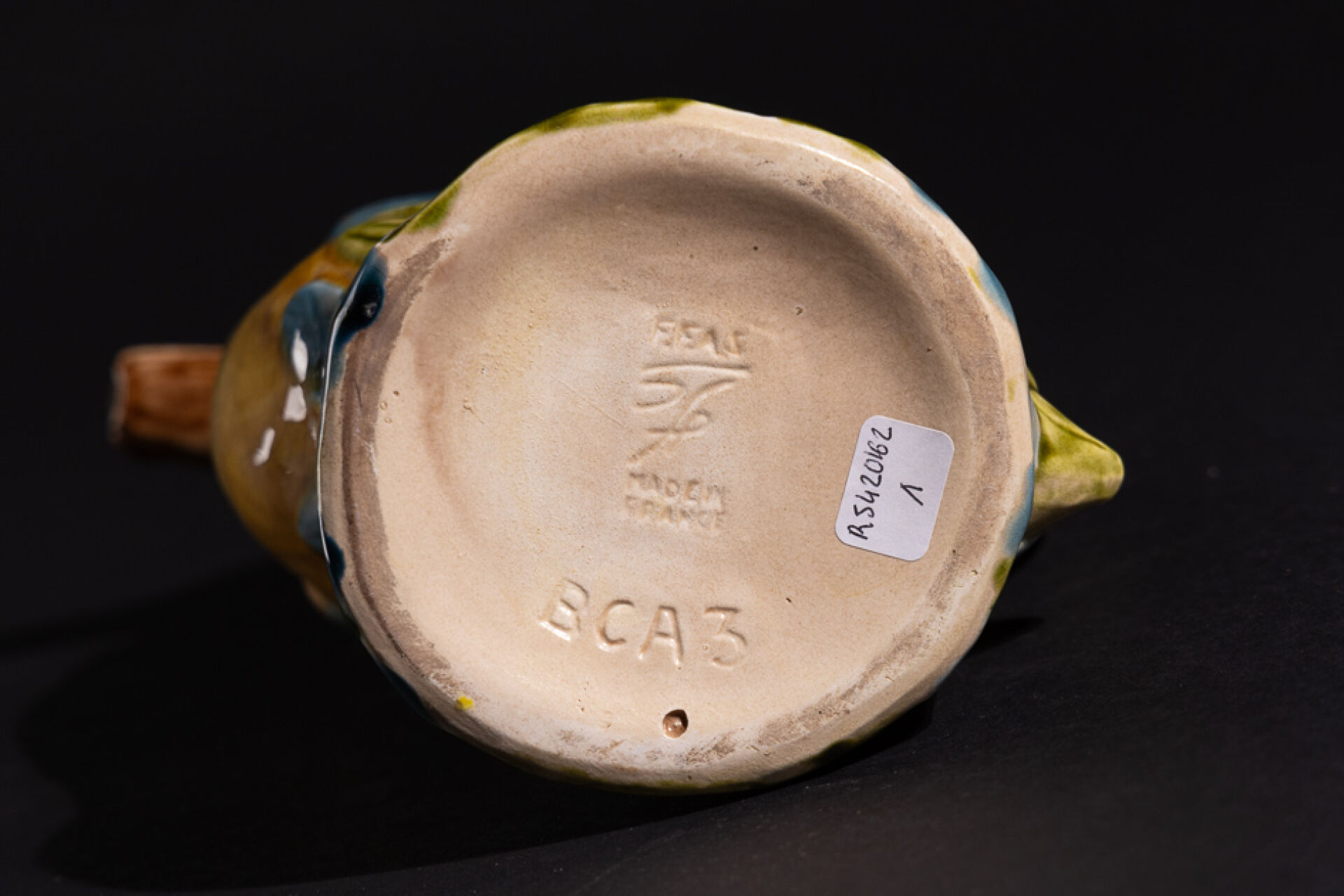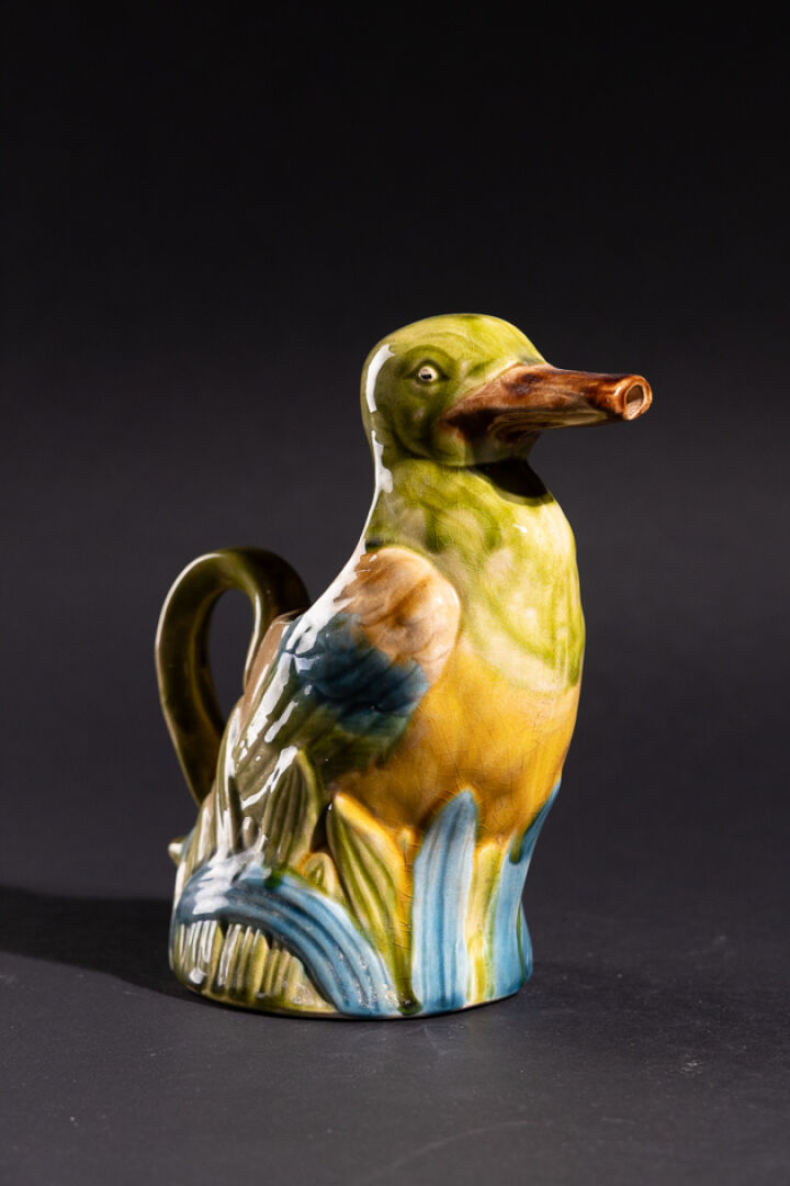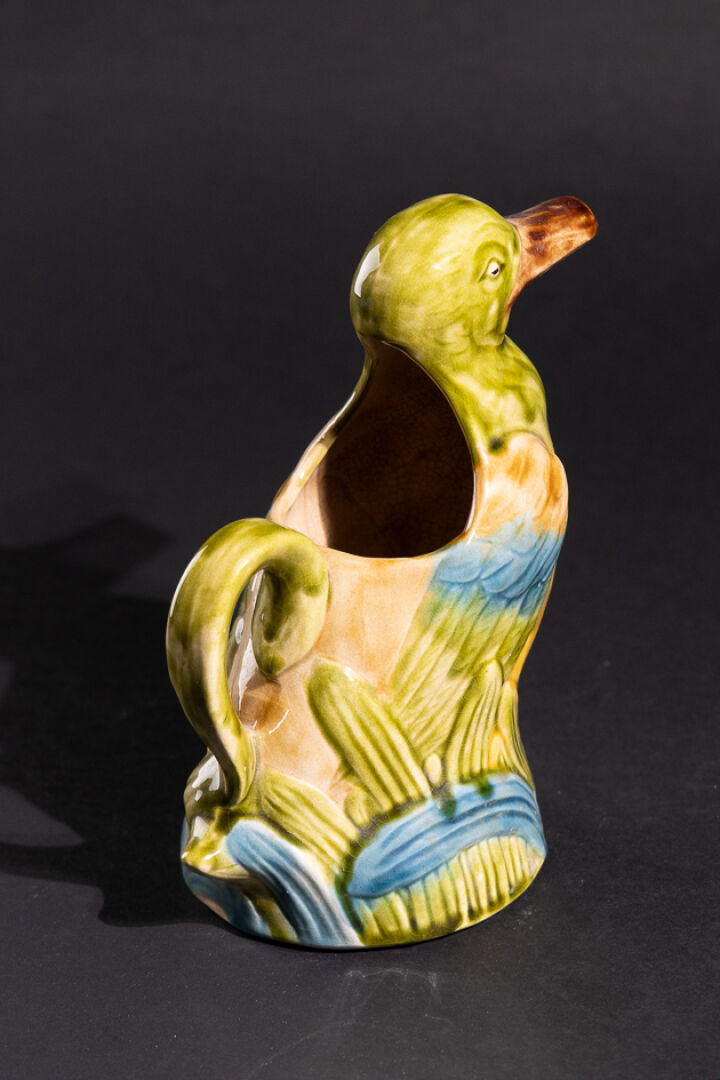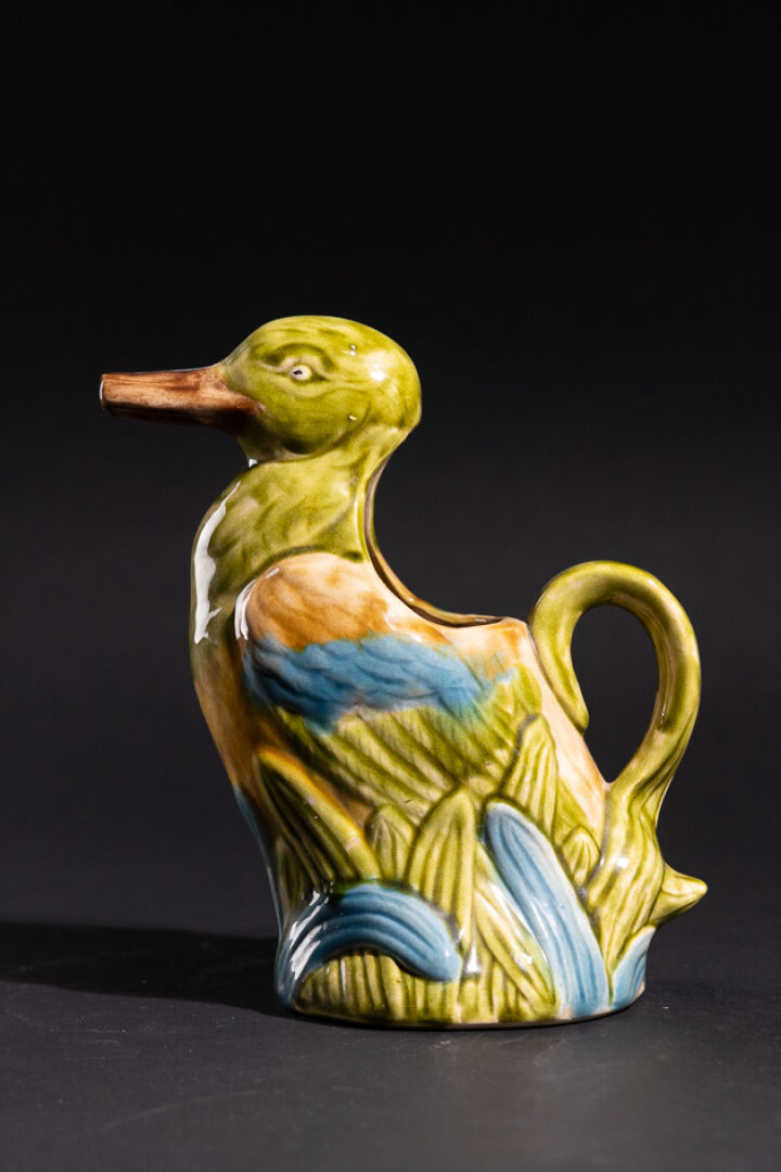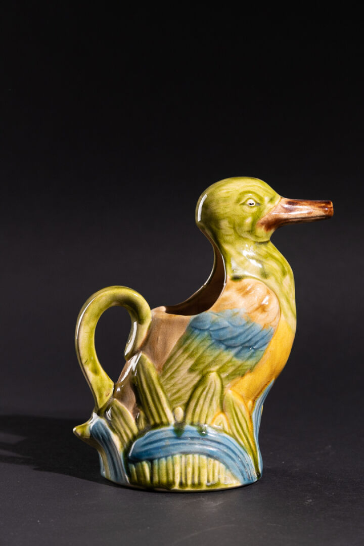 Manufacture de SAINT CLEMENT. Pichet canard en barbotine marqué au revers et numéroté BCA3. Haut. : 23 cm