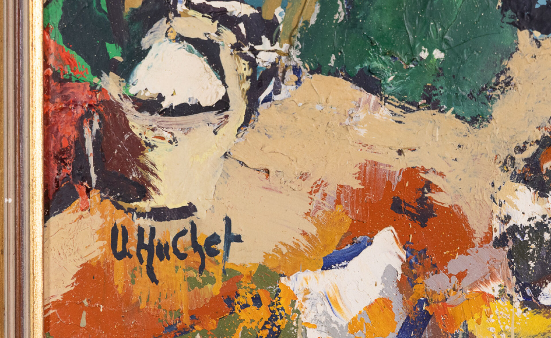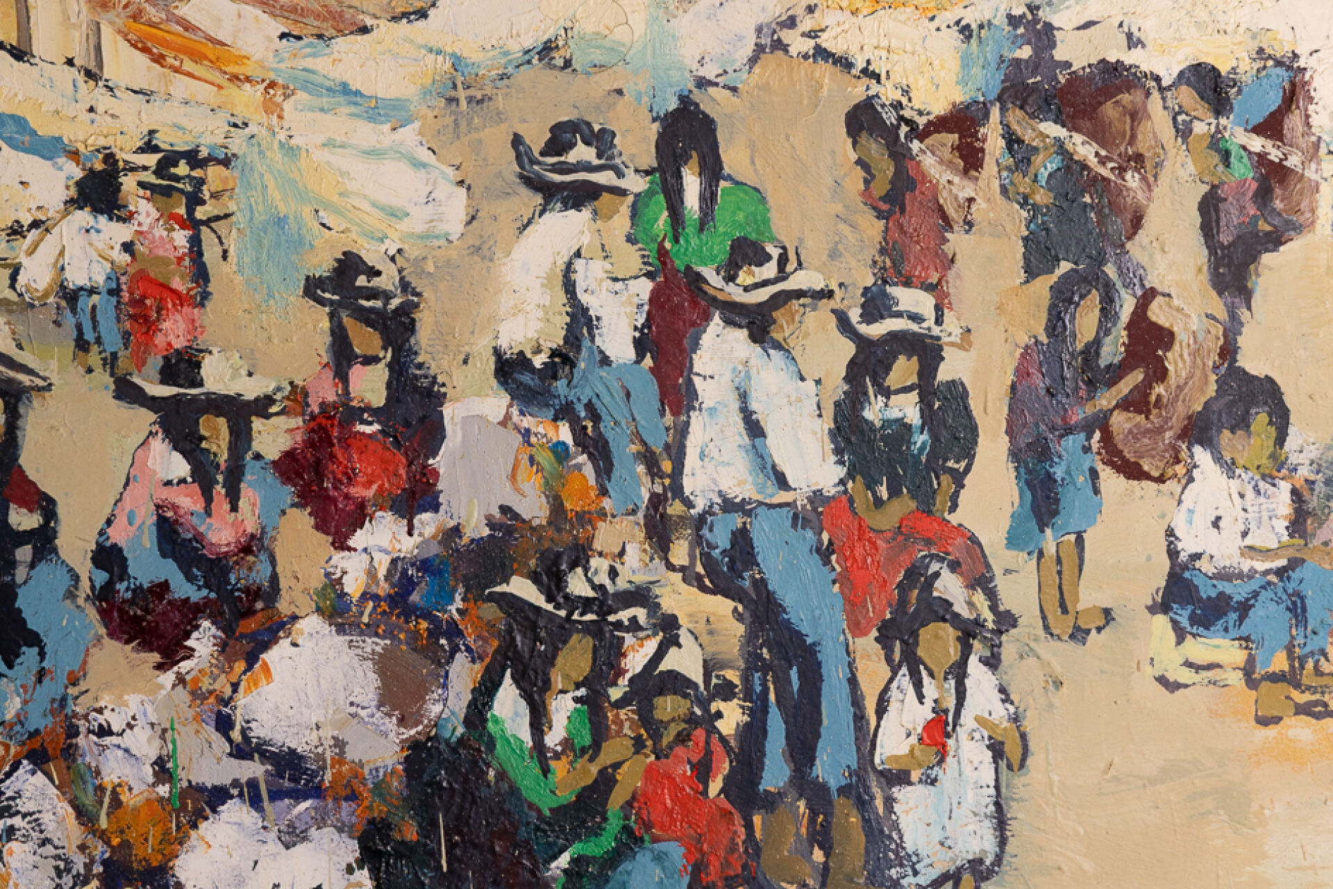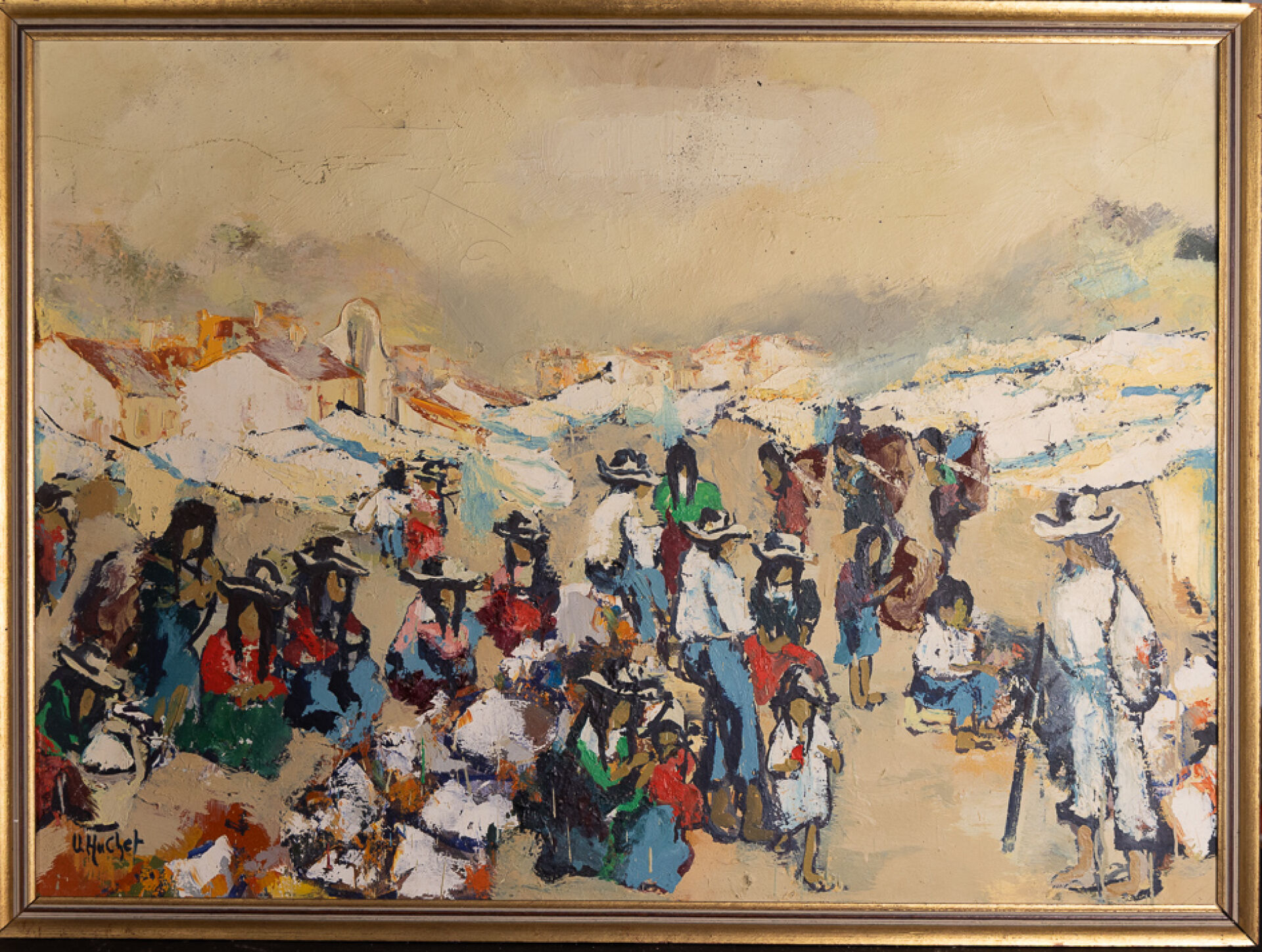 Urbain HUCHET ( 1930-2014). Marché bolivien. Huile sur toile signée en bas à gauche (craquelures). Haut. : 73 cm - Larg. : 100 cm