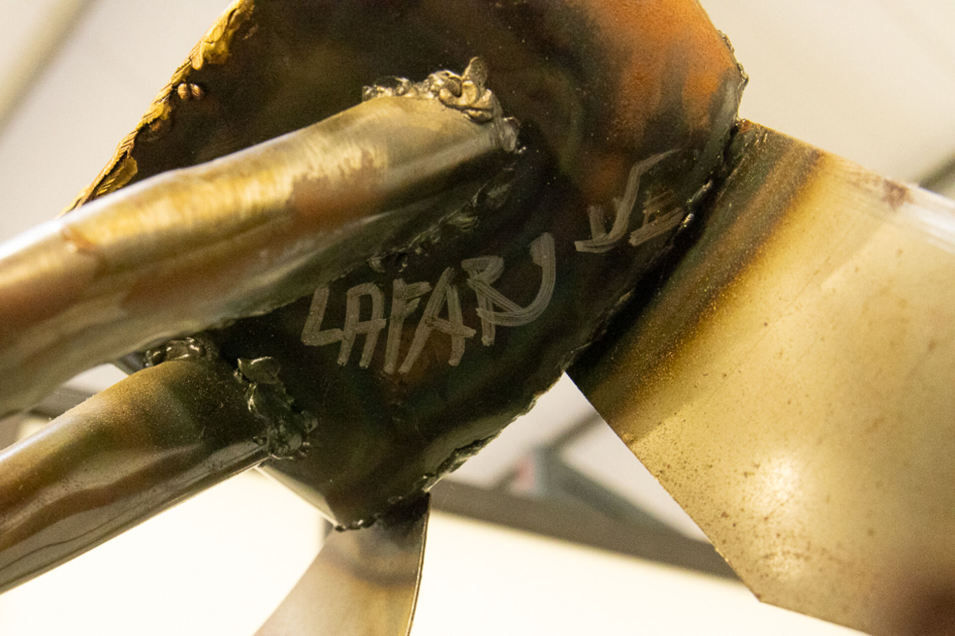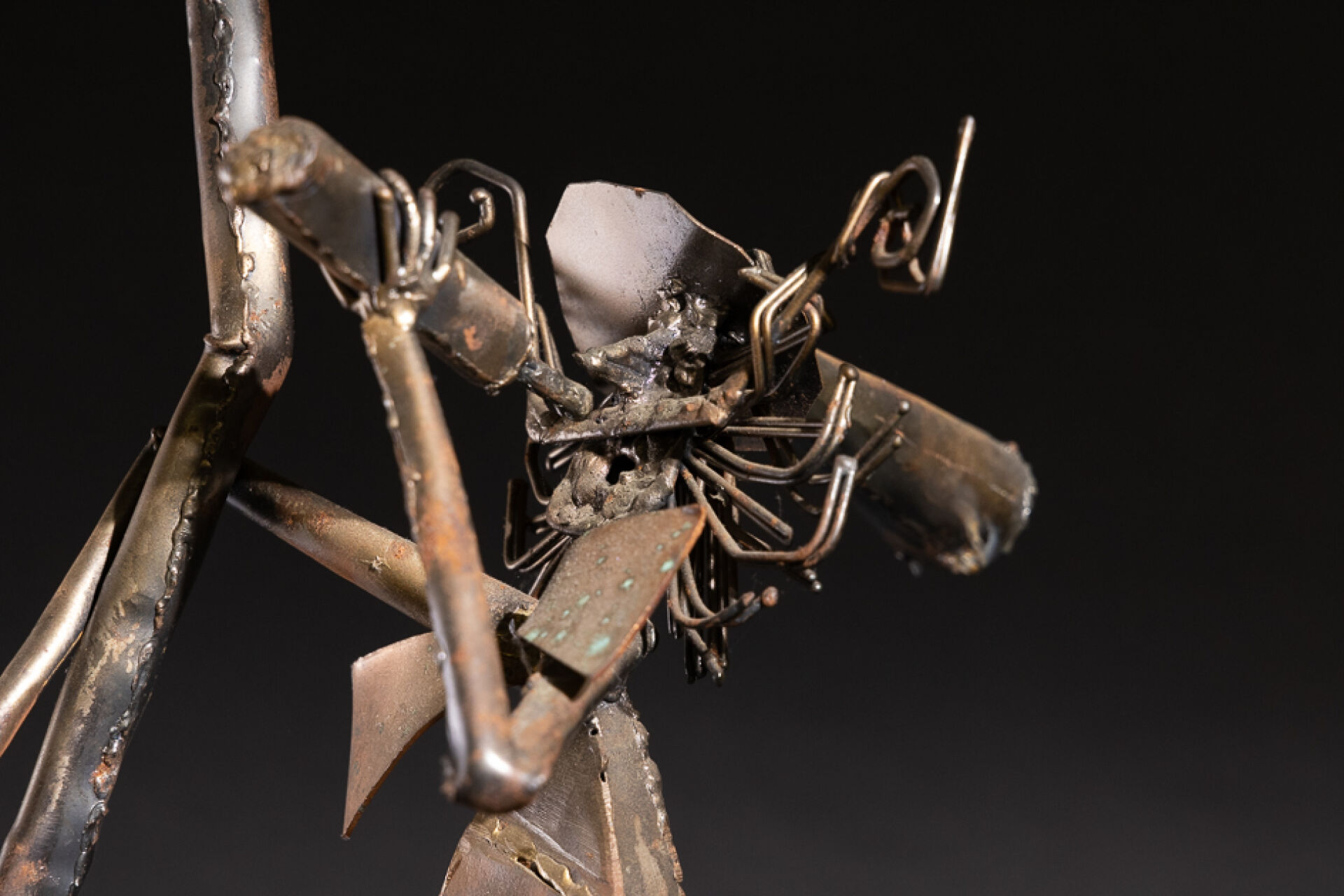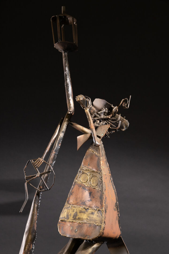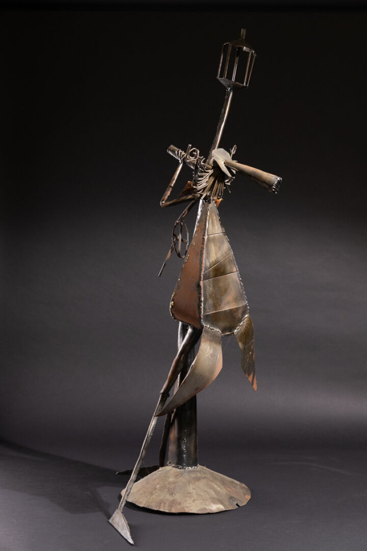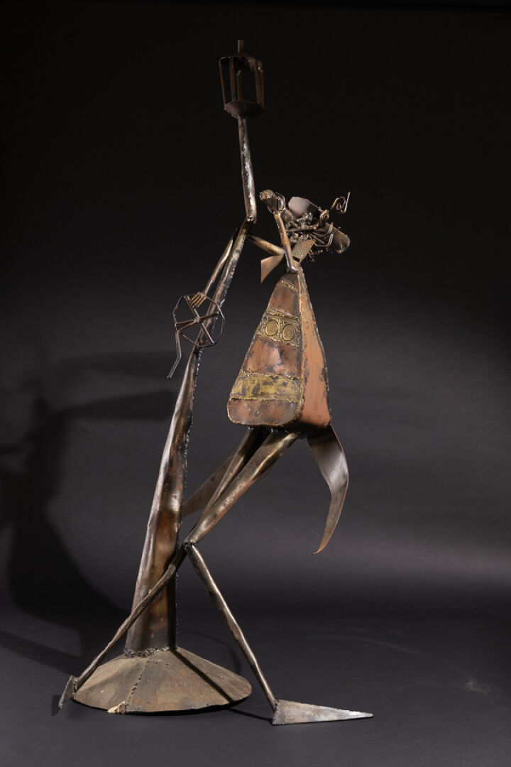 LAFARGUE (XXe siècle). L'ivresse ou "Boire ou conduire il faut choisir". Sculpture en métal signée au revers. Haut. : 107 cm