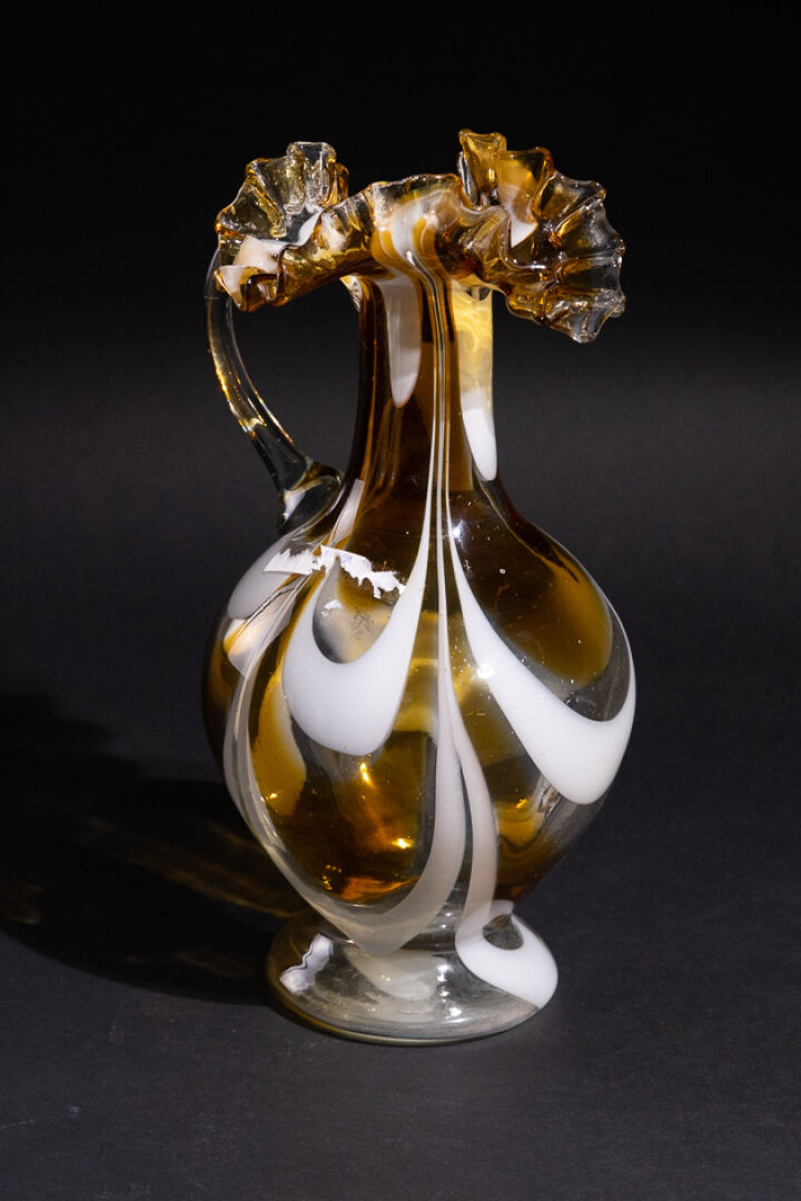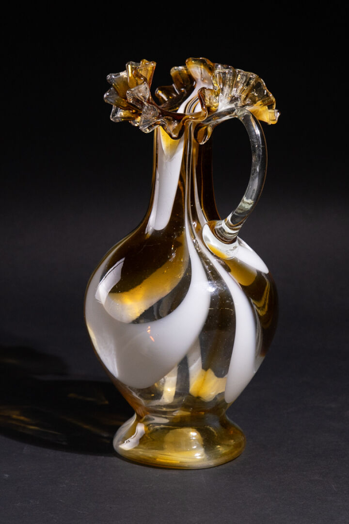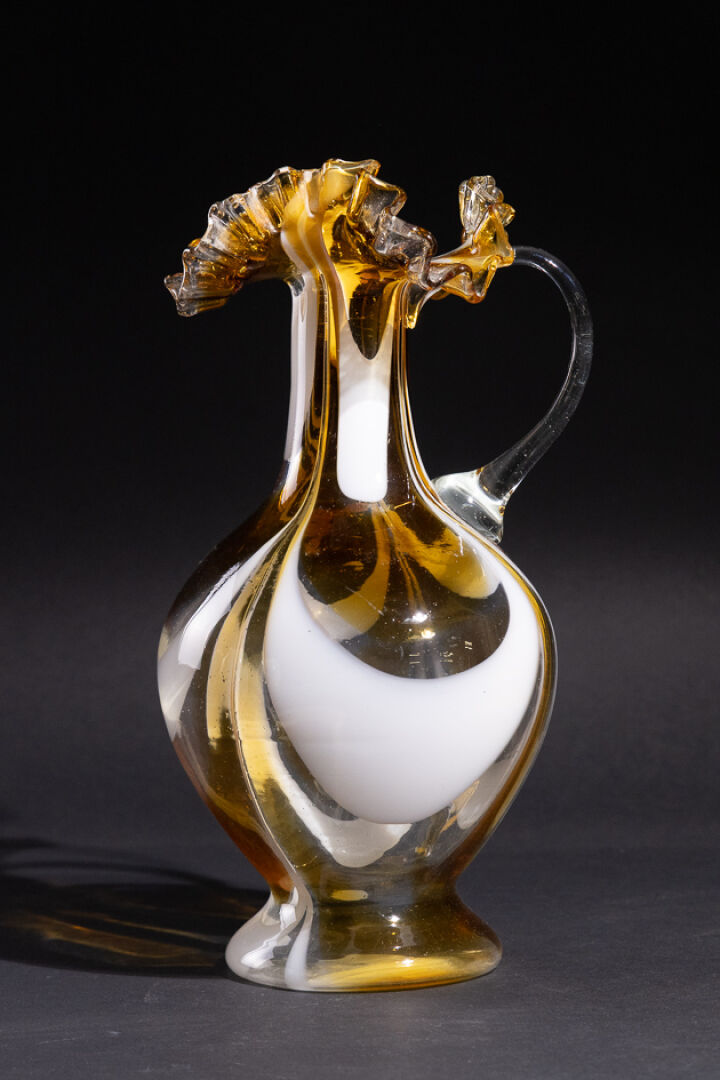 Dans le goût de Carlo MORETTI (1934-2008). Aiguière en cristal dit latino dans les tons blancs et jaunes. Haut. : 38 cm