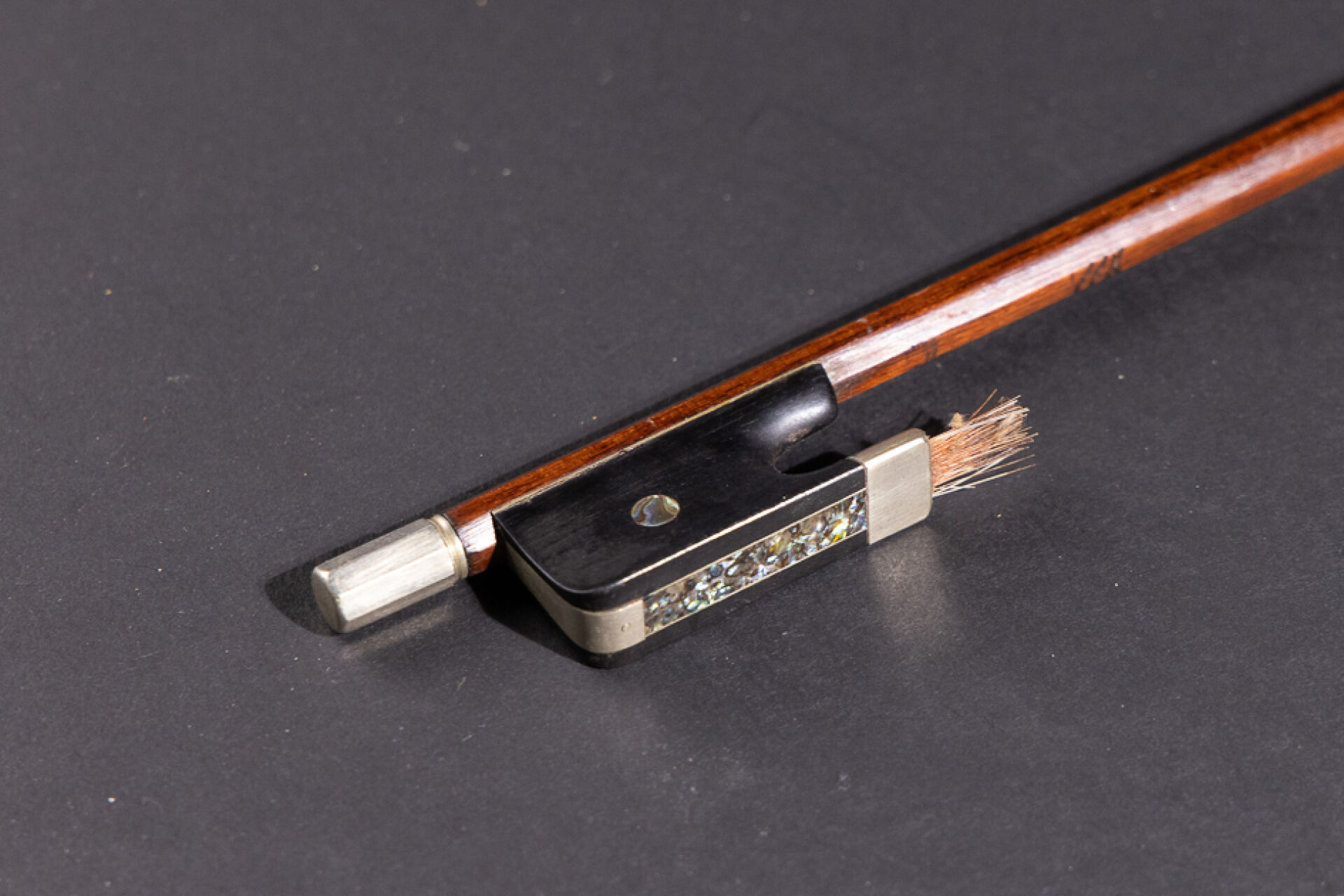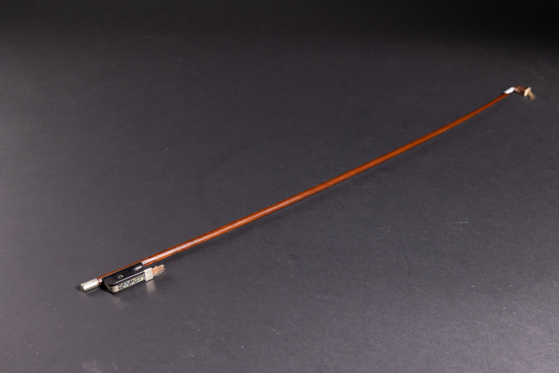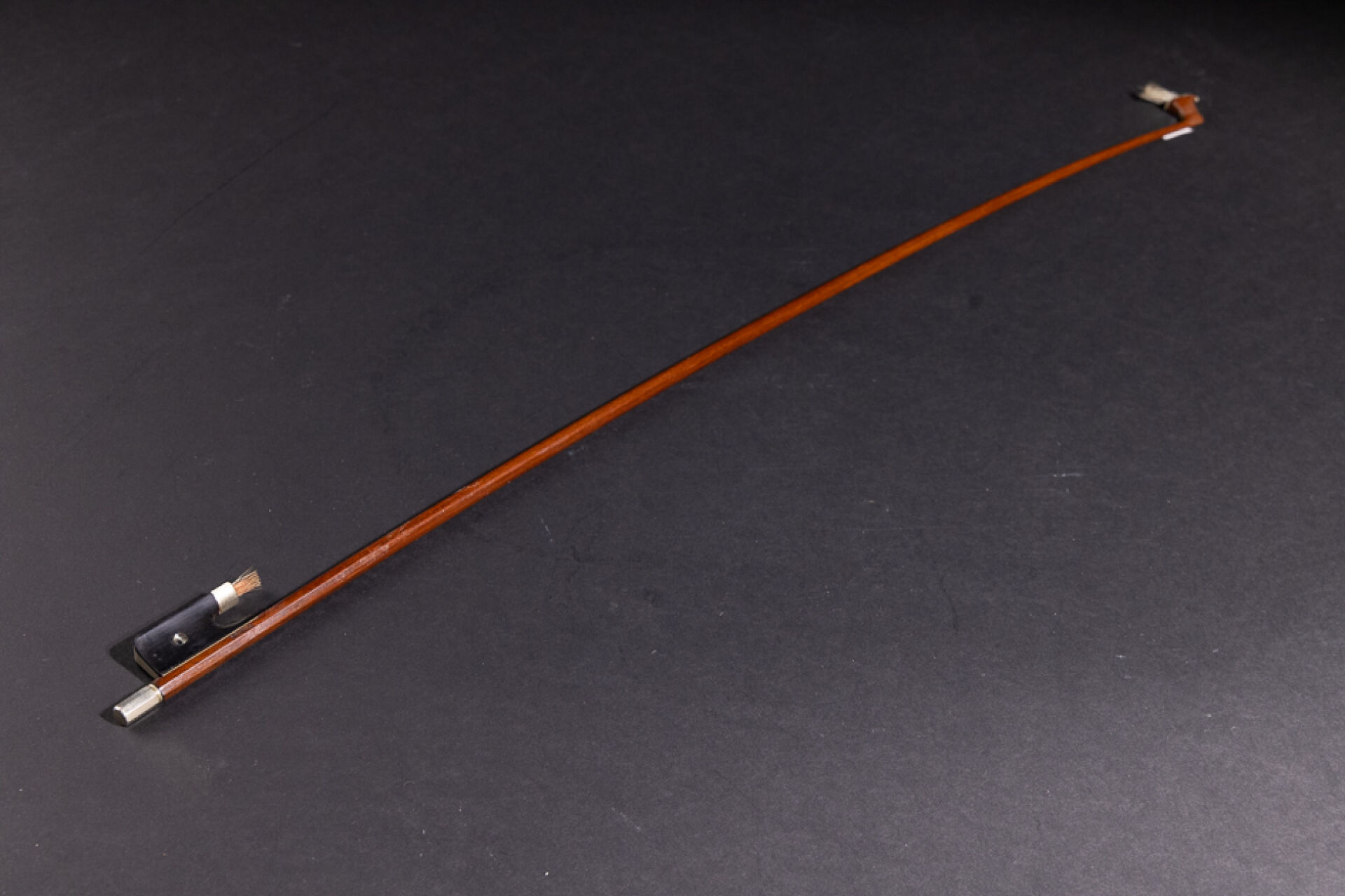 Archet en bois portant la marque apocryphe VOIRIN (accidents, manques et restaurations). Long. : 75 cm