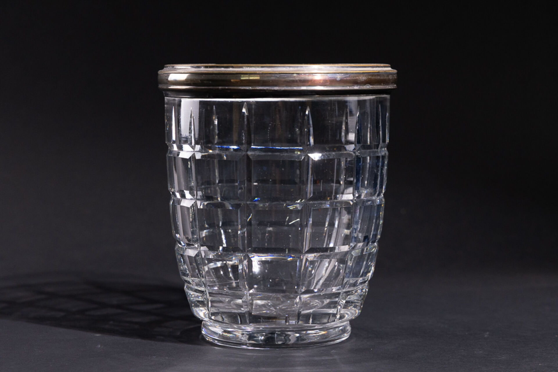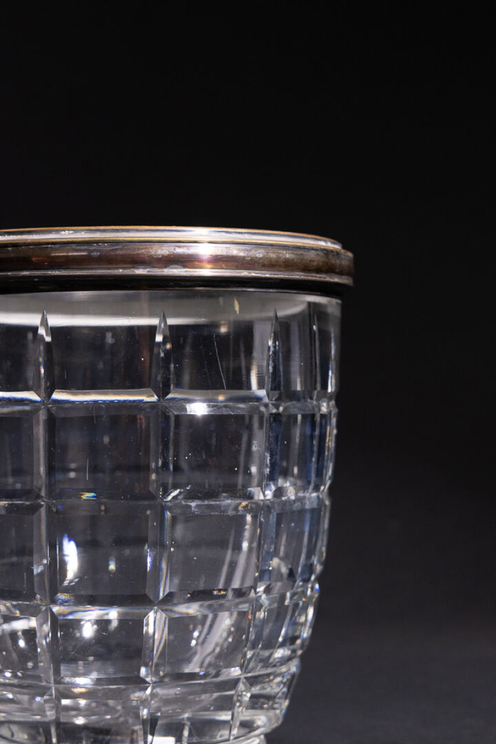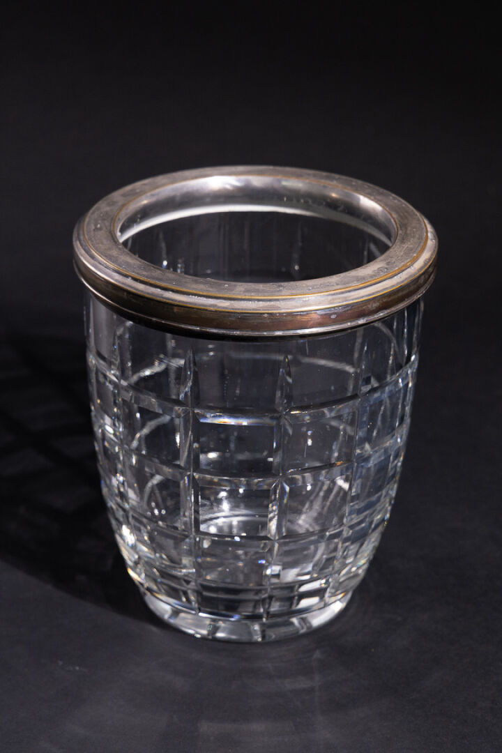 Maison BACCARAT - Victor SAGLIER Seau à champagne en cristal taillé de croisillons, la bordure en métal argenté. XXe siècle. Haut. : 23 cm - Diam. : 19.5 cm