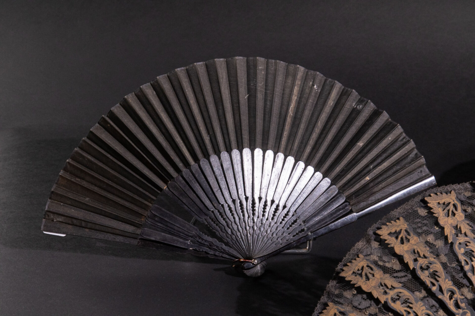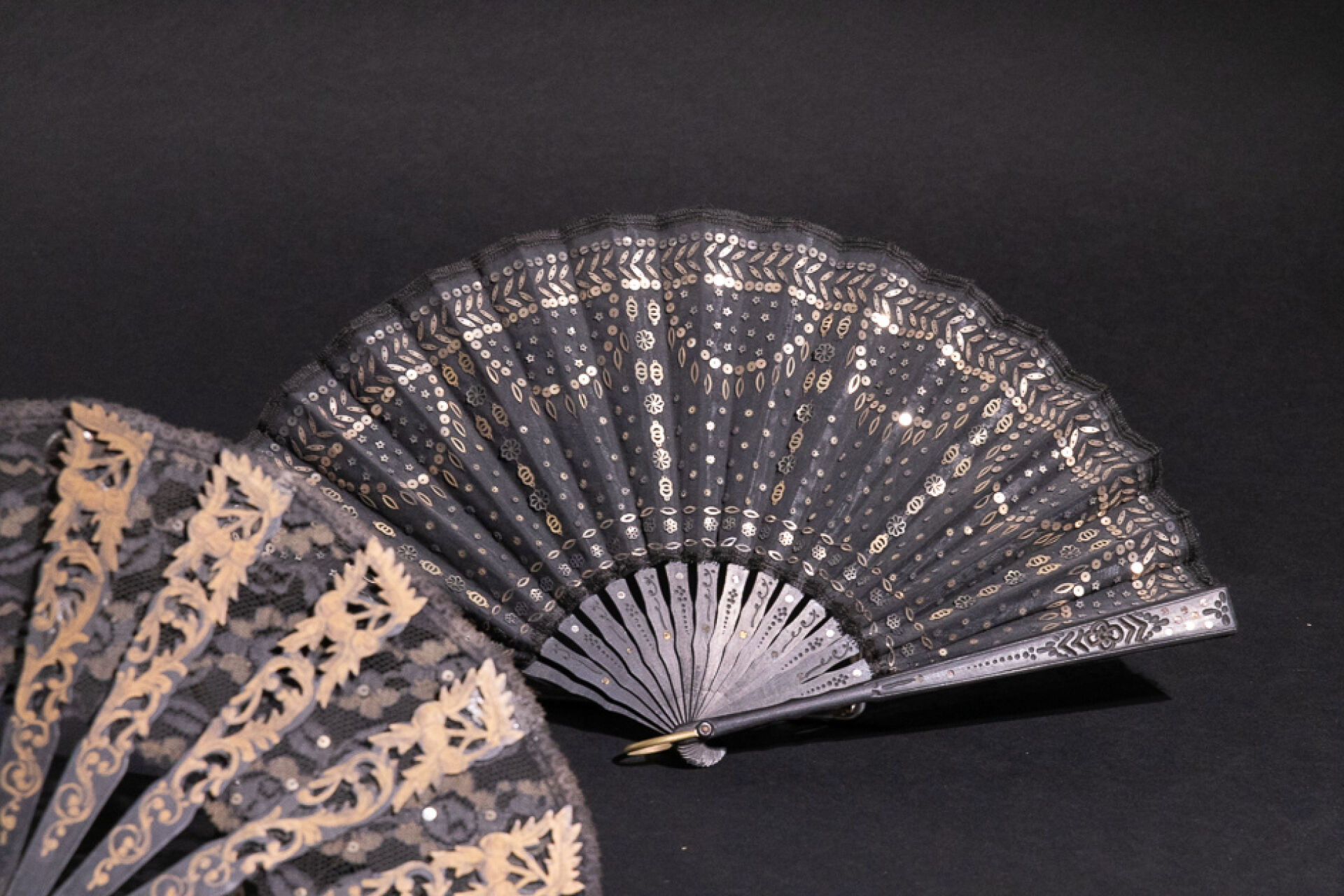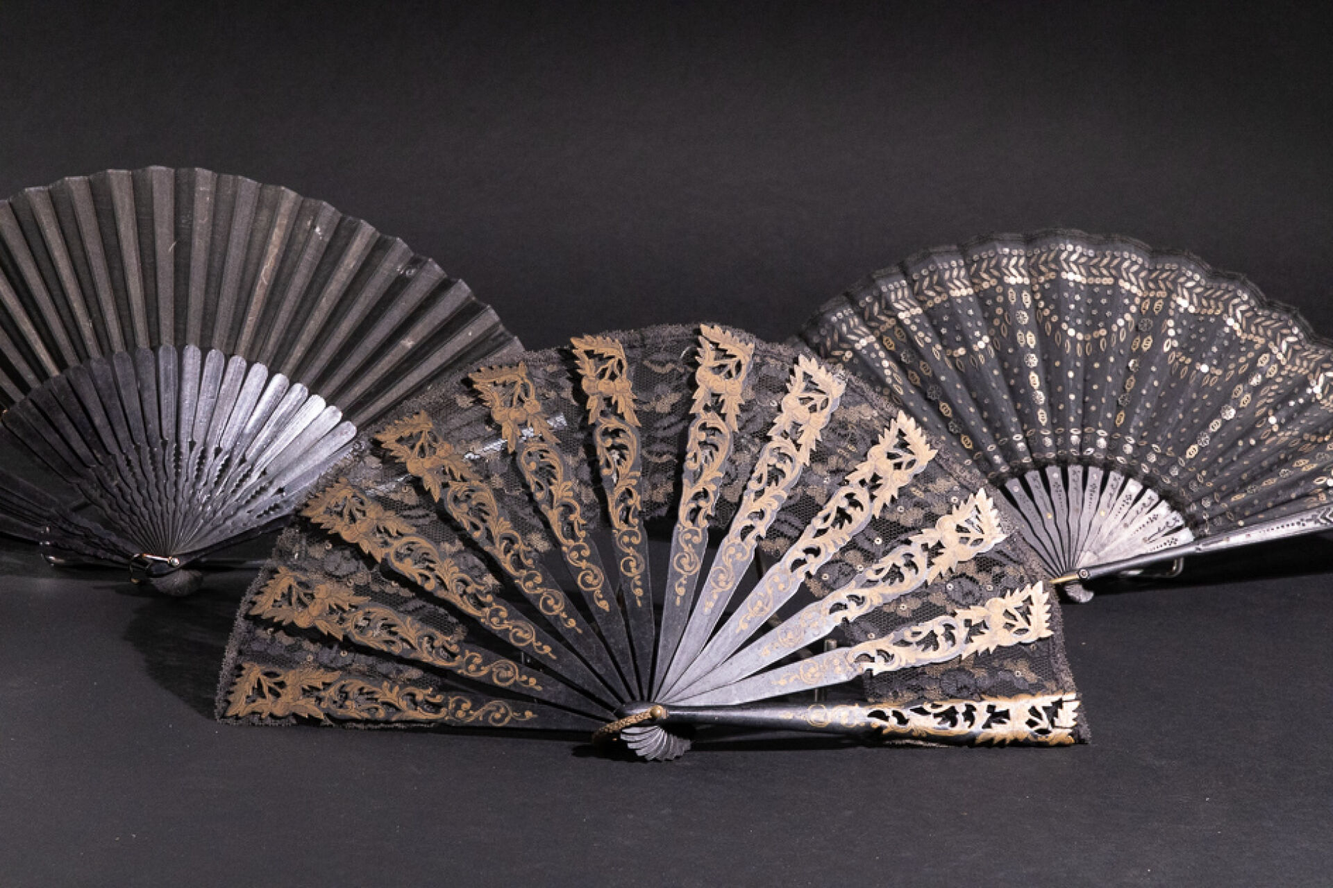 Ensemble de trois éventails noirs (accidents). XIX-XXe siècles. Long. : de 20 à 21.5 cm