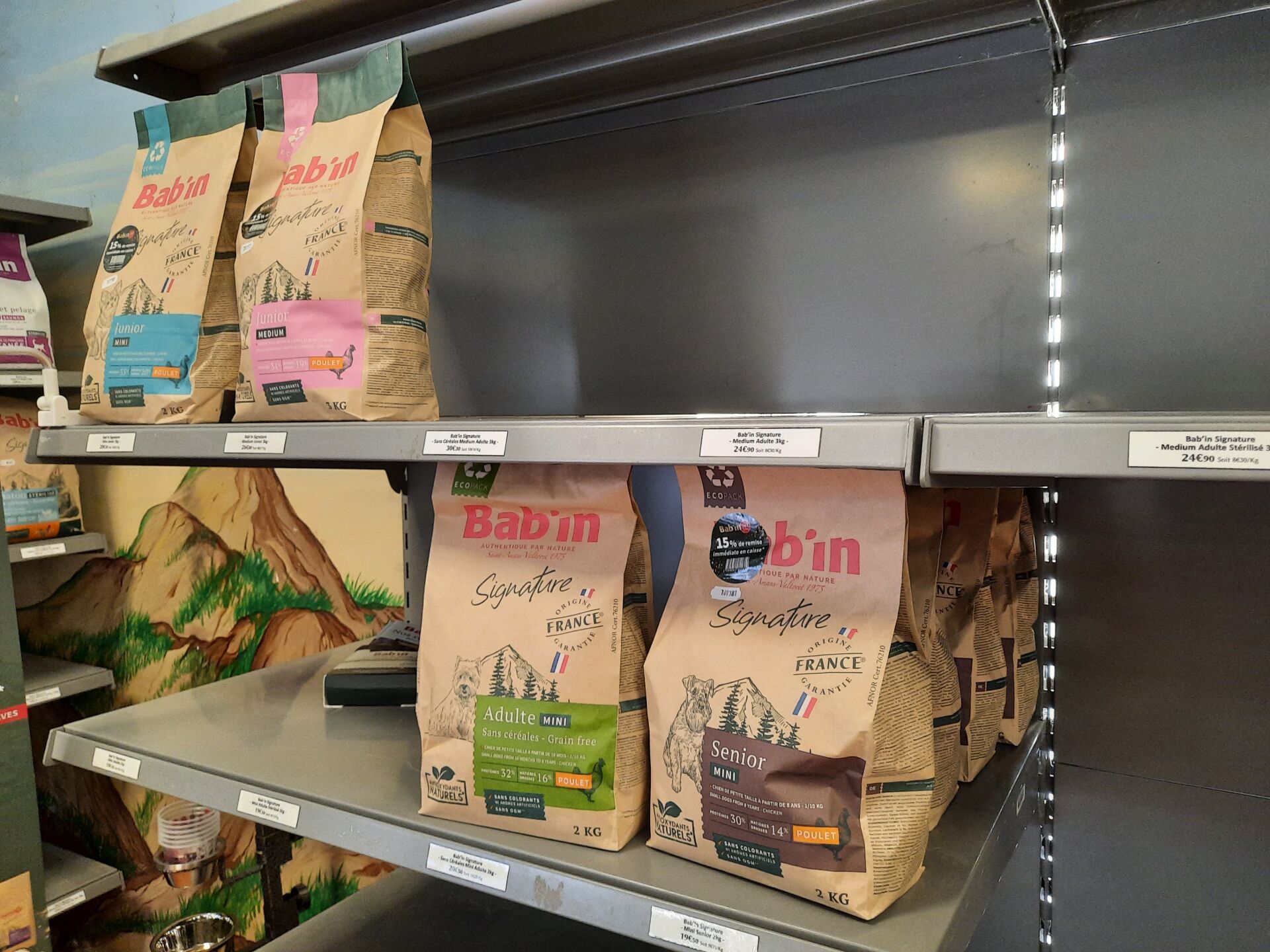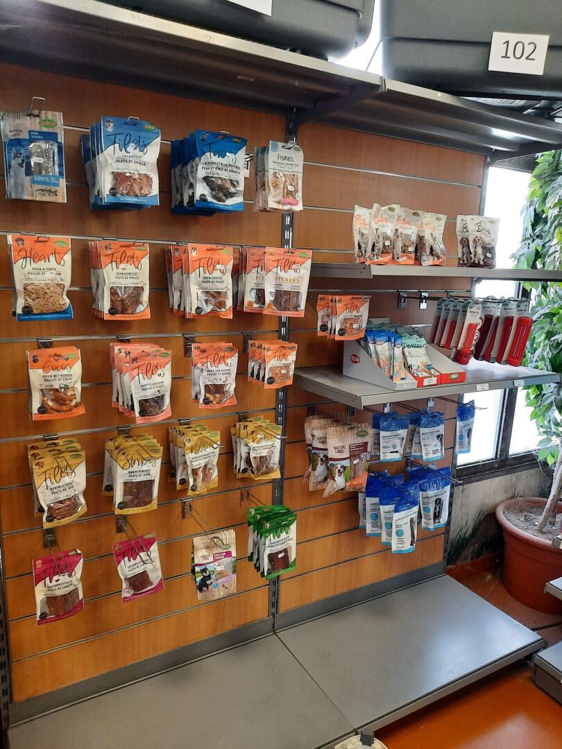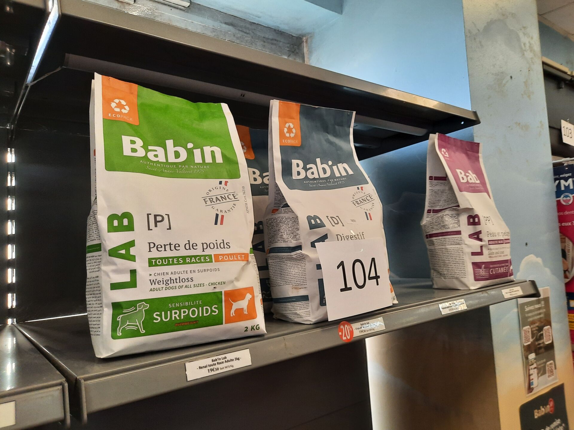 Stock de 12 sacs de nourriture. On joint : snacks et friandises pour chiens L ACHETEUR FERA SON AFFAIRE PERSONNELLE DES EVENTUELLES DLC/DLU (non contrôlées) DEPASSEES - A CHARGE DE CONDITIONNEMENT PAR L ACHETEUR