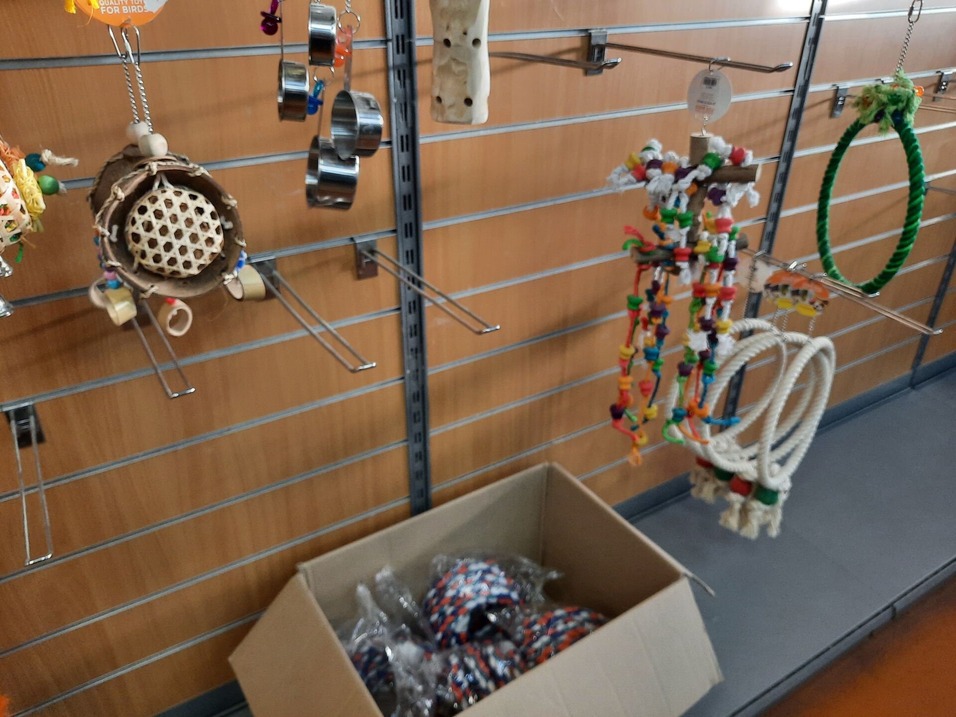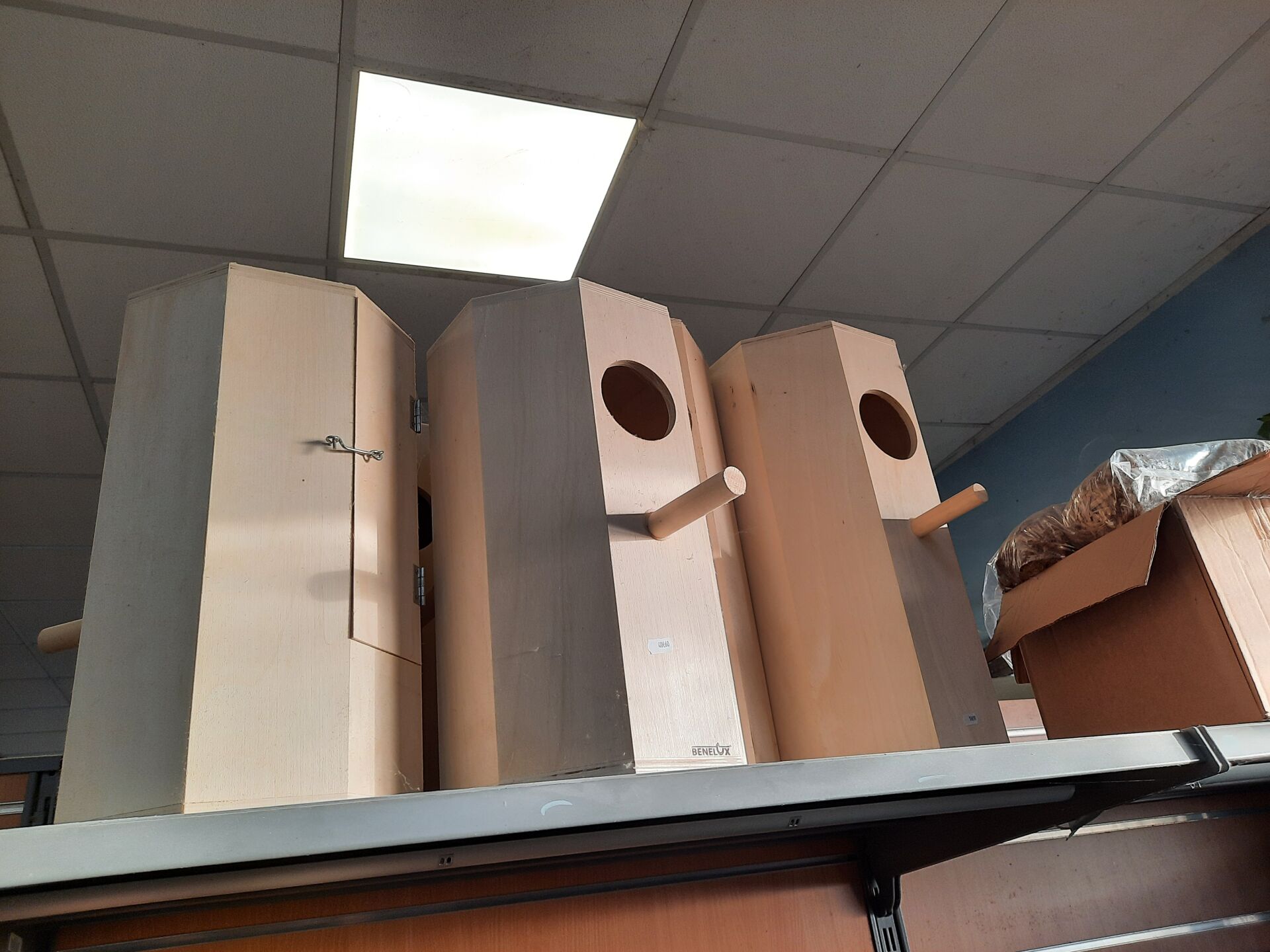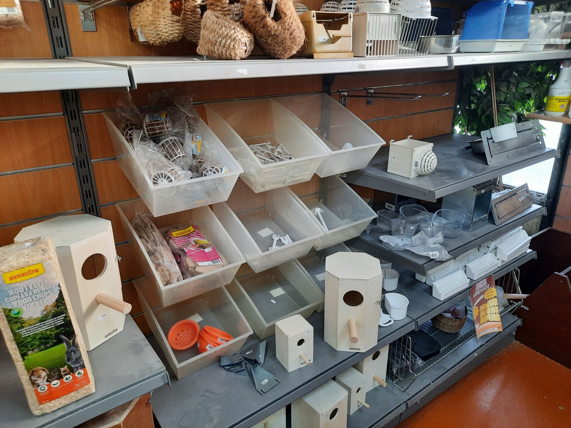 Stock de nichoirs en bois, cordes ou fibre naturelle, nourrisseurs et abreuvoirs, distributeurs d'aliments et jouets pour oiseaux