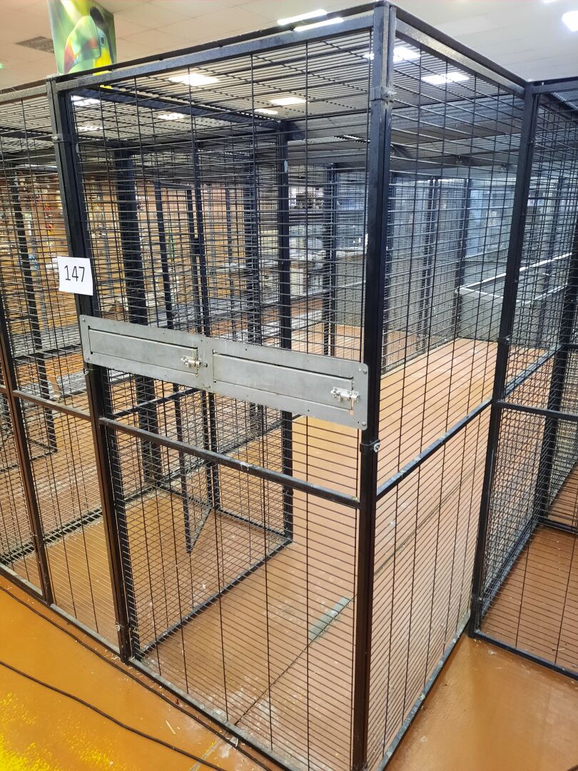 1 volière de 12 m² en métal laqué gris anthracite composées de : 16 panneaux grillagés de 190 x 95 cm 2 panneaux portes de 95 x 190 cm