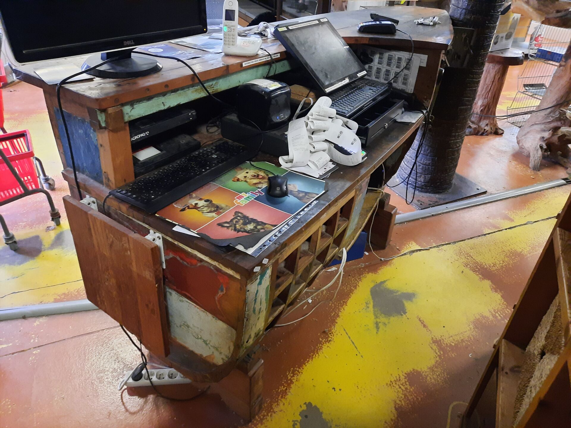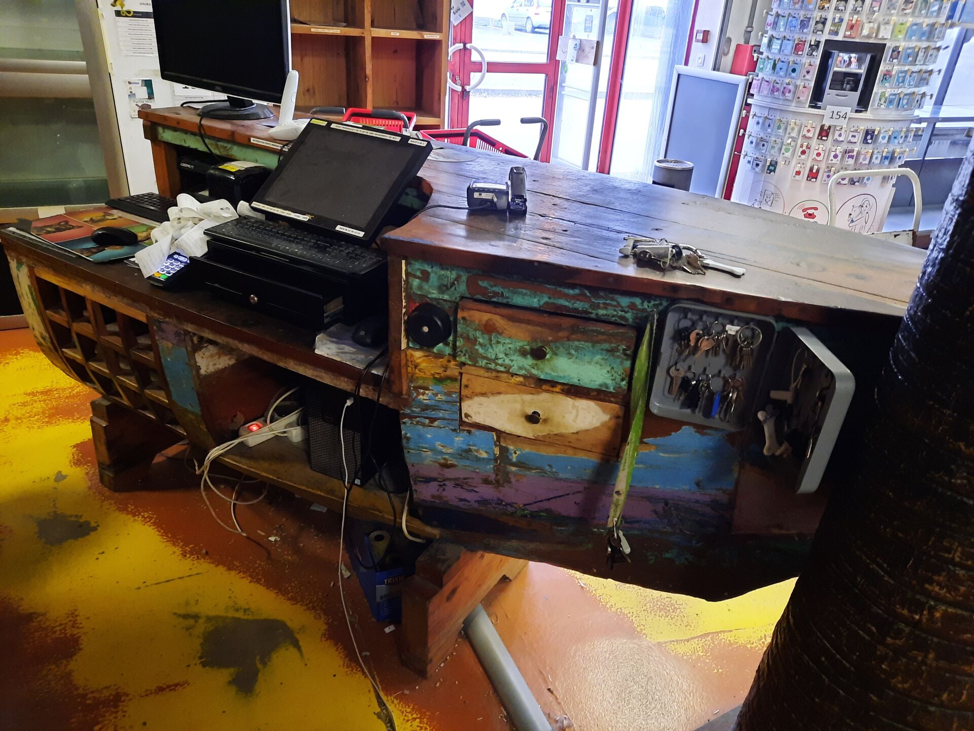 Demi-coque de bateau formant banque d'accueil 240x80x110 cm