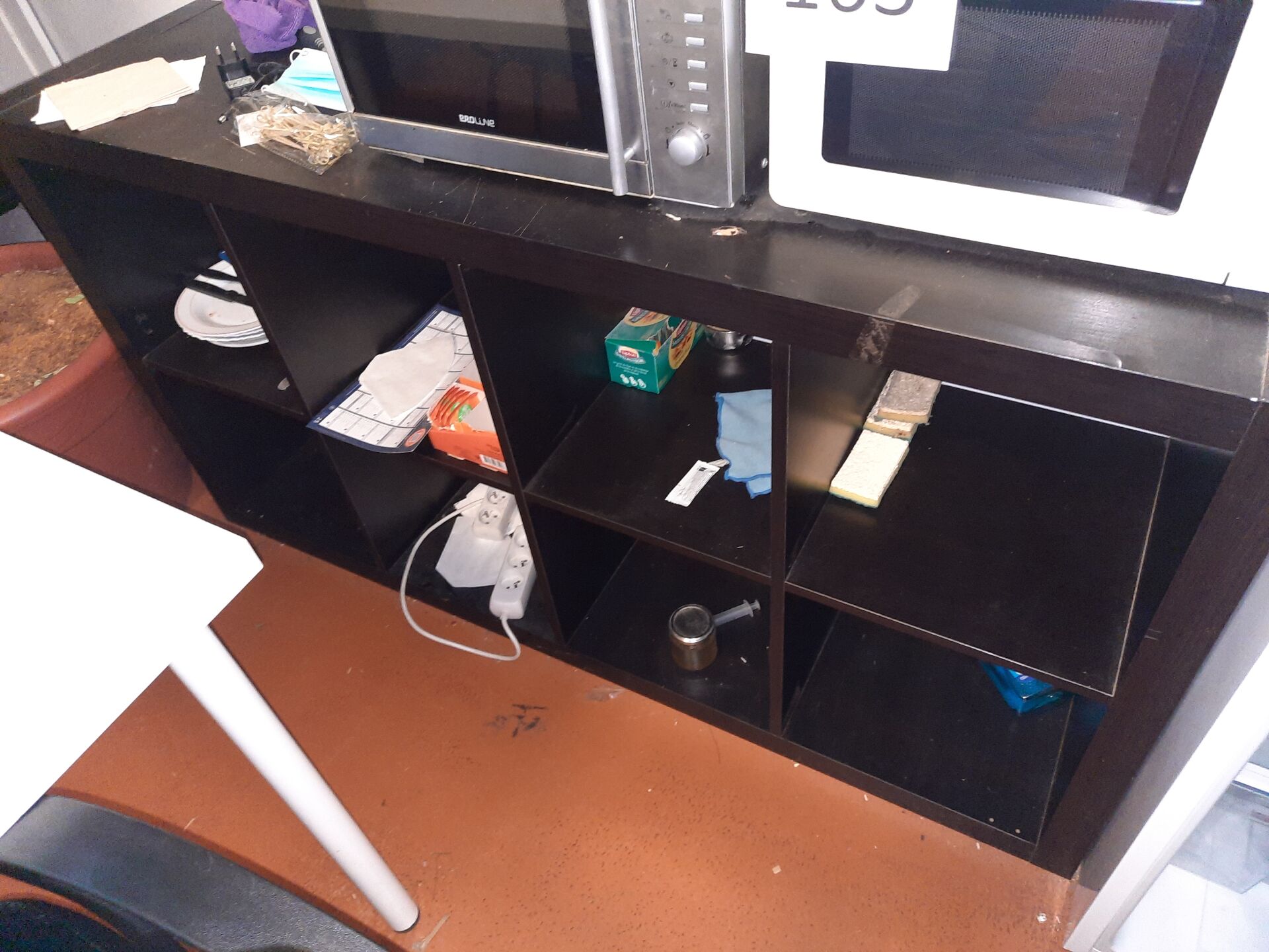 4 étagères en mélaminé noir à 8 niches (mauvais état)