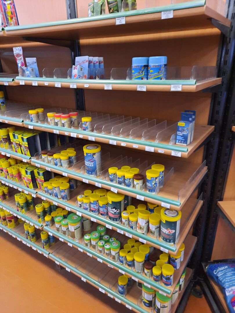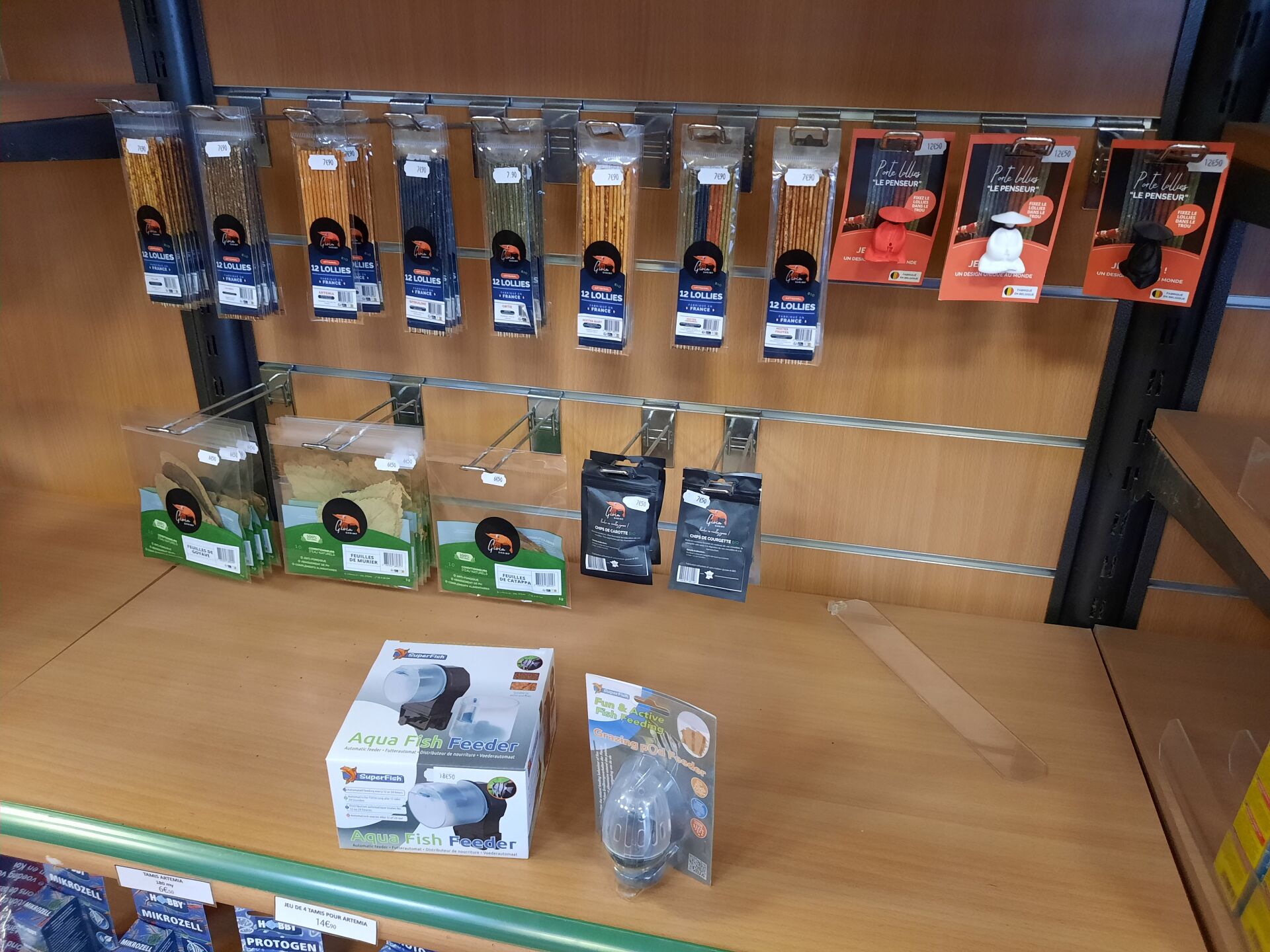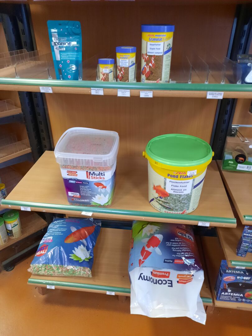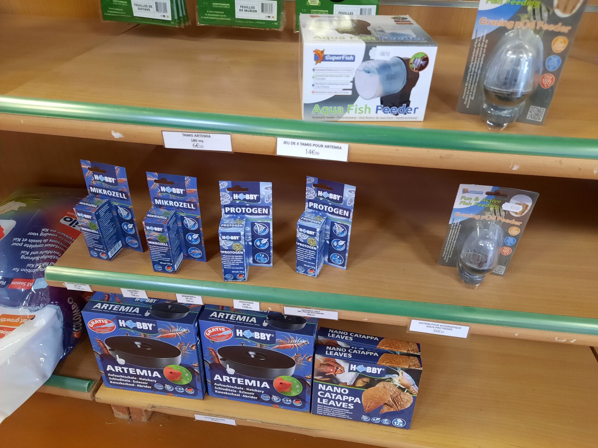 Stock de nourritures pour poissons dont aliments en flocons, granulés, aliments de croissance. On joint : distributeur automatique de nourriture, éclosoirs L ACHETEUR FERA SON AFFAIRE PERSONNELLE DES EVENTUELLES DLC/DLU (non contrôlées) DEPASSEES - A CHARGE DE CONDITIONNEMENT PAR L ACHETEUR