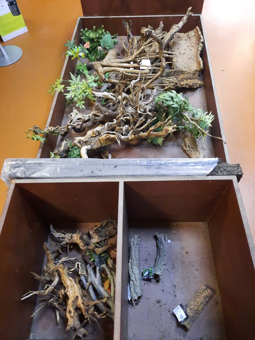 Stock de bois, racines et plantes artificelle pour décoration de terrarium