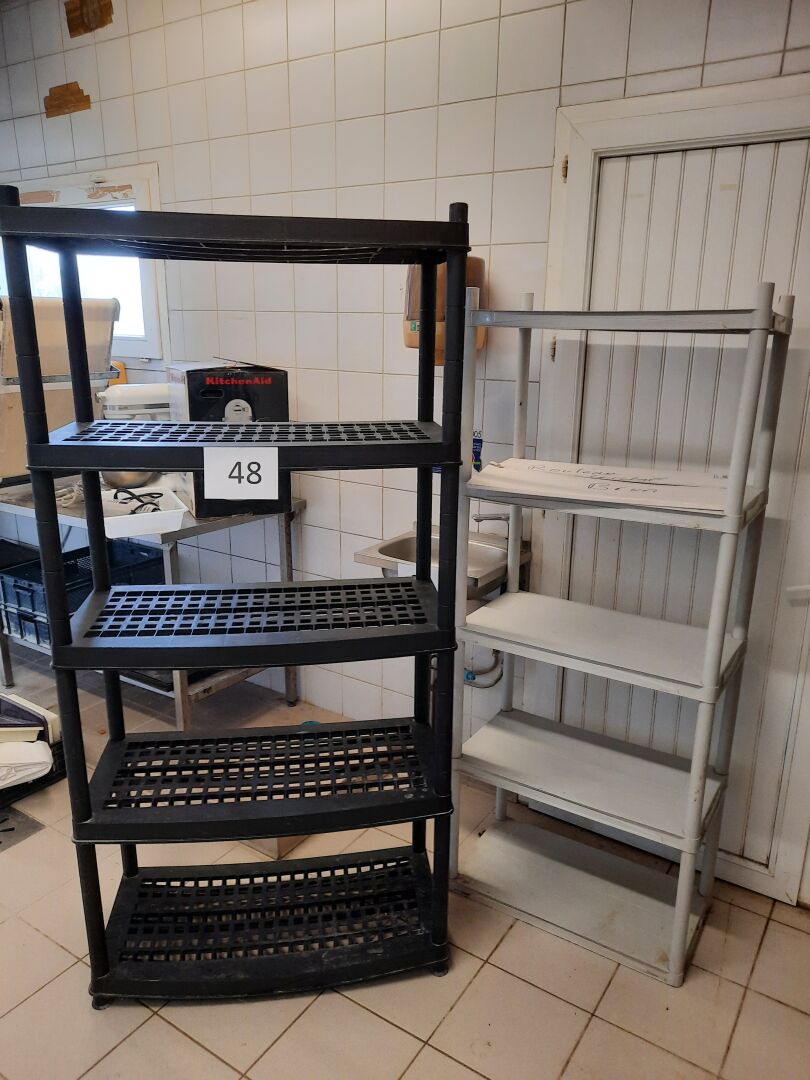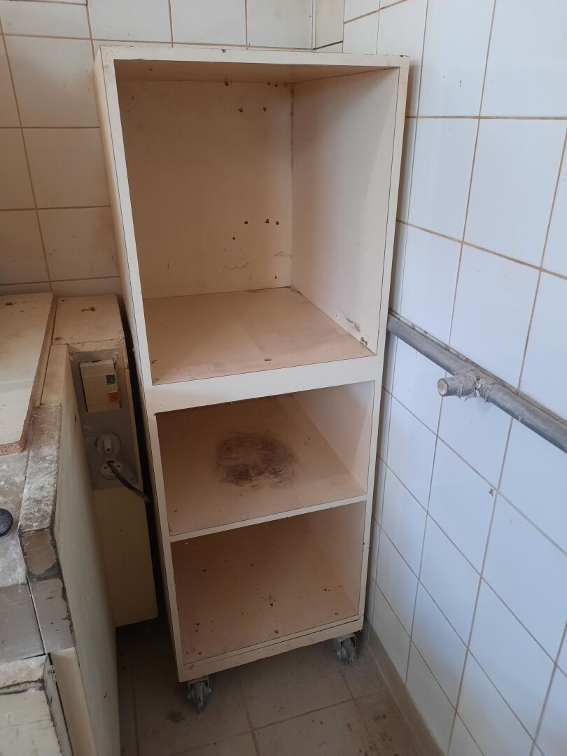 Étagère roulante en mélaminé beige 2 étagères en pvc gris et noir
