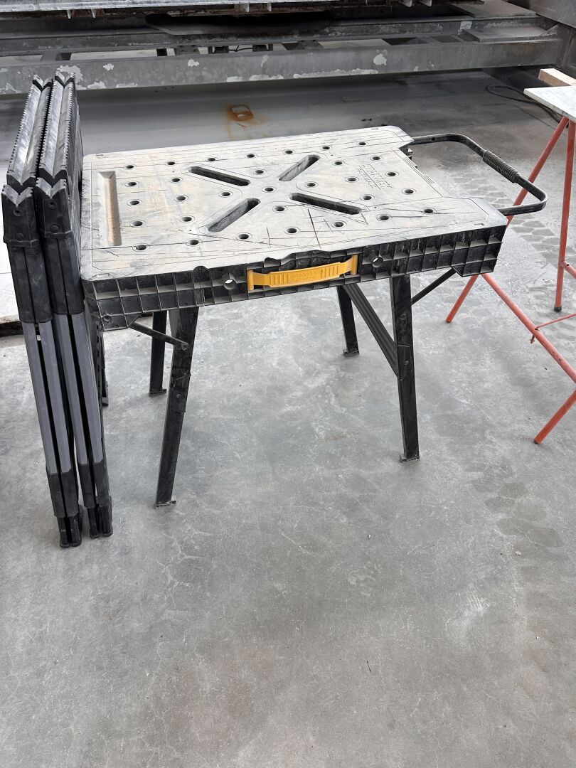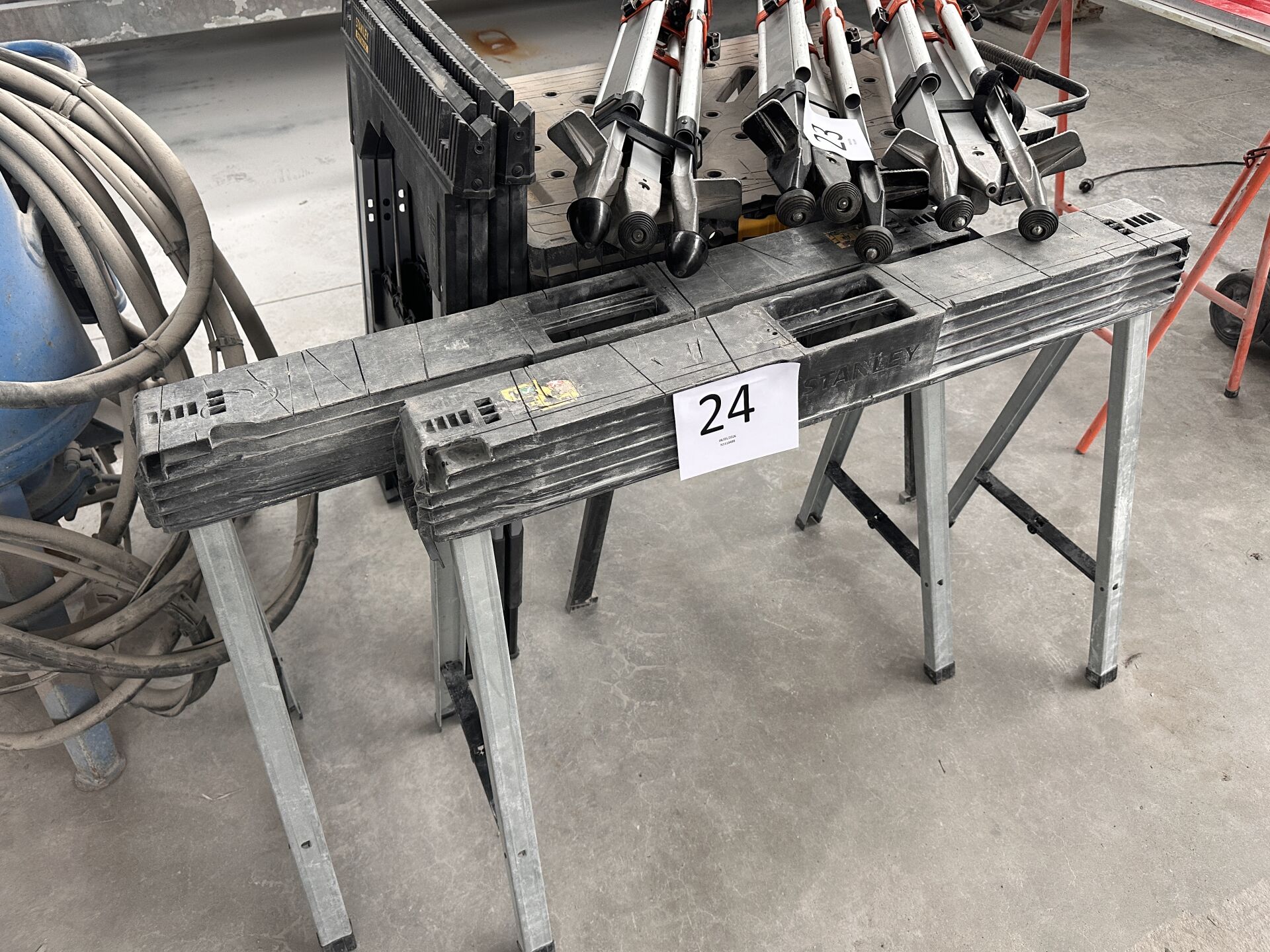 1 ensemble d'accessoires STANLEY : 2 paires de tréteaux dont FATMAX , PVC et PVC/métal 1 desserte pliante PVC/métal on y joint 2 tréteaux métal orange Frais de mise à disposition 10 € TTC