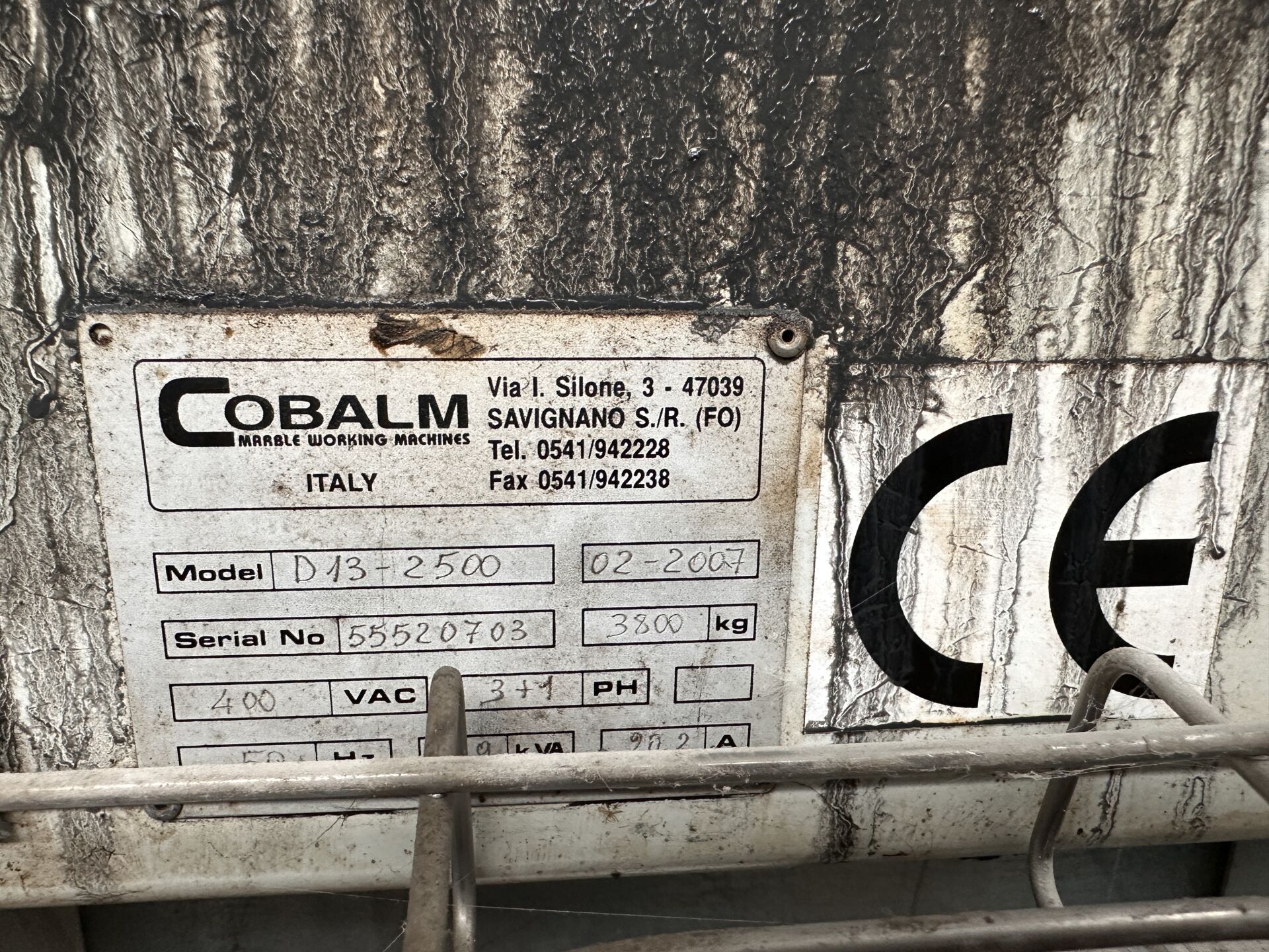 1 scie de débit de plaque de marbre COBALM type D13F2500 - N°5552 07 03 - diamètre 400mm - table 3300 x 1800 Frais de mise à disposition 50 € TTC
