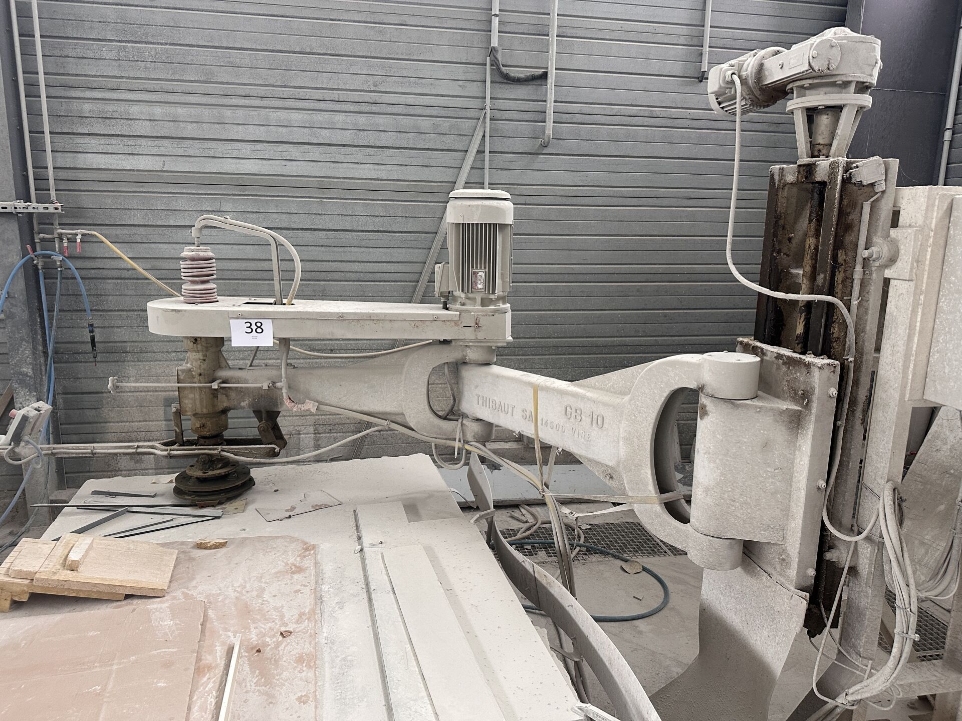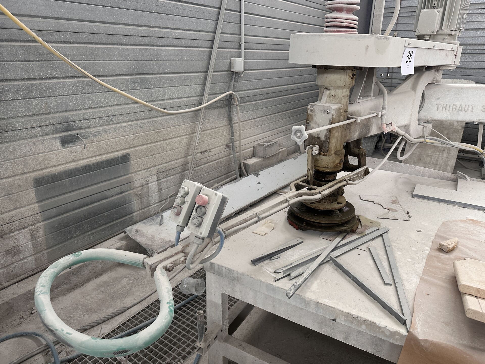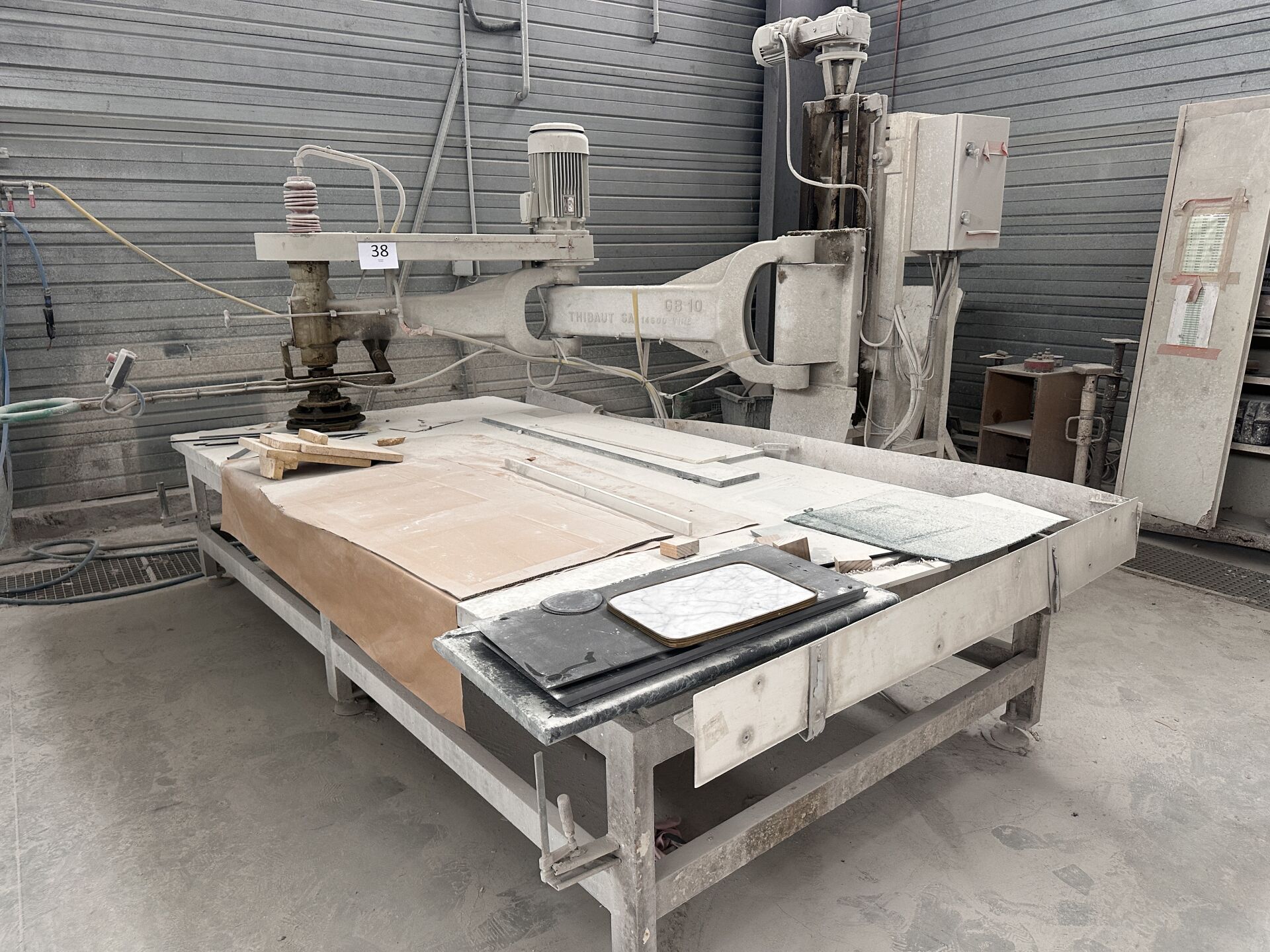 1 polissoir à genouillère THIBAUT GB 10 sans plaque apparente, table de 300 x 150 cm déclaré en panne Ensemble d'accessoires pour polissoir et autres, Frais de mise à disposition 10 € TTC
