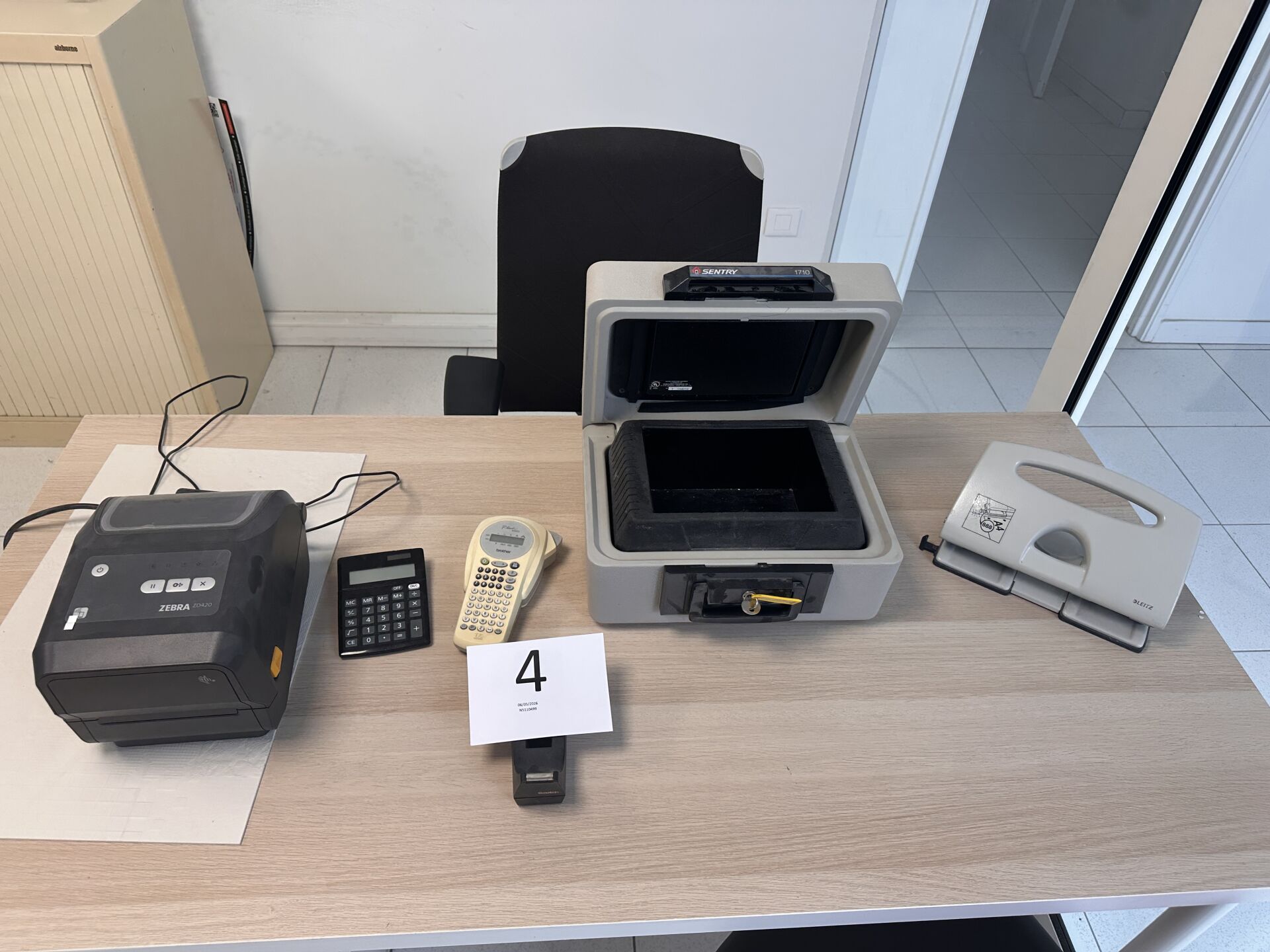 1 valise métal anti-feu à clé SENTRY 1710 1 imprimante d'étiquettes ZEBRA ZD 420 1 étiqueteuse BROTHER P TOUCH 1000 1 perforatrice LEITZ Frais de mise à disposition 10 € TTC