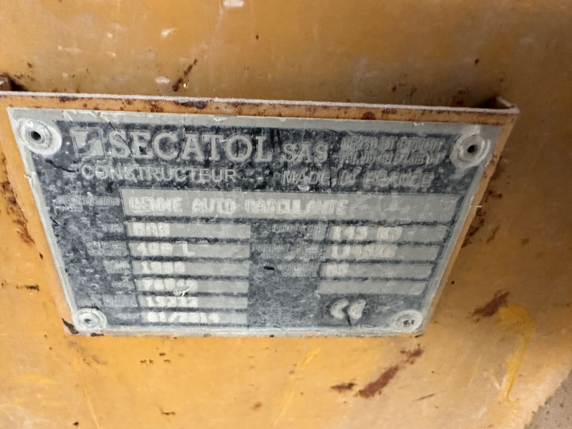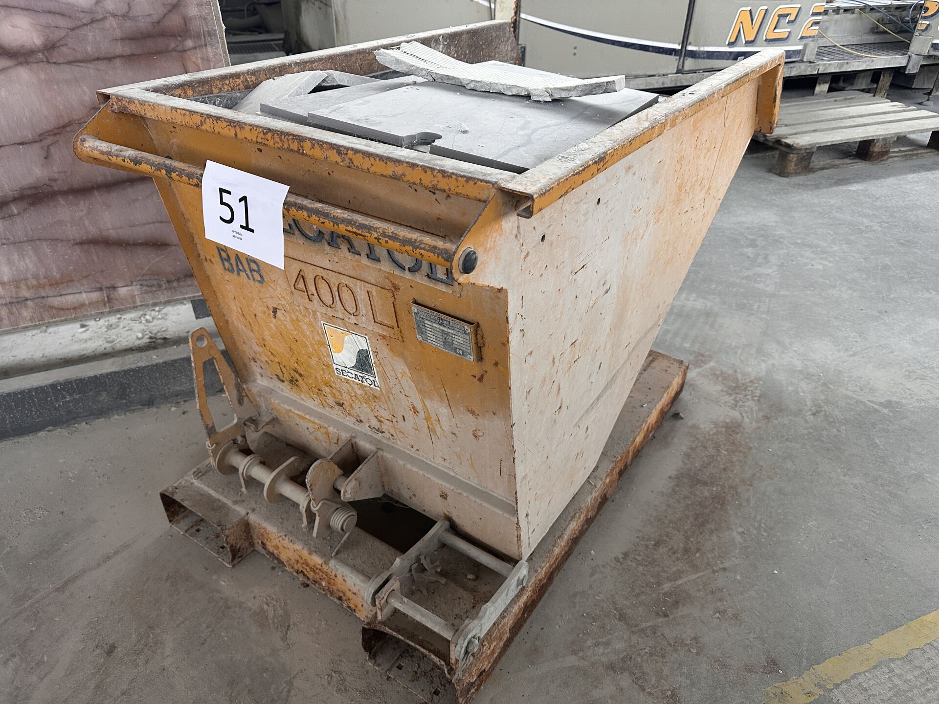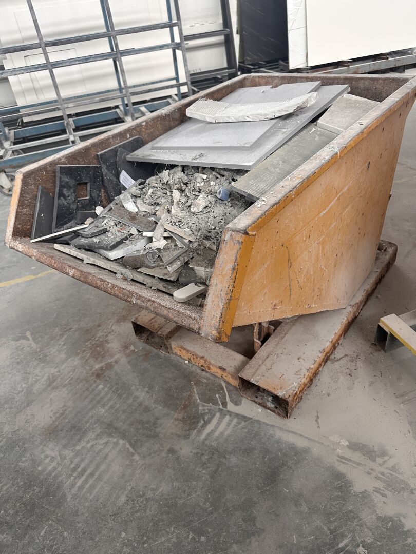 1 benne à déchet métal jaune basculante sur prise fourches SECATOL 400 L, pleine de chutes et déchets Frais de mise à disposition 10 € TTC